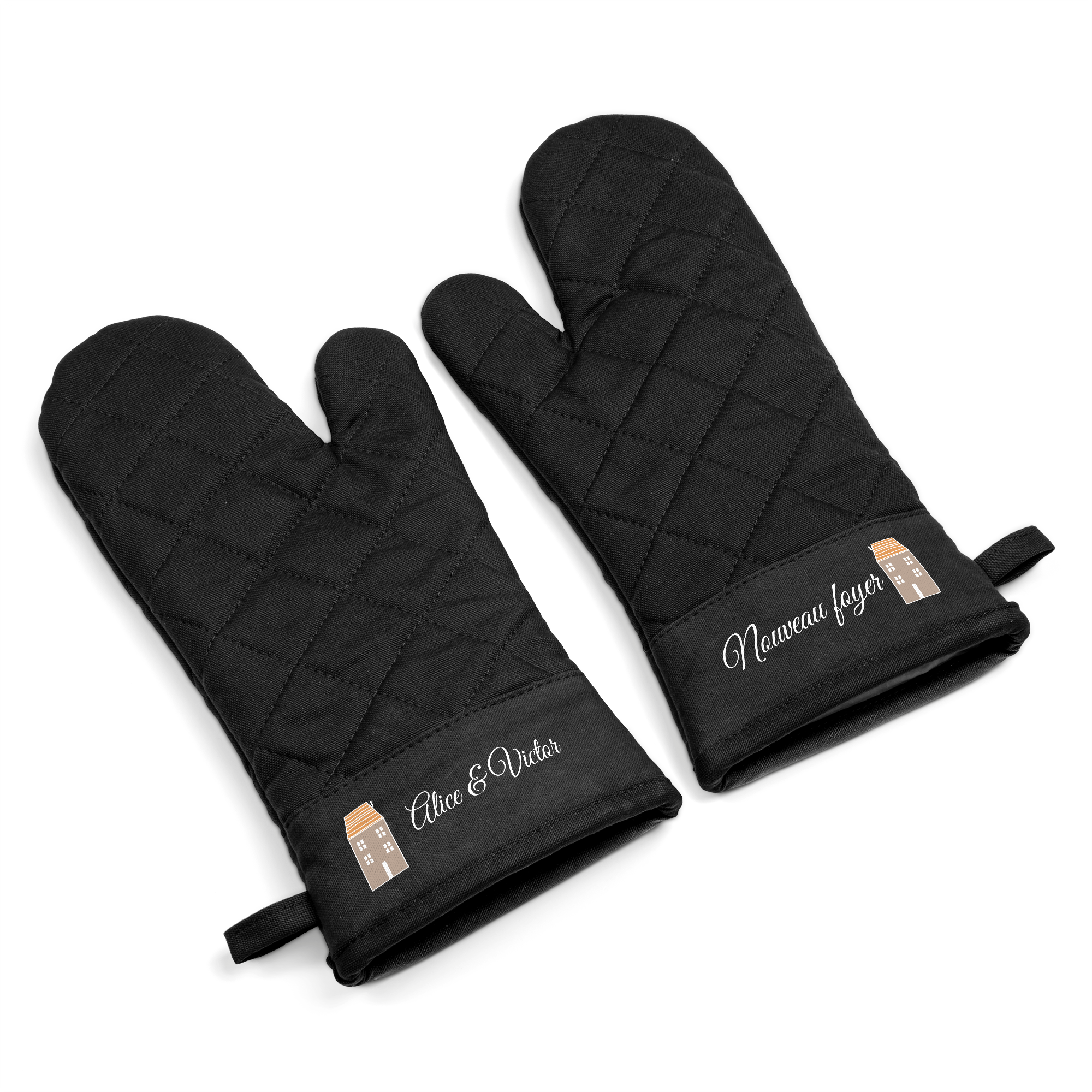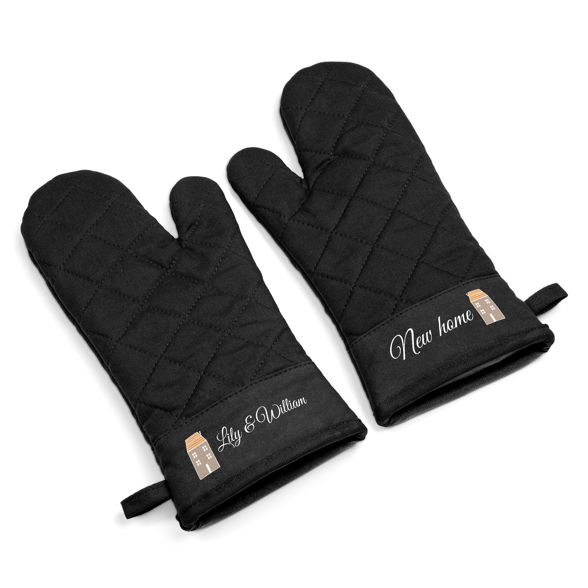 Regalo divertido y original. Juego de guantes para horno con el nombre que elijas, con diseños únicos para elegir.