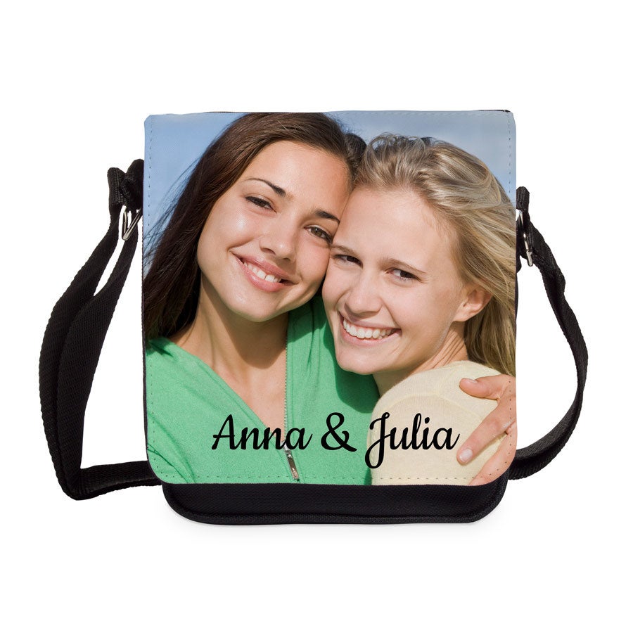 Una bonita bolsa de hombro resistente con tu propia foto y texto.