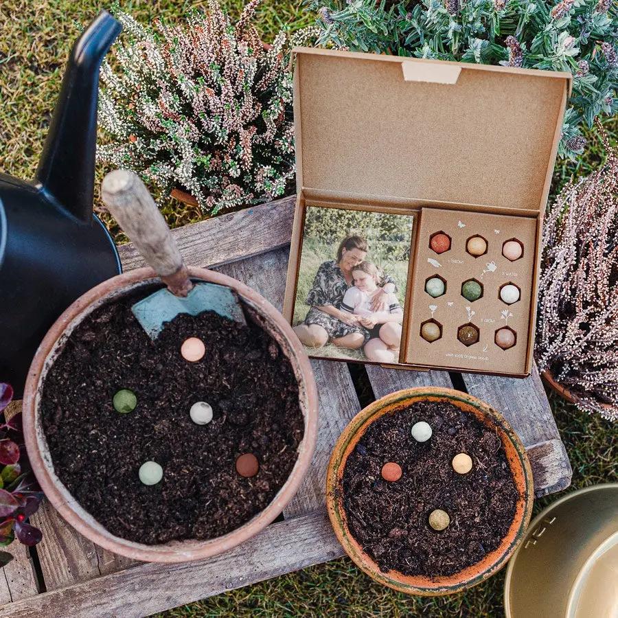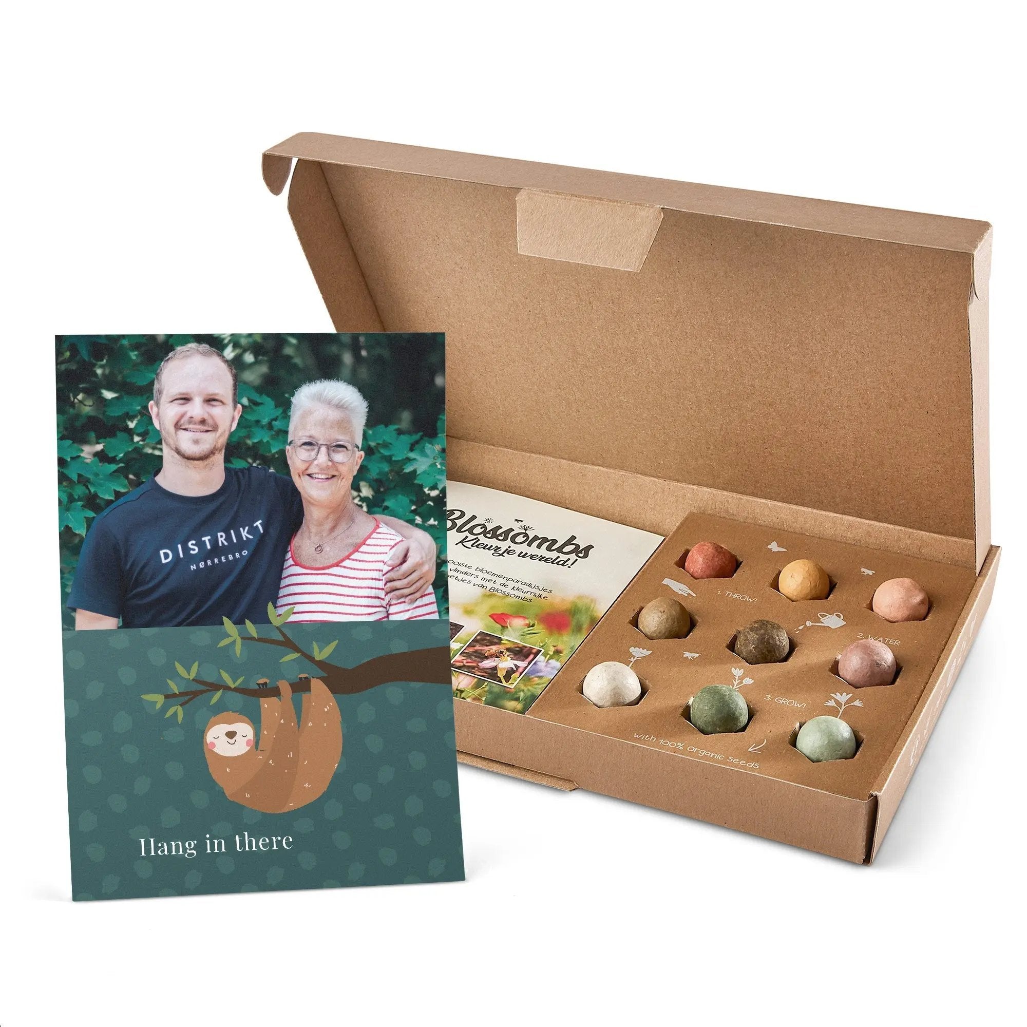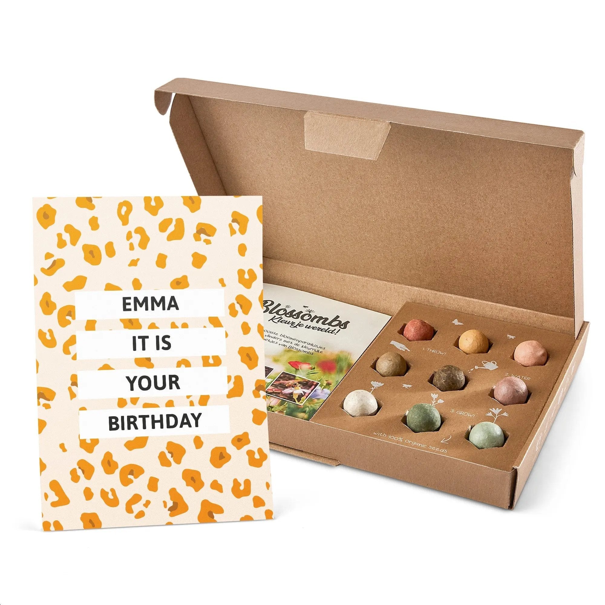 Experiencia Completa: 9 bombas de semillas de flores silvestres con ingredientes 100% orgánicos, tarjeta postal personalizada con acabado mate de lujo y sobre blanco.