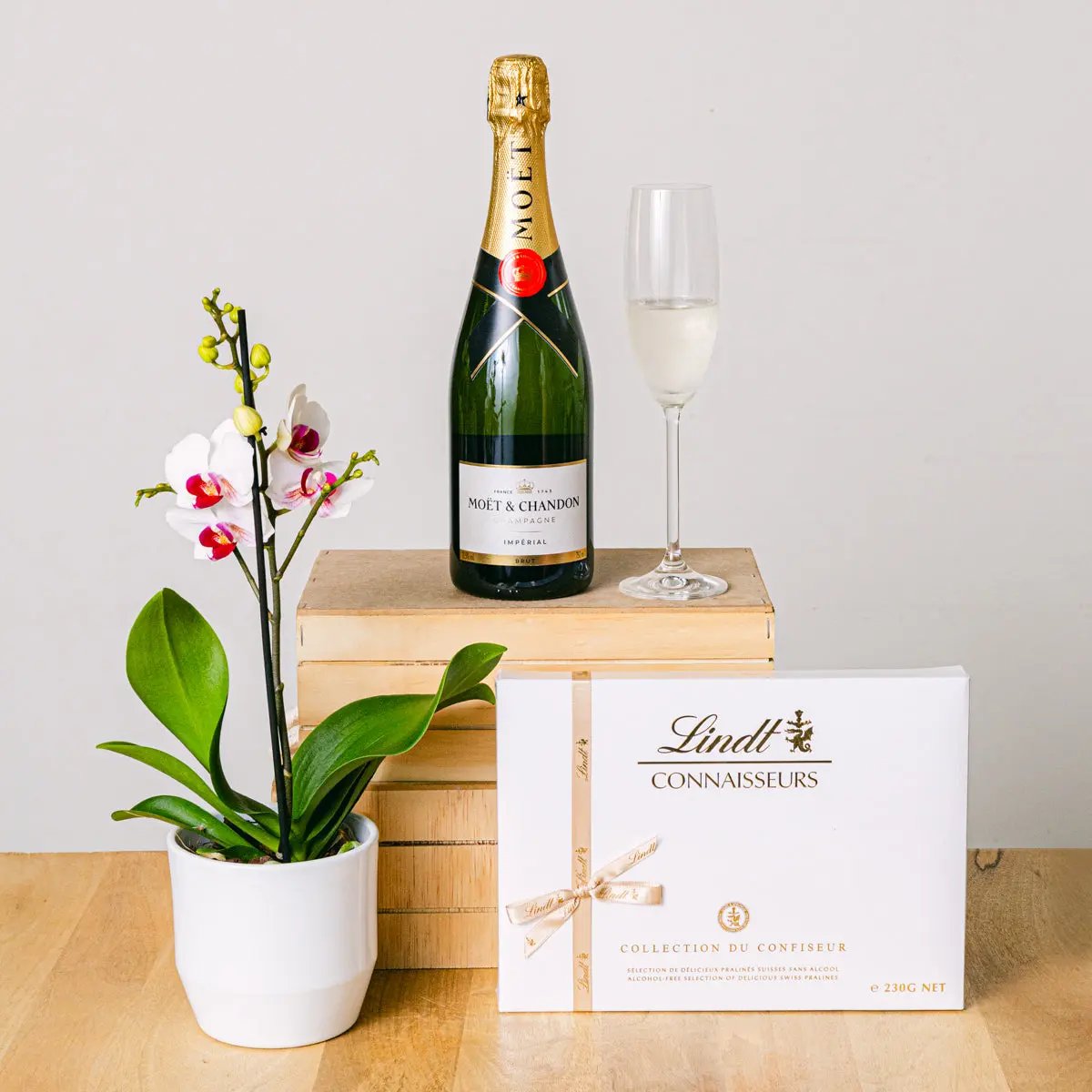 El cacao es antioxidante, mejora la salud del corazón, reduce el estrés y levanta el ánimo. Disfruta de su largo listado de beneficios junto a unas buenas vistas, en compañía de un excelente champán y bajo la armoniosa mirada de la mini orquídea. ¿Qué más podríamos pedir?