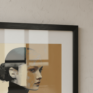 Un retrato moderno con formas audaces y tonos apagados, que refleja introspección y fuerza tranquila. Un regalo refinado y significativo.