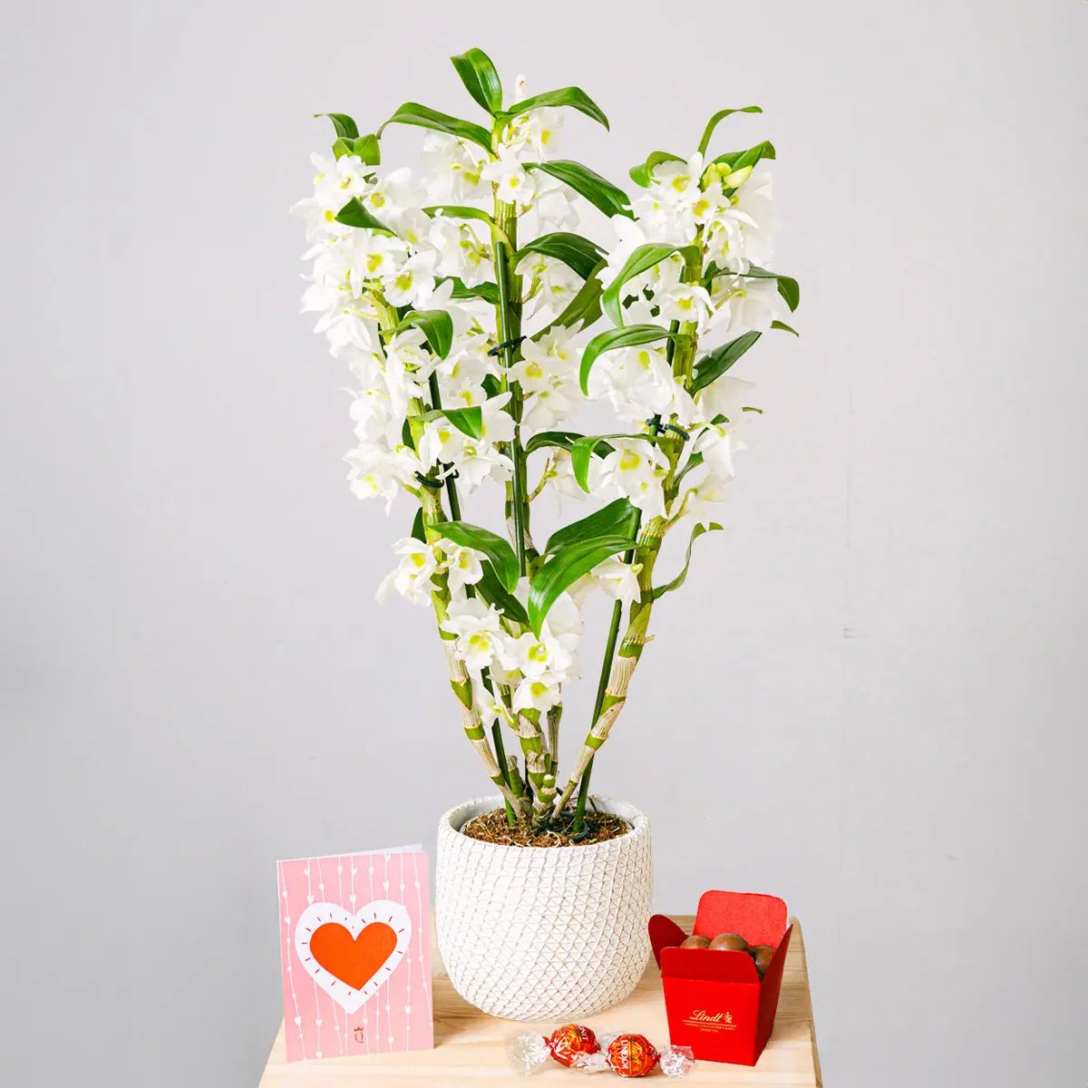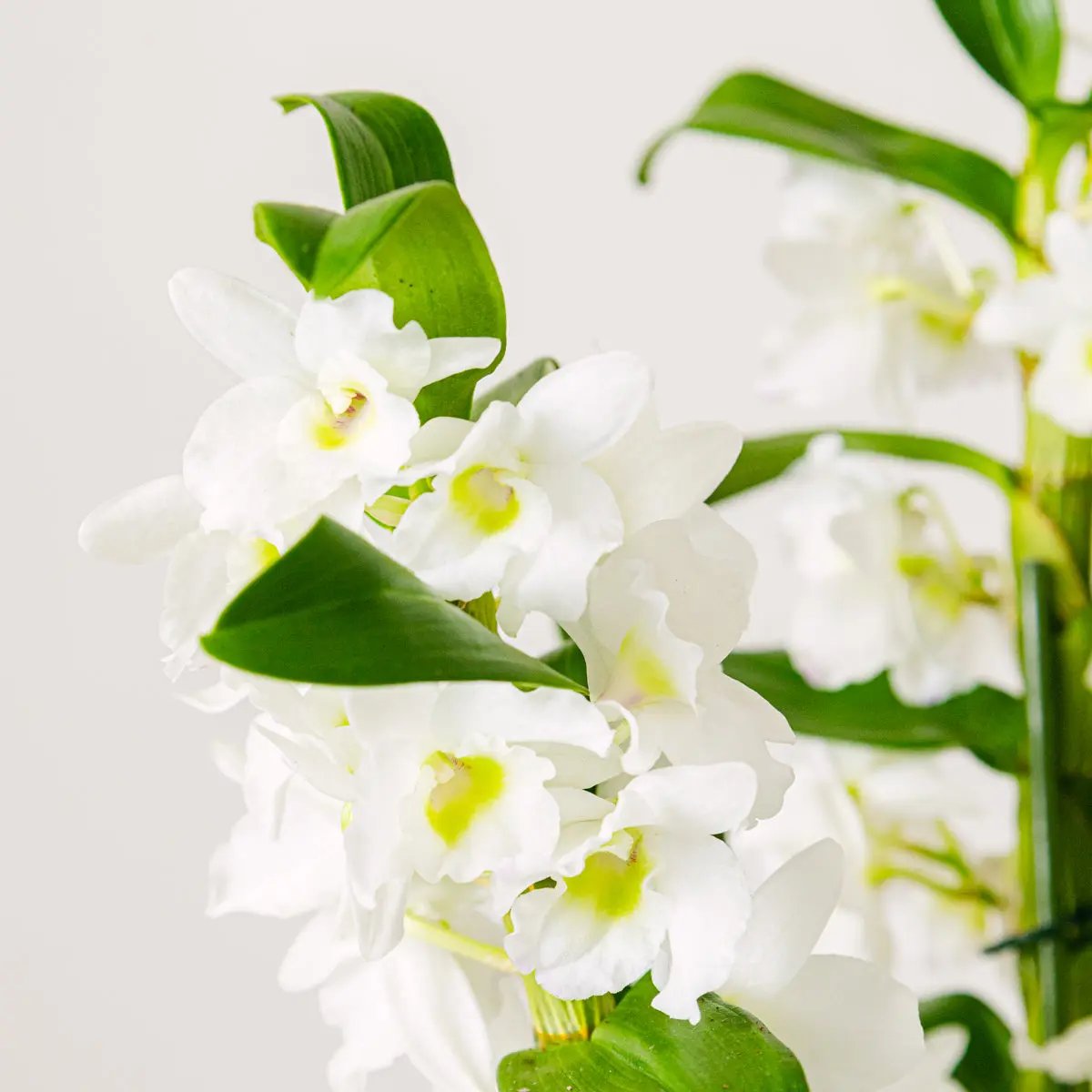 El Dendronium pertenece a la familia de las orquídeas y su nombre se traduce como “vivir en los árboles”. El inconfundible crecimiento vertical y la gracilidad de sus pétalos la dotan de una gran belleza y elegancia. Su simbología le atribuye la capacidad de alejar los fenómenos negativos y de aportar frescura al ambiente, mientras que las delicadas flores blancas hablan de reverencia y humildad.