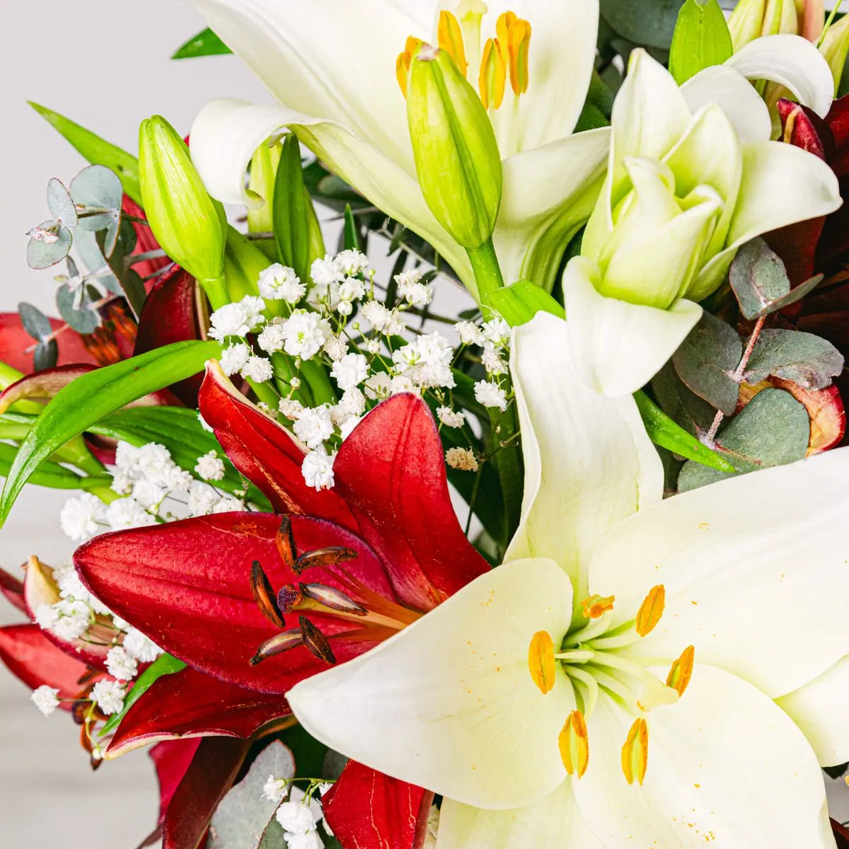 Una obra maestra de sofisticación y pasión, encapsulada en cada delicado pétalo de nuestros lirios rojos premium. Estos lirios, cuidadosamente seleccionados por su frescura y calidad inigualable, son un símbolo de amor profundo y admiración sincera, capaces de transmitir las emociones más intensas con su vibrante tonalidad carmesí.