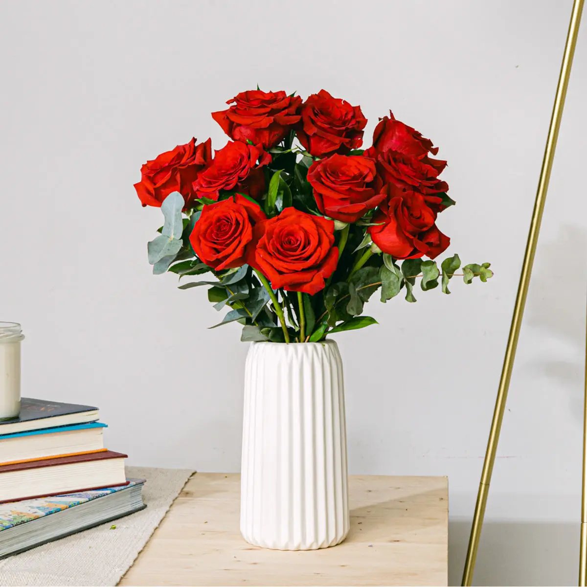 Al llegar: Coloca tu ramo en un jarrón limpio lleno de agua fresca a temperatura ambiente inmediatamente tras la entrega.