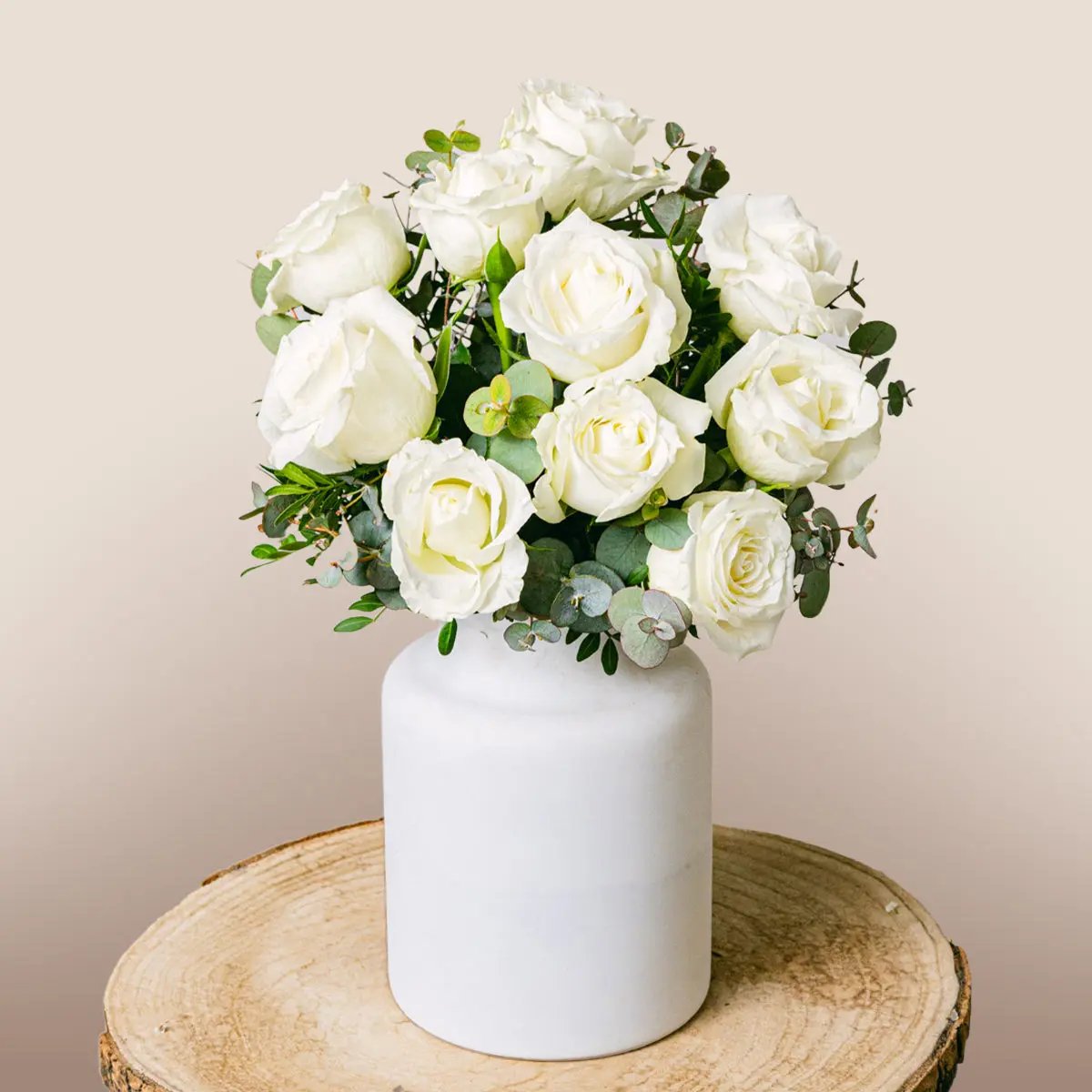 El blanco simboliza pureza y nuevos comienzos, mientras que el eucalipto aporta protección y abundancia. Juntos, evocan sentimientos de alegría y admiración, un regalo perfecto para momentos significativos.