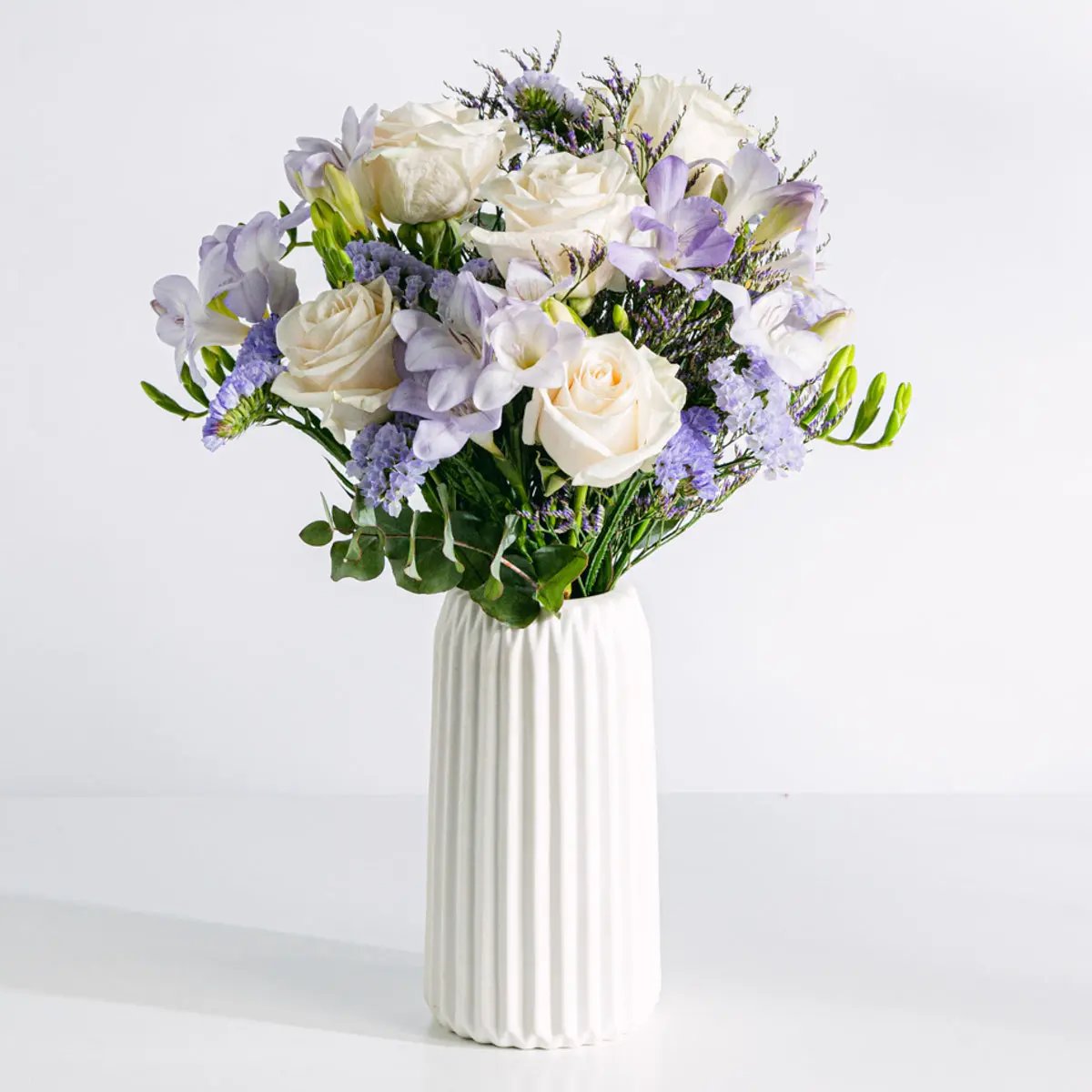 Al llegar: Coloca tu ramo en un jarrón limpio lleno de agua fresca a temperatura ambiente inmediatamente tras la entrega.