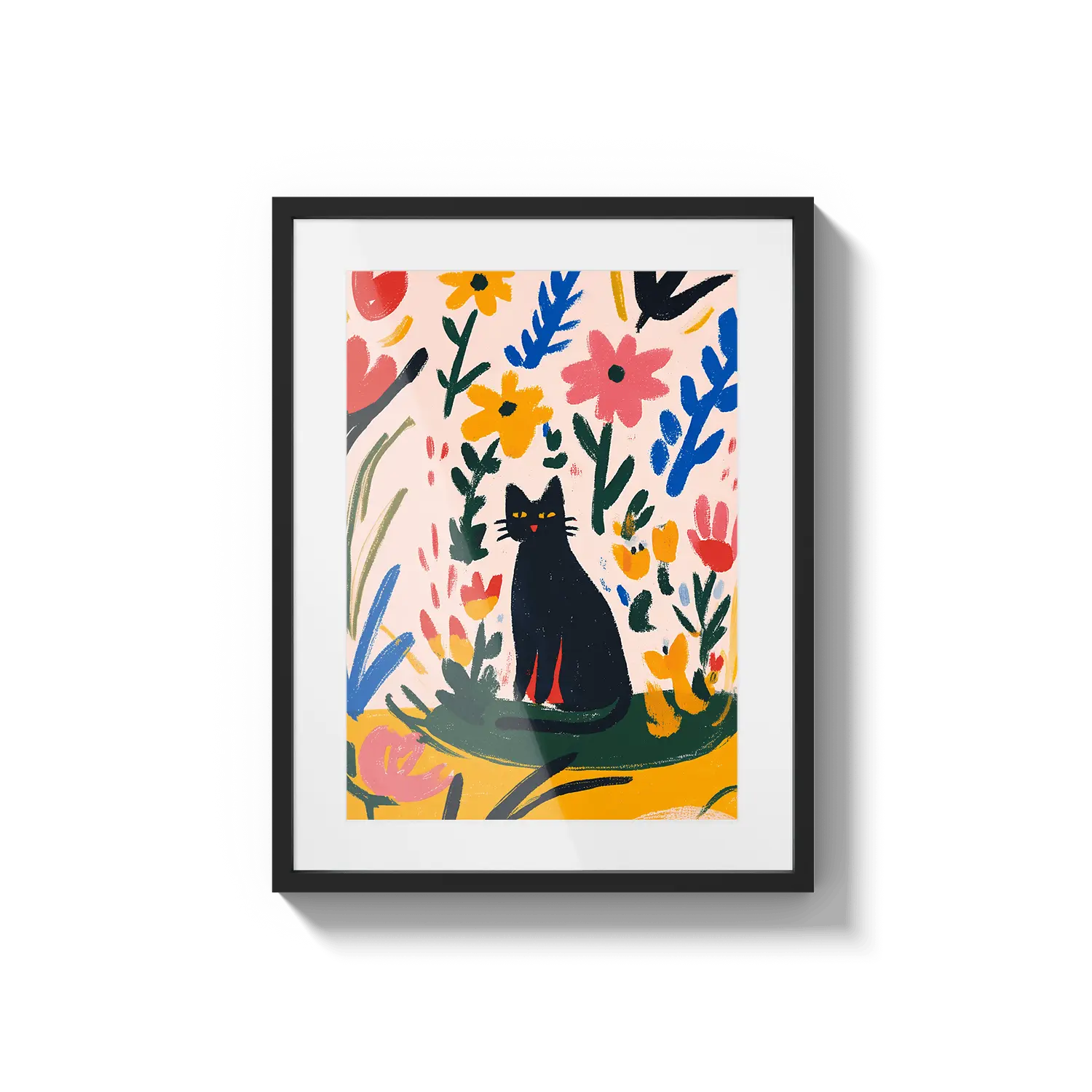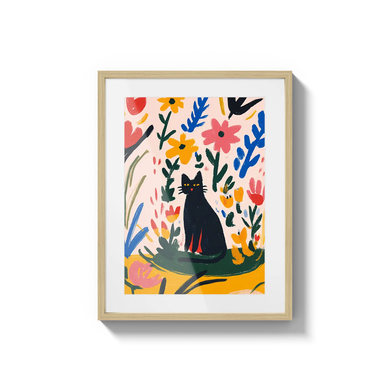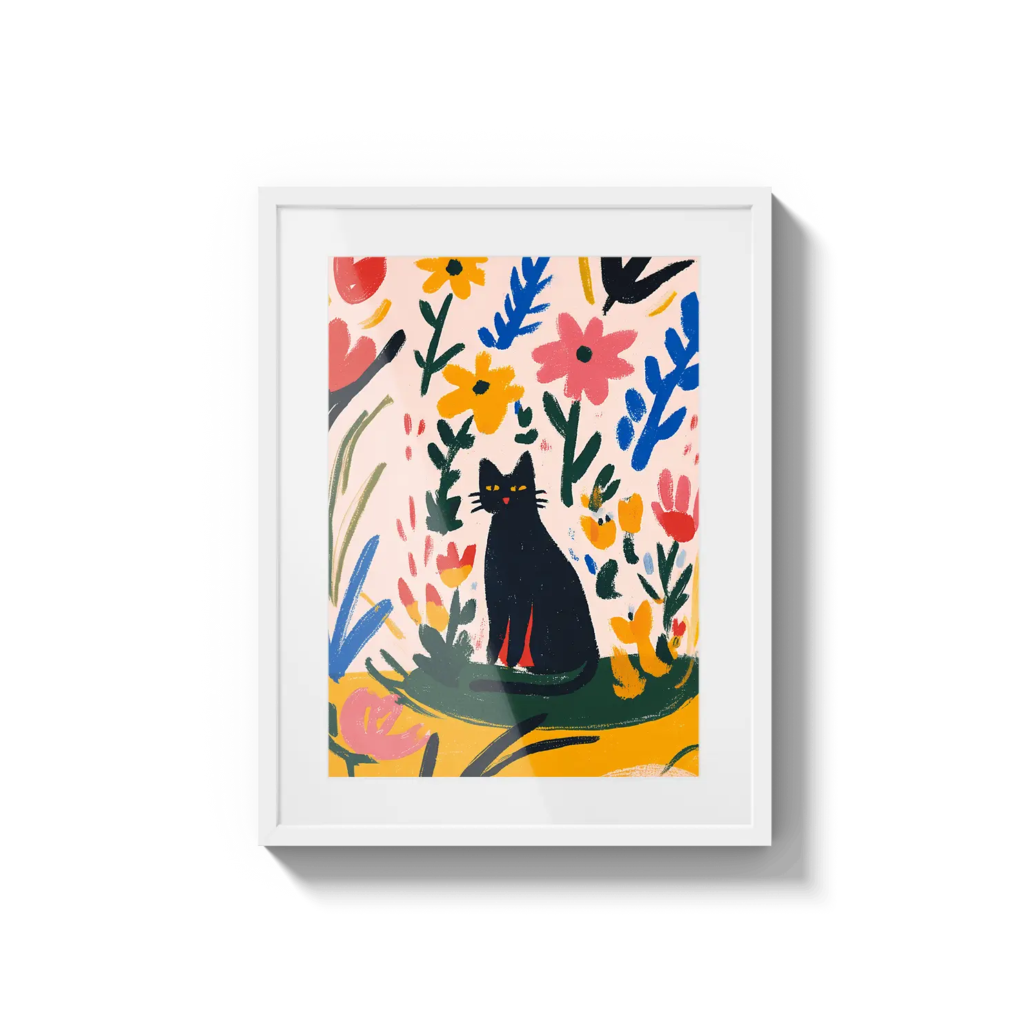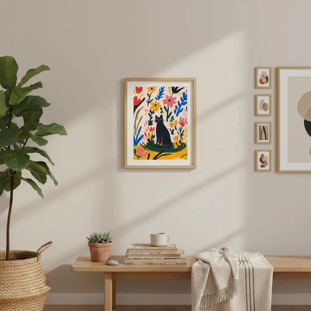 Una encantadora escena de un gato descansando entre hojas coloridas, que irradia una calidez juguetona. Un hermoso regalo para alegrar el día de alguien.