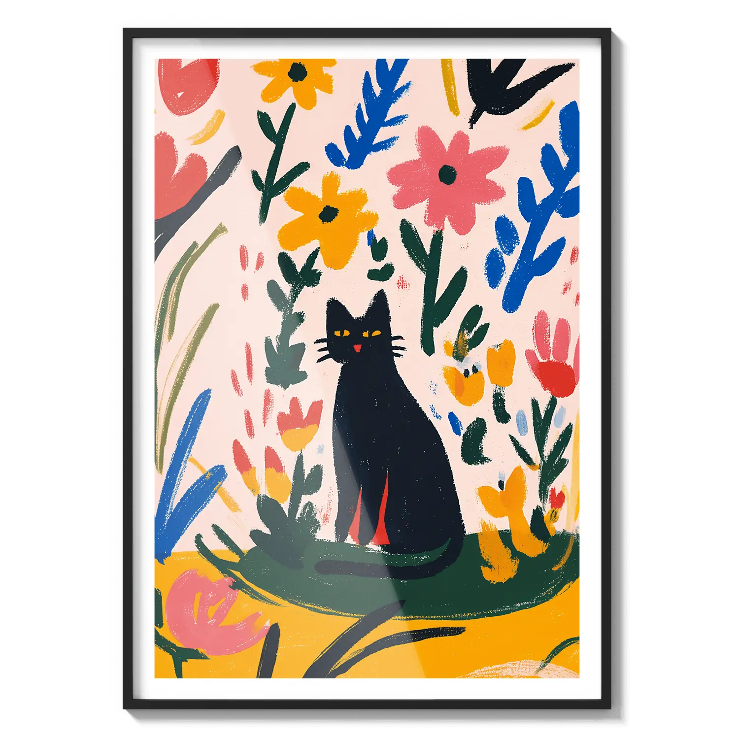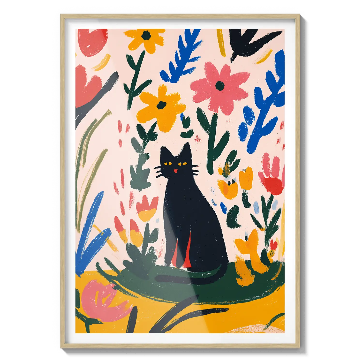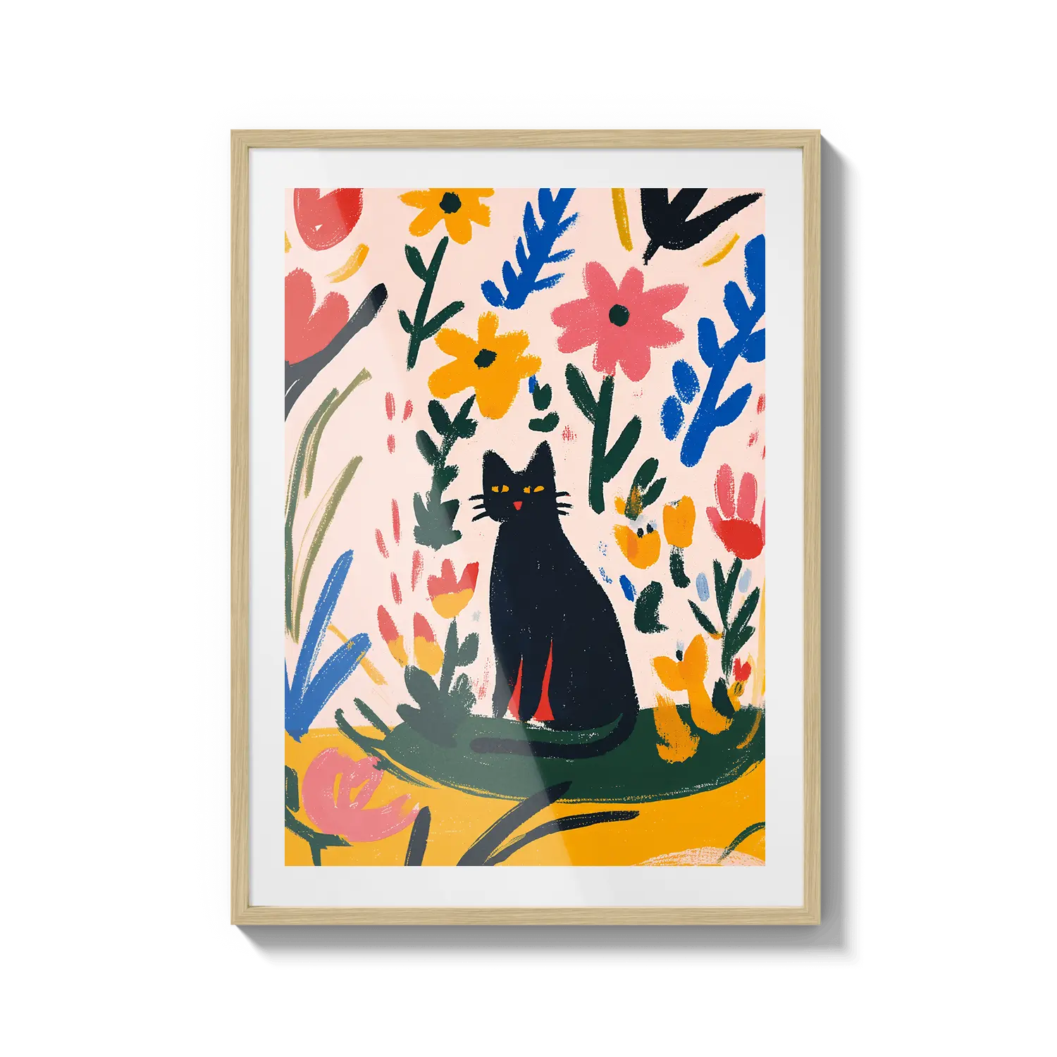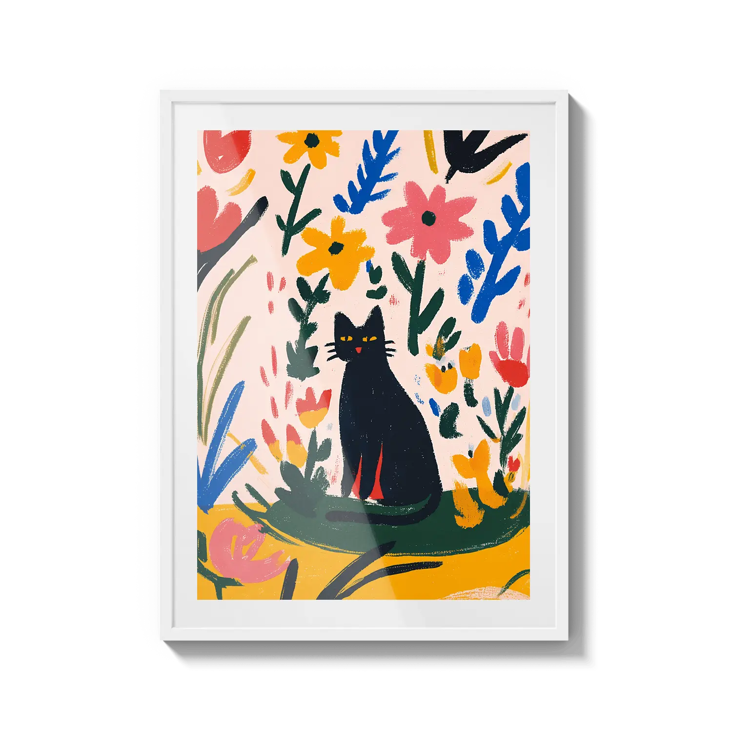 Una encantadora escena de un gato descansando entre hojas coloridas, que irradia una calidez juguetona. Un hermoso regalo para alegrar el día de alguien.