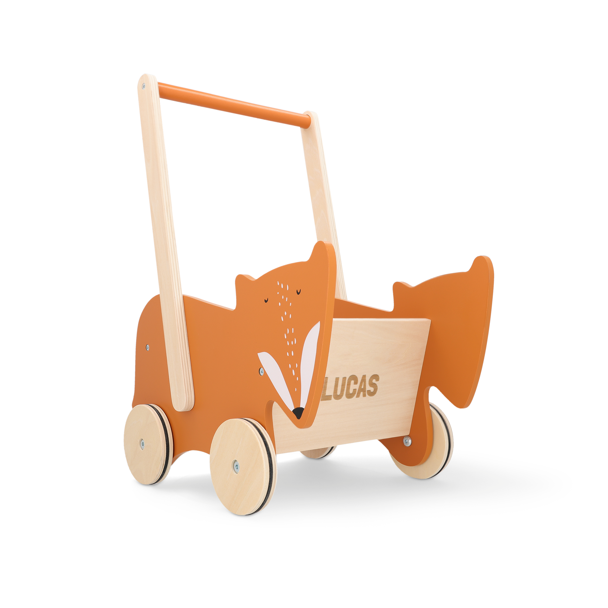 Andador de madera personalizado para bebés de Trixie, grabado con el nombre o texto de tu elección. ¡Sostenible, divertido y verdaderamente personal!