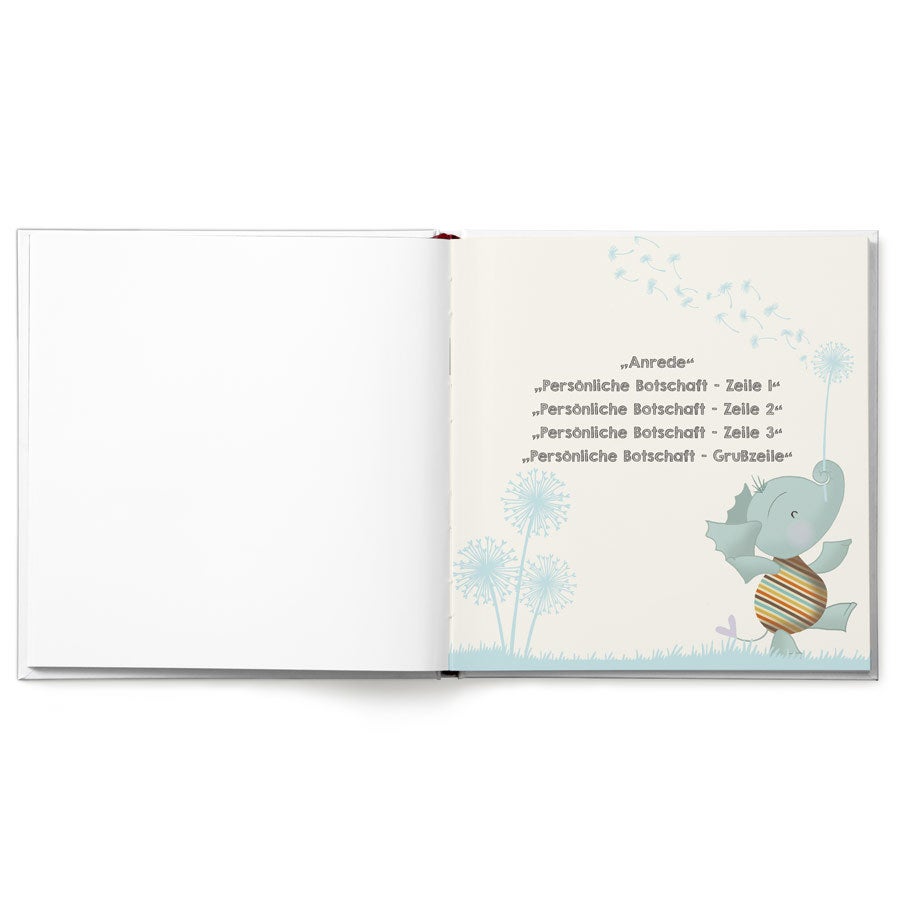 Más información sobre el libro para bebés personalizado: Dimensiones: 21 x 21 cm Cubierta: Tapa dura Número de páginas: 32 Edad: a partir de 0 años Género: para niños y niñas Personalización: con foto, nombre y mensaje personal