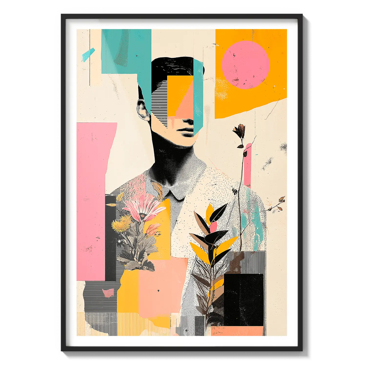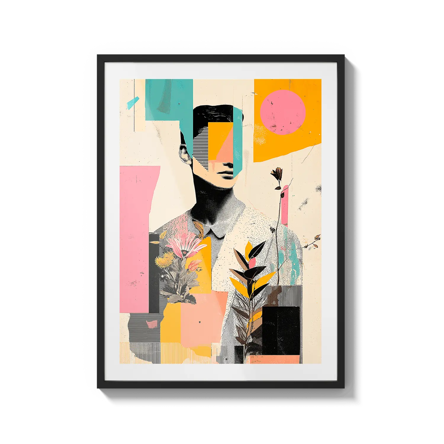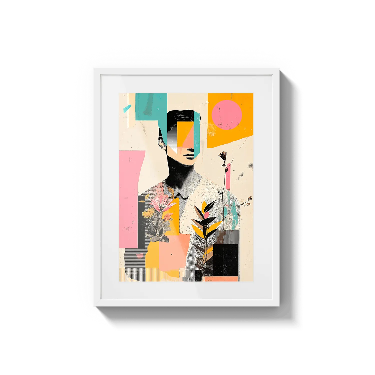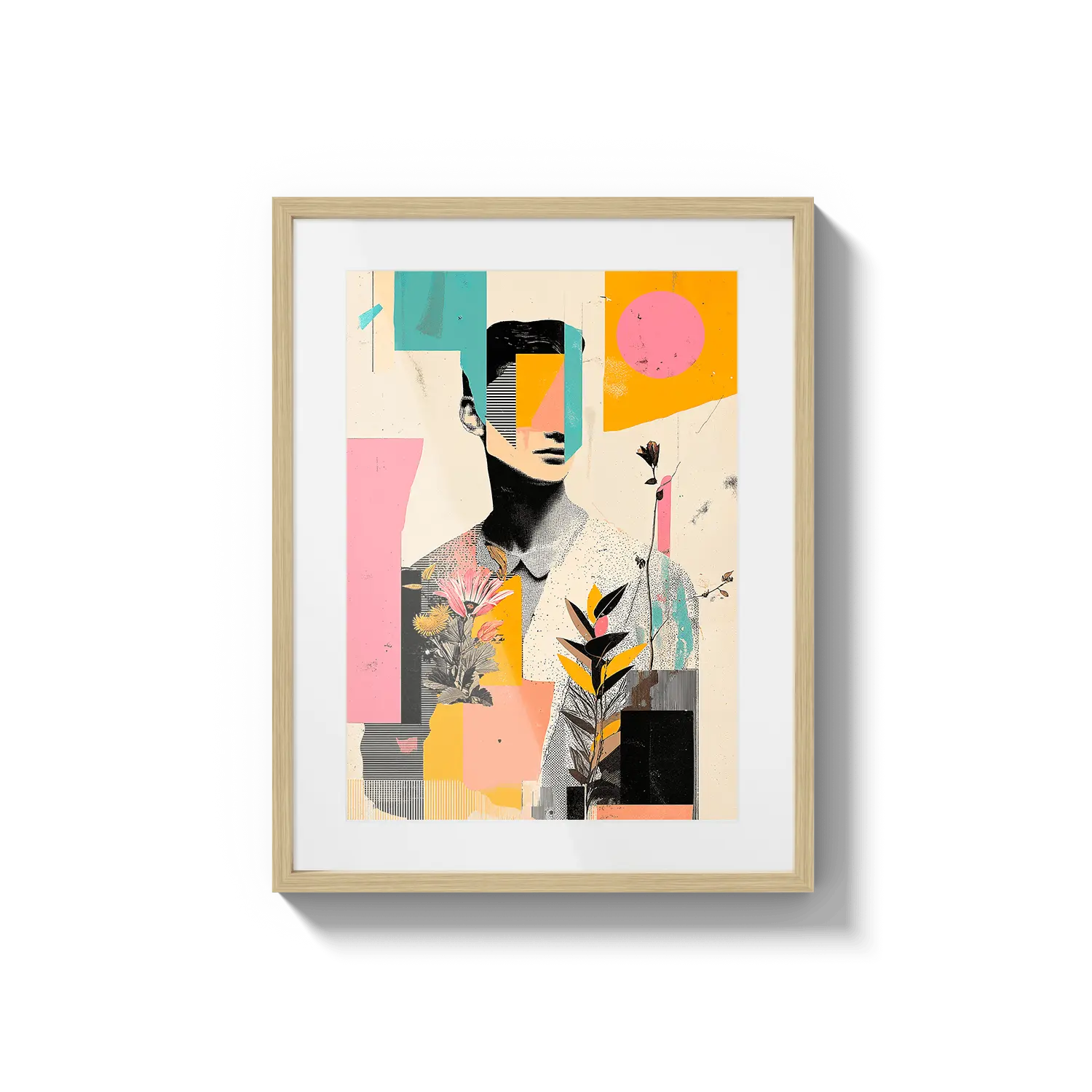 Un retrato geométrico colorido que combina formas atrevidas y ritmo moderno. Una opción de regalo fresca y vibrante.