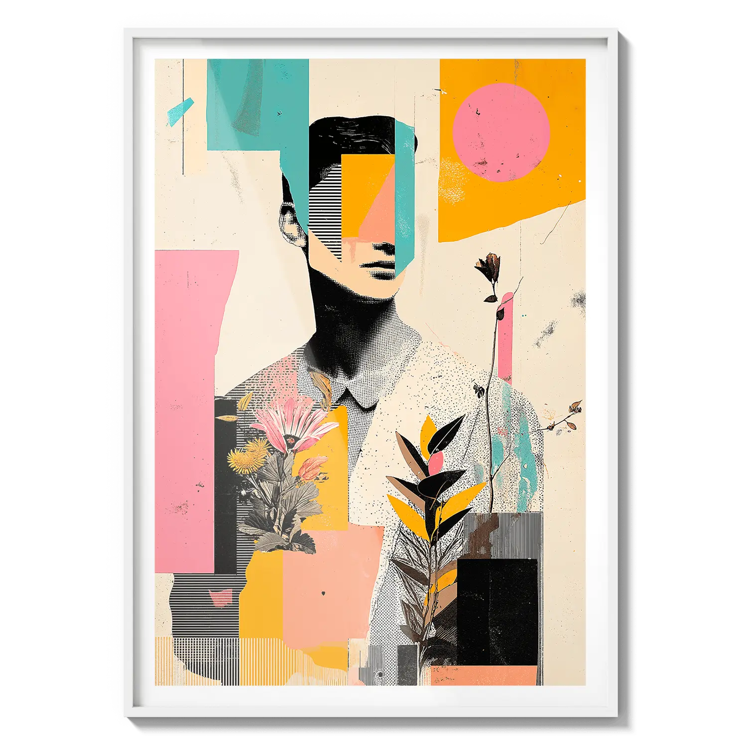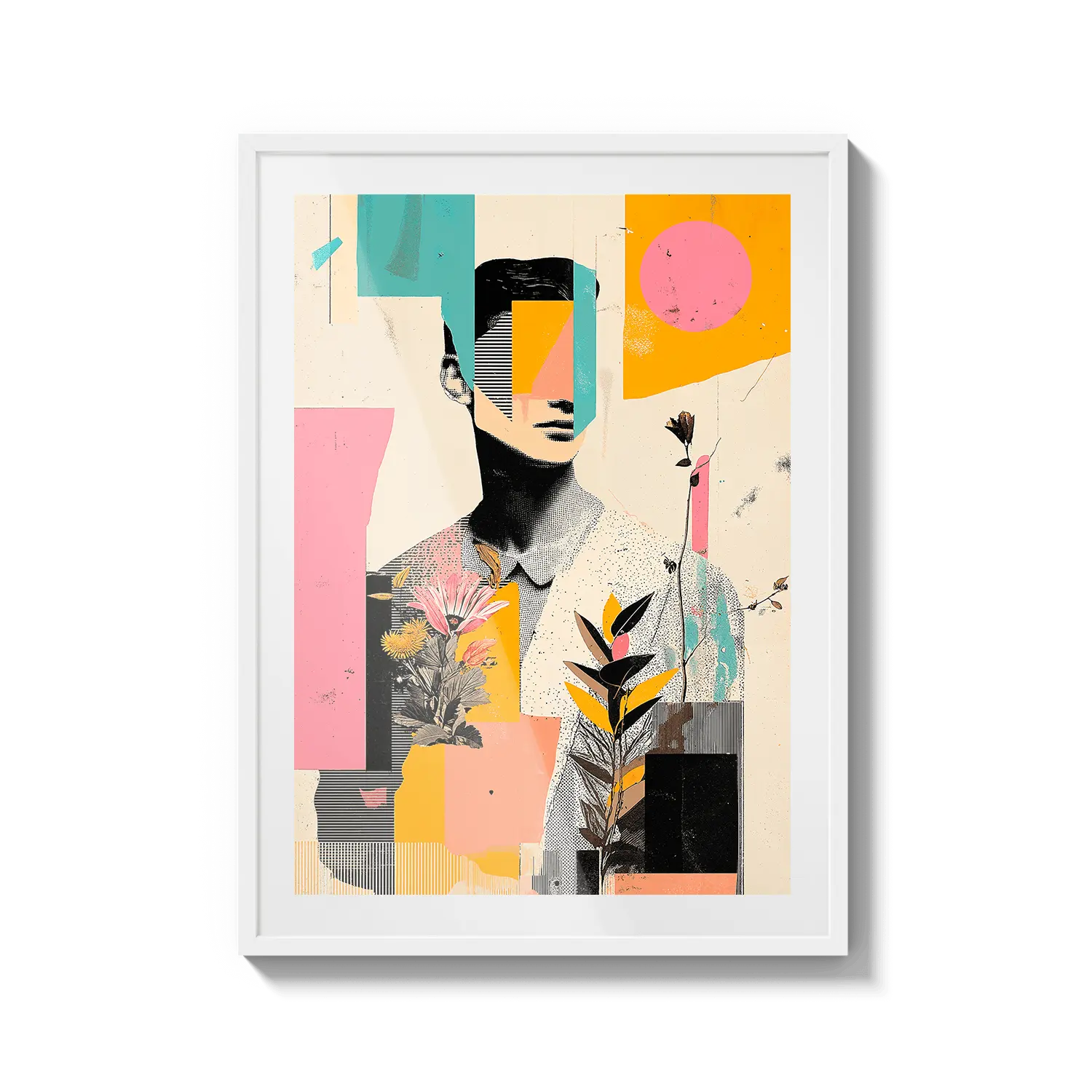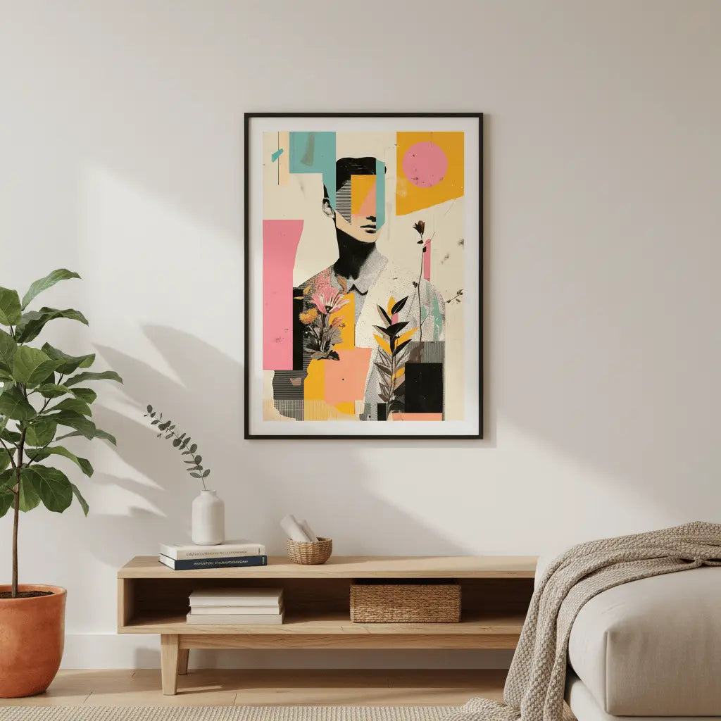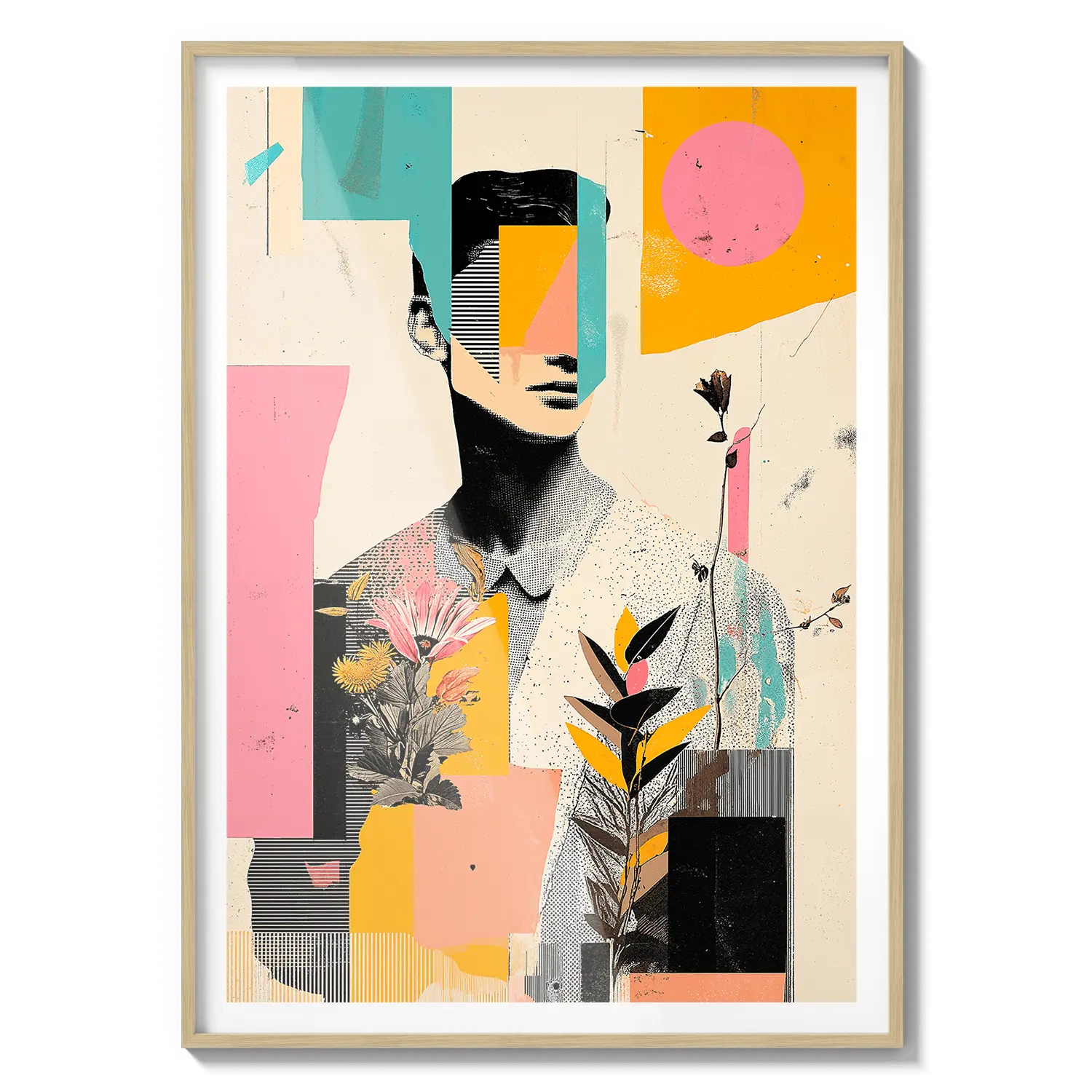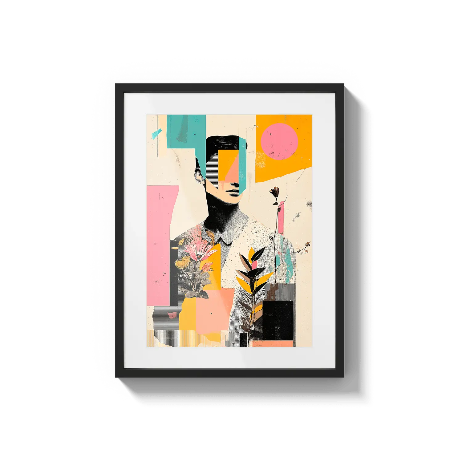 Un retrato geométrico colorido que combina formas atrevidas y ritmo moderno. Una opción de regalo fresca y vibrante.
