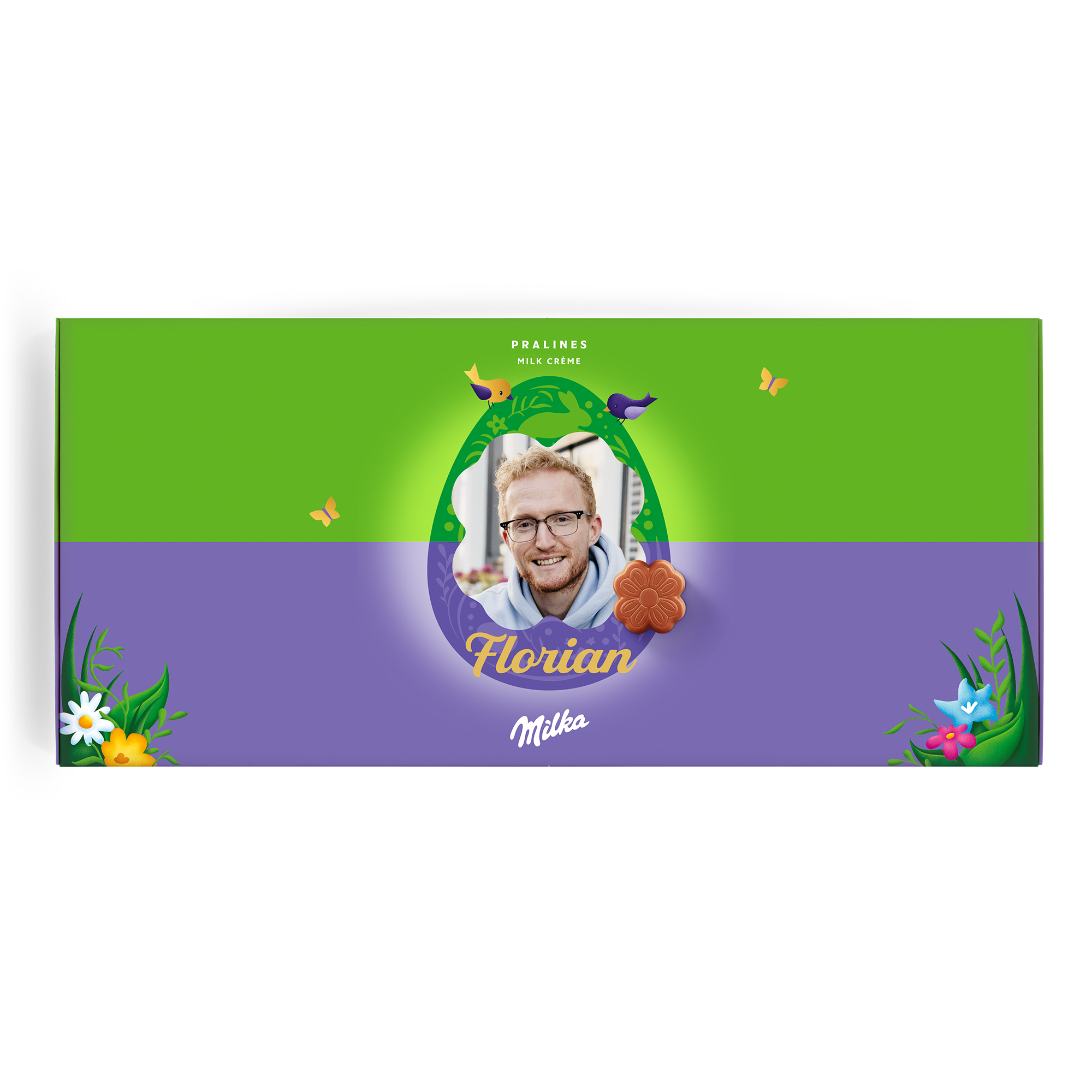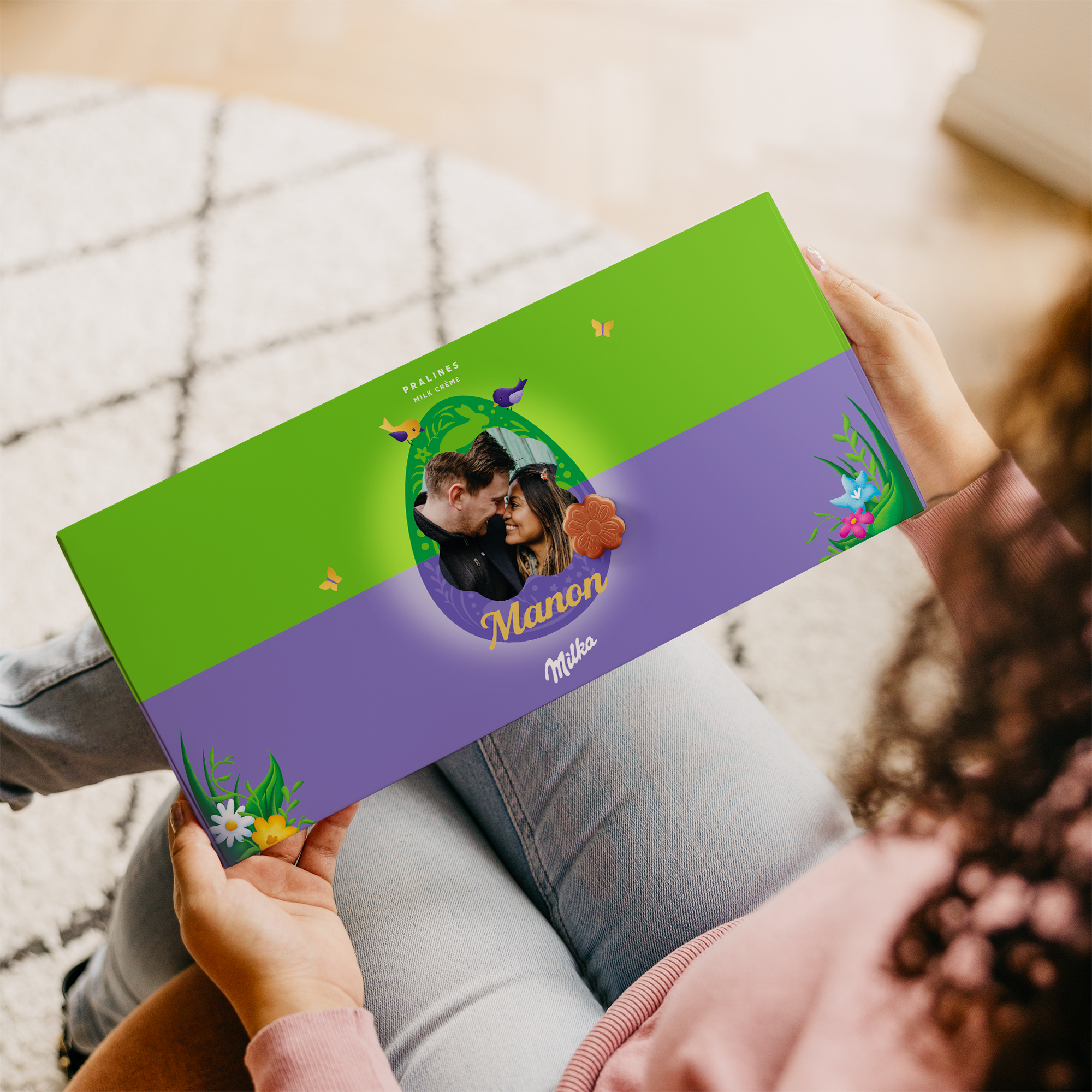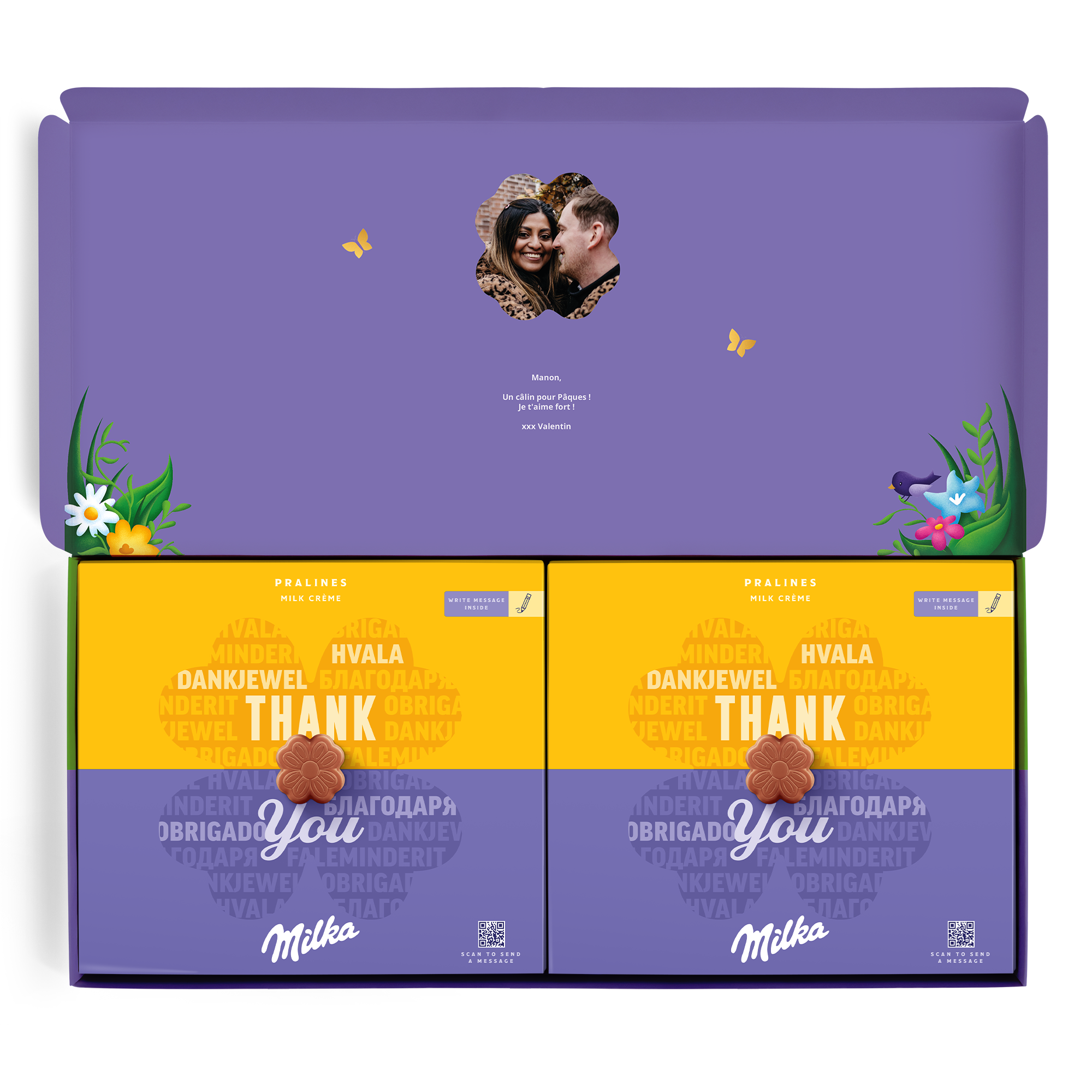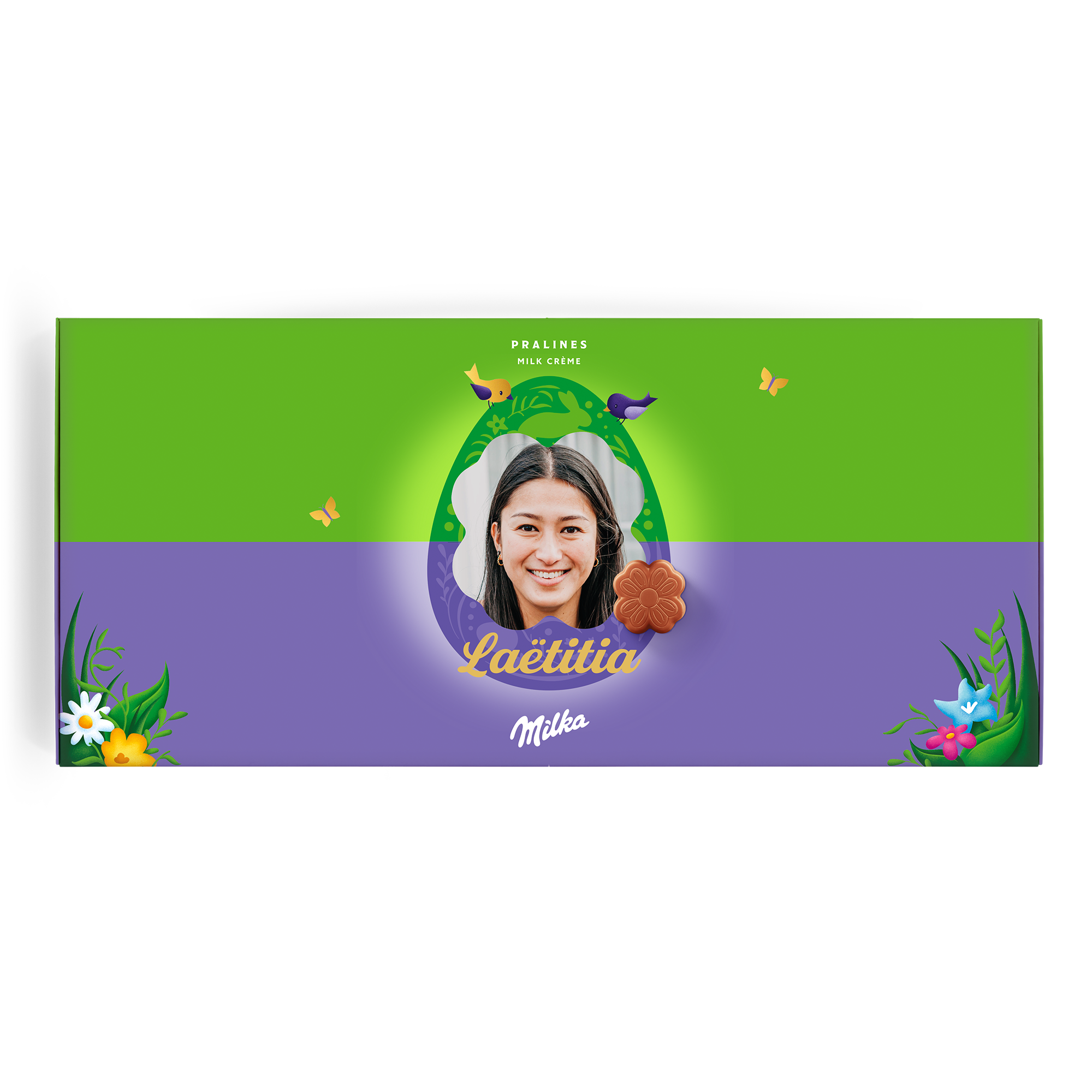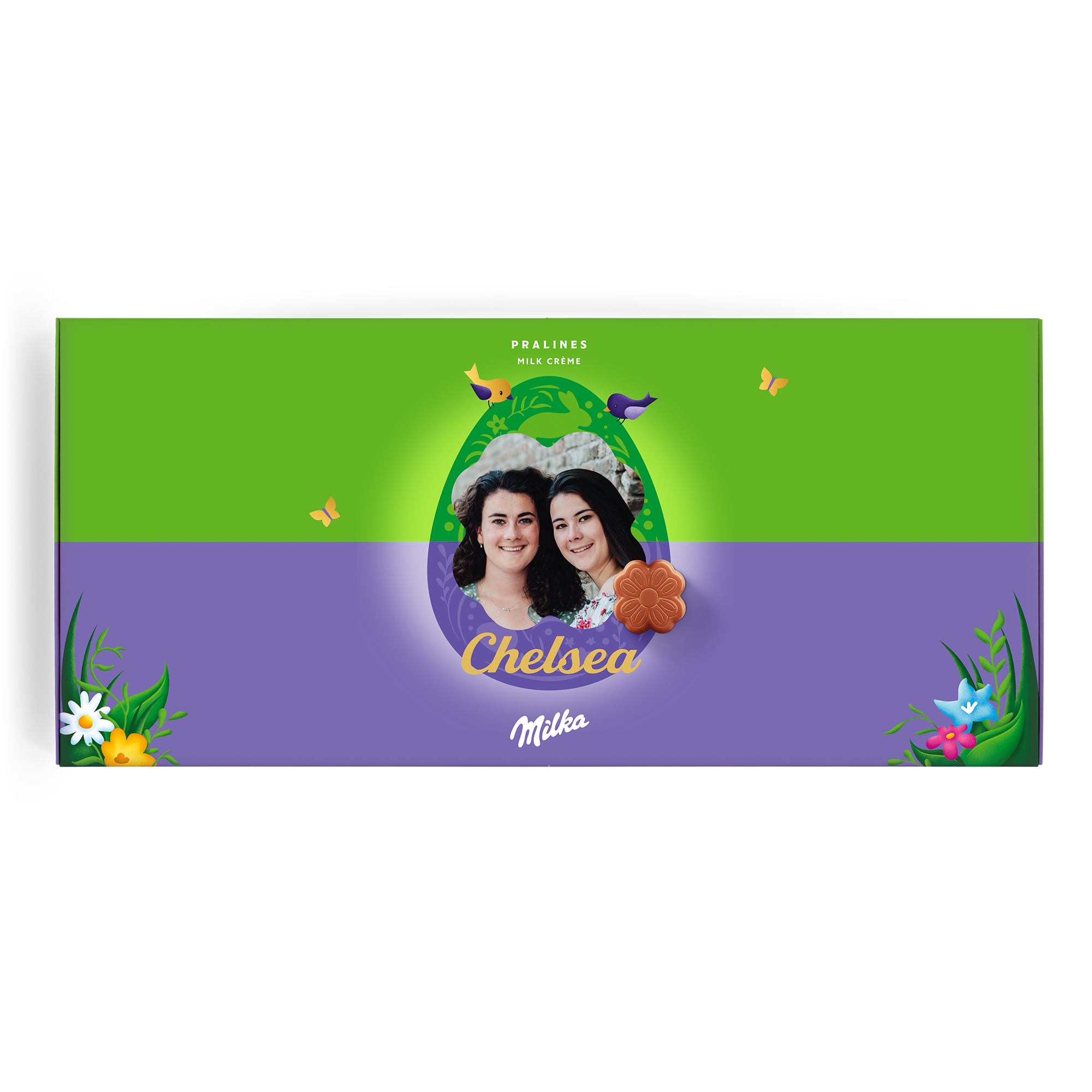 Caja especial Dilo con chocolate Milka para Semana Santa. Deliciosos bombones con nombre, foto y mensaje personal. ¡Sorprende a tus seres queridos!