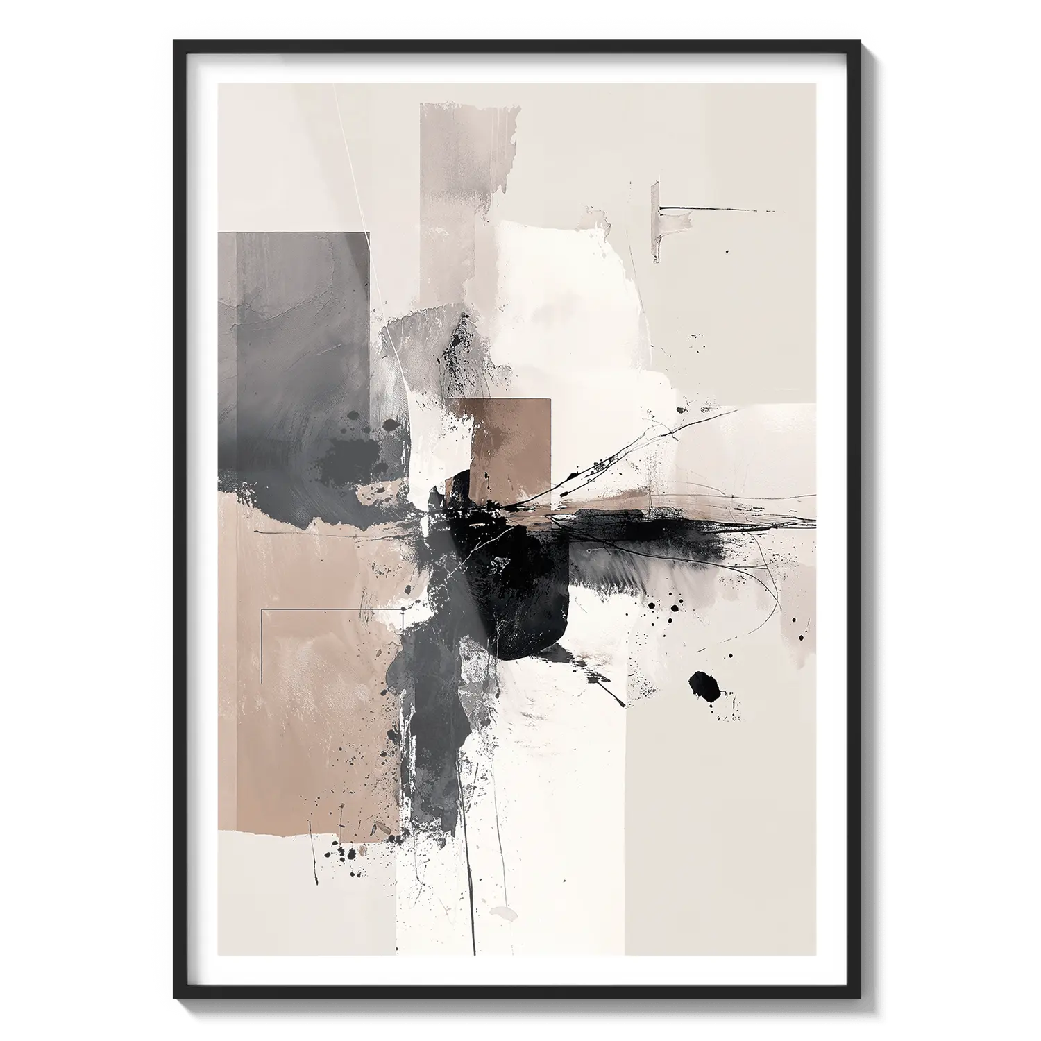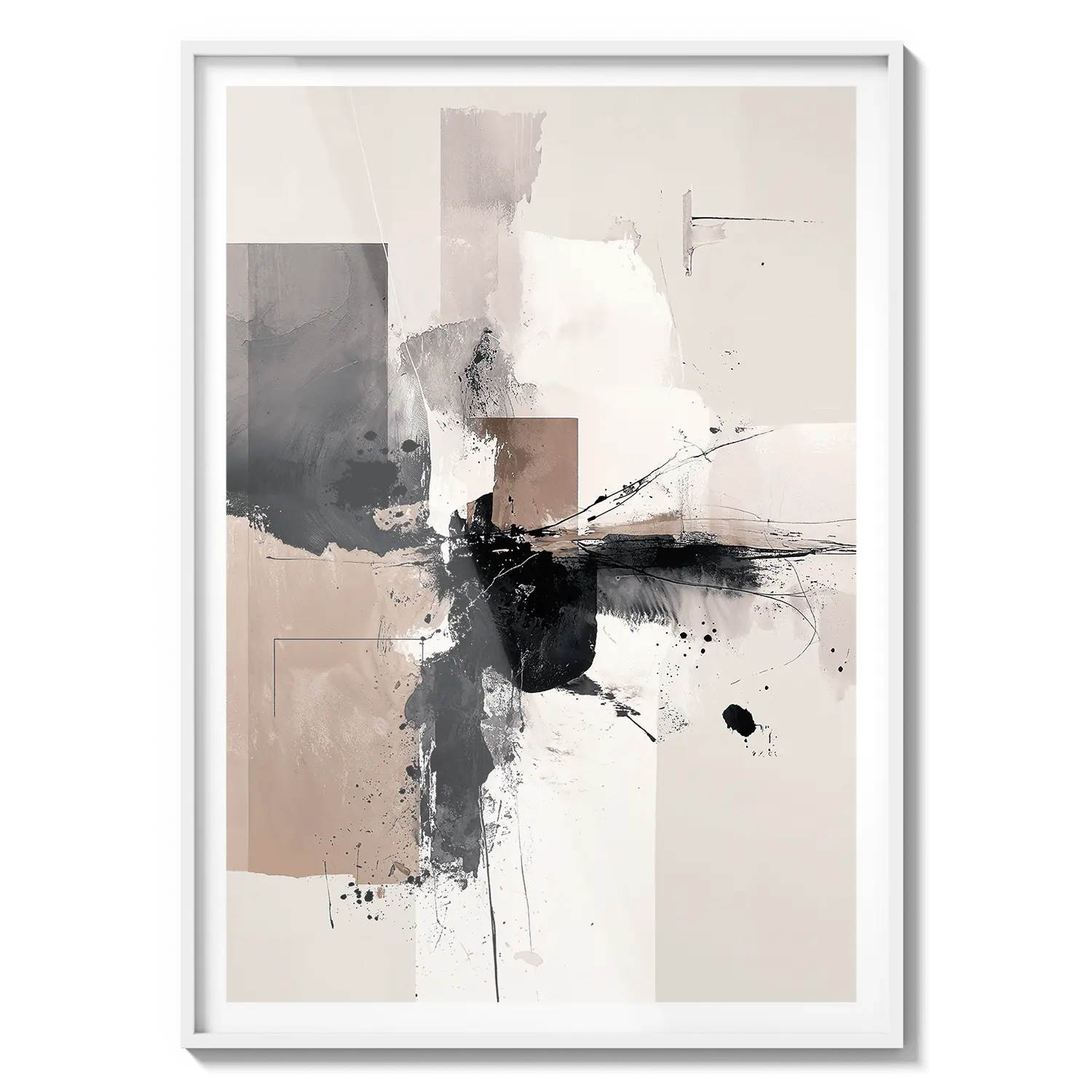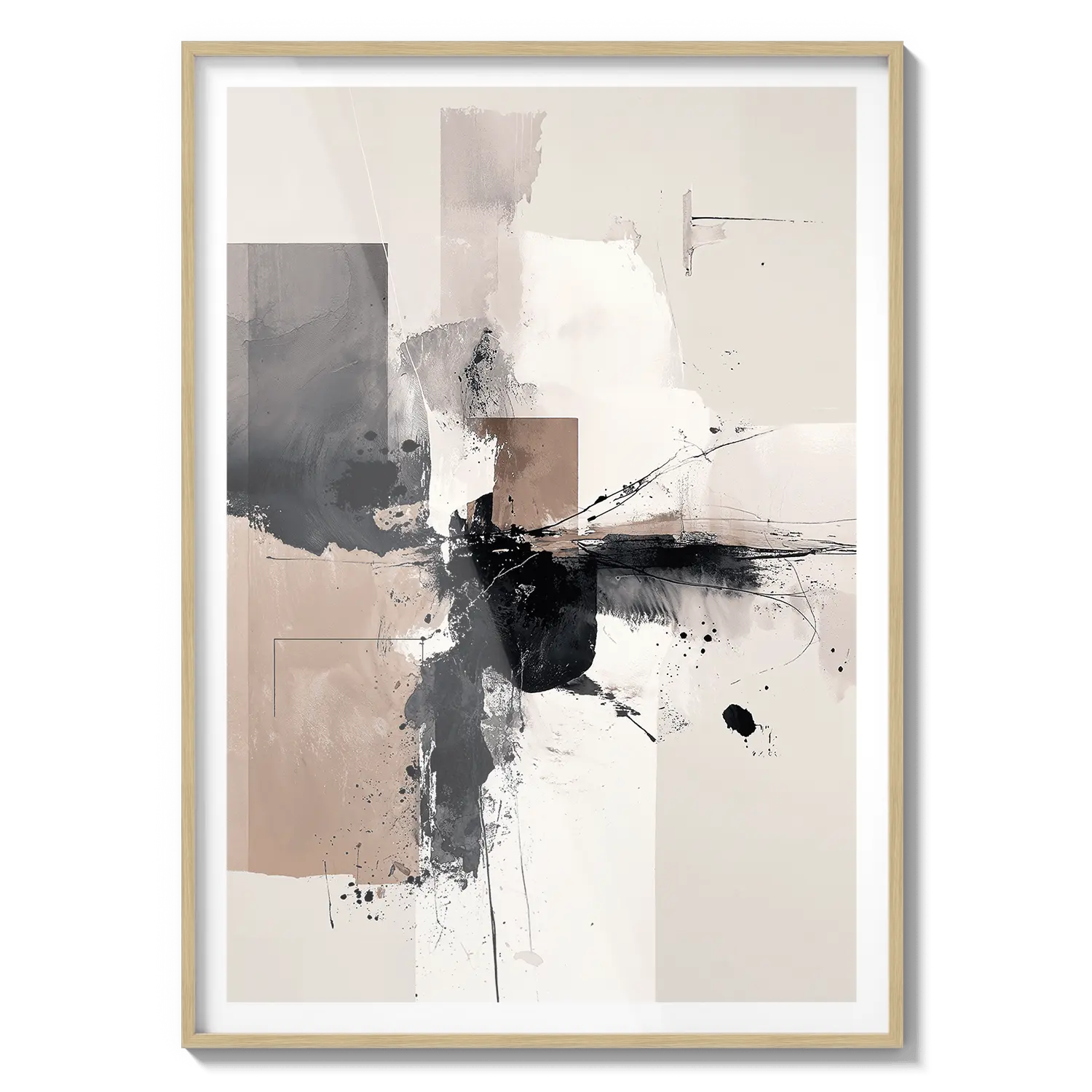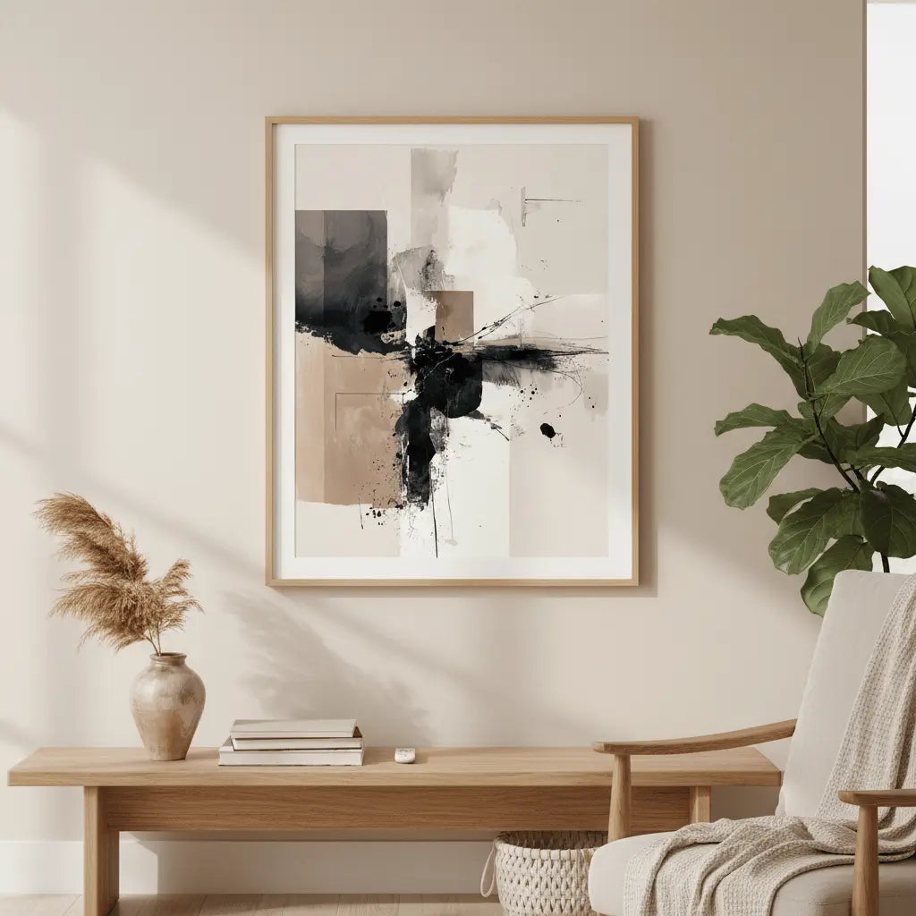 Una composición abstracta de tonos neutros suaves y movimiento expresivo. Una obra de arte refinada que aporta energía tranquila.