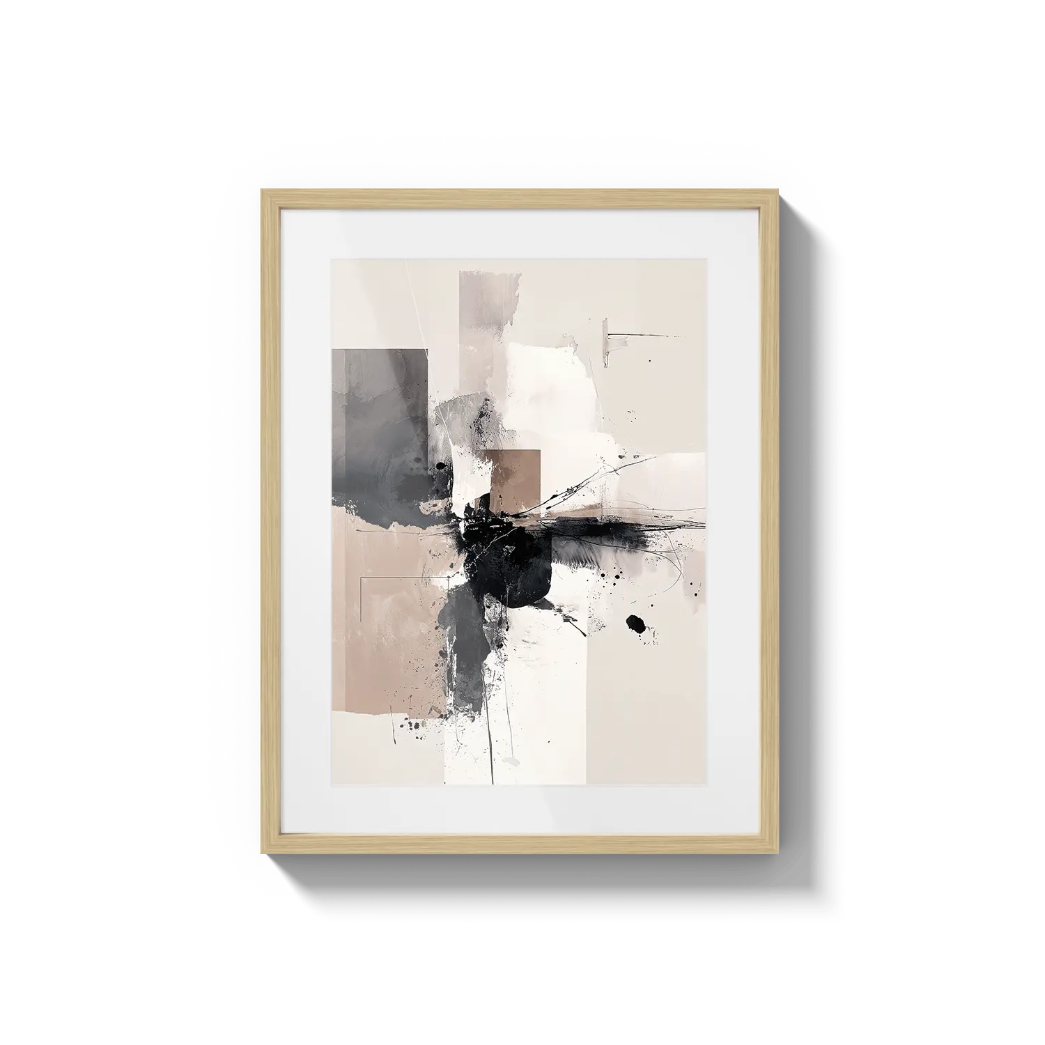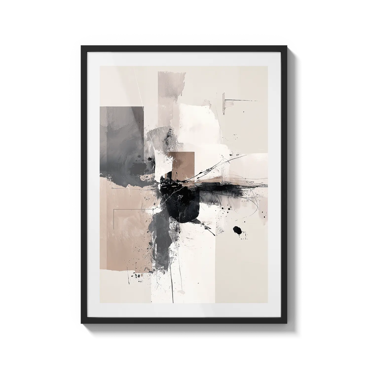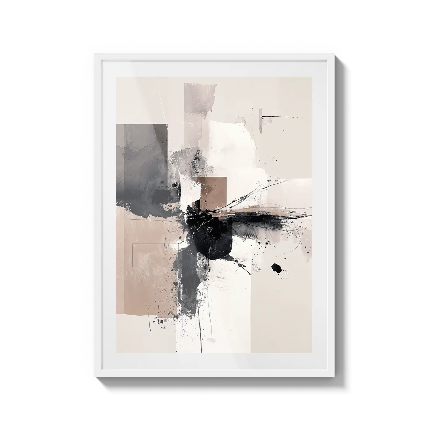 Una composición abstracta de tonos neutros suaves y movimiento expresivo. Una obra de arte refinada que aporta energía tranquila.