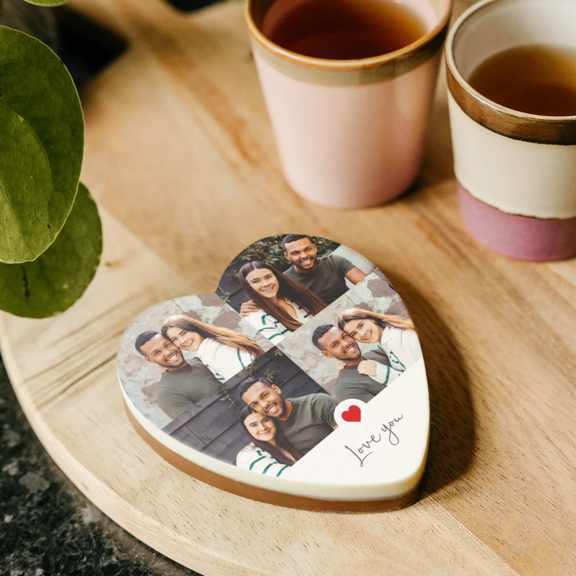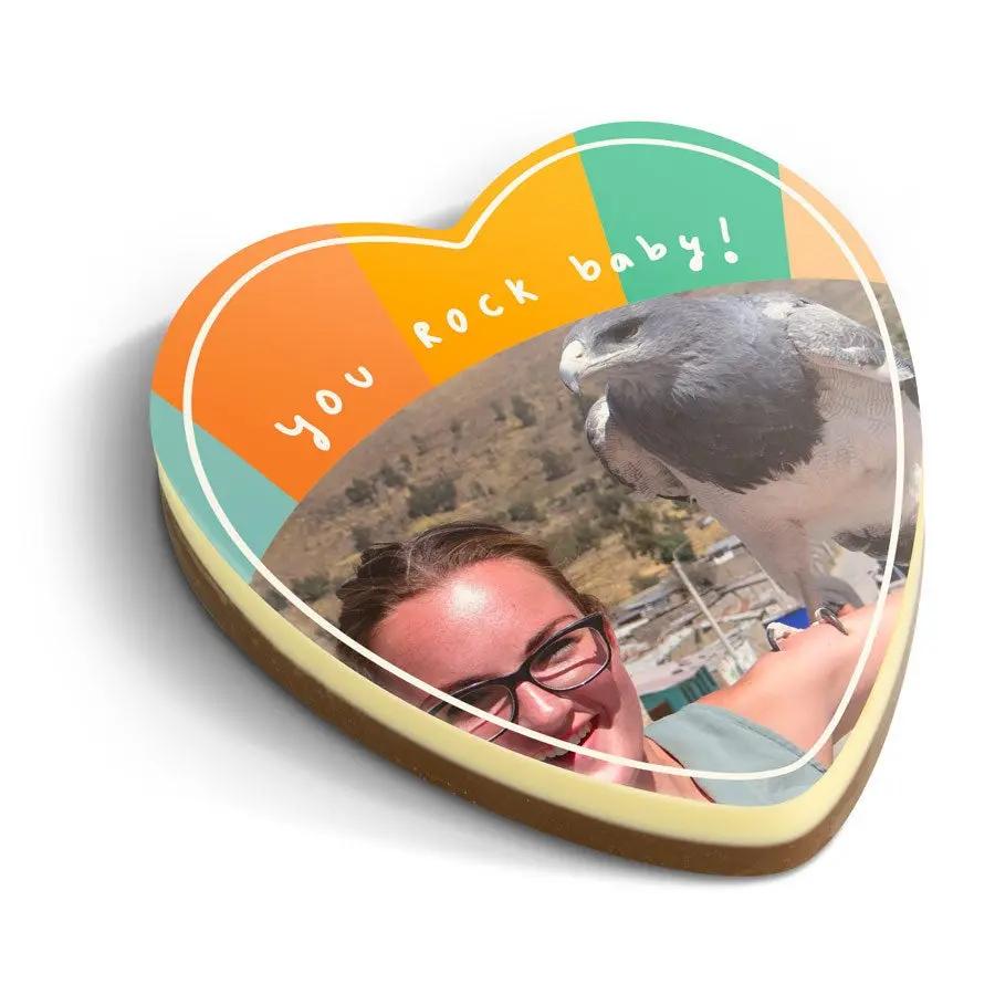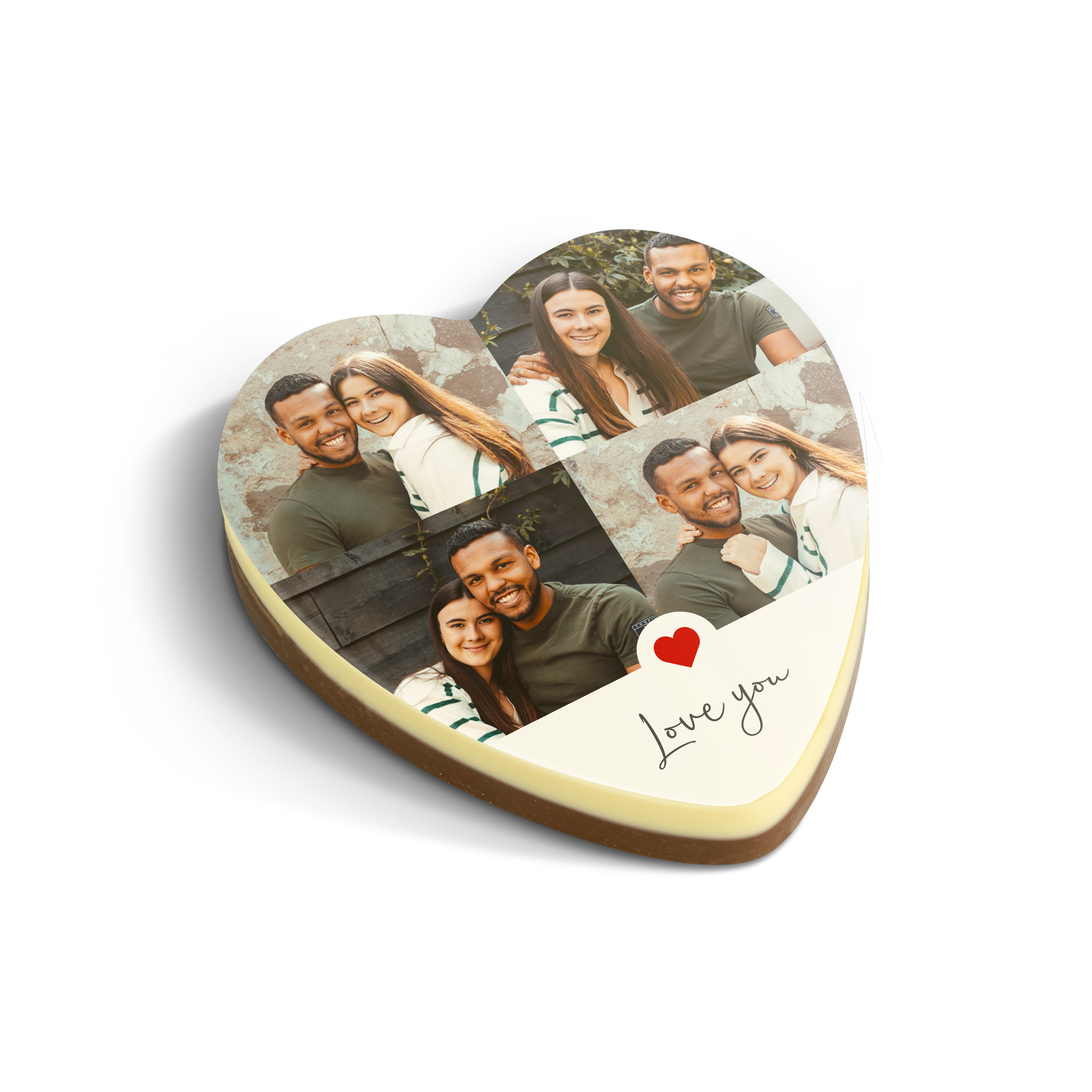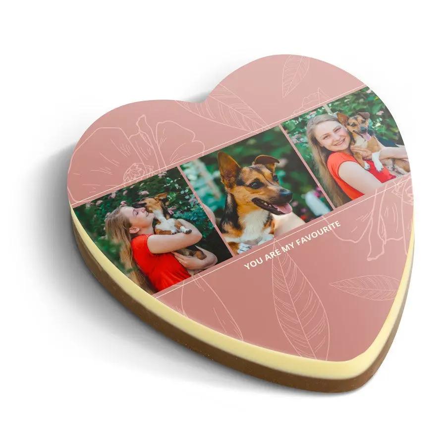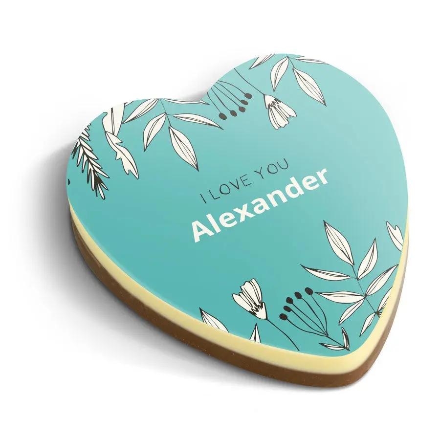 Corazón de chocolate hecho a mano con la personalización de tu elección. ¡Una deliciosa sorpresa!