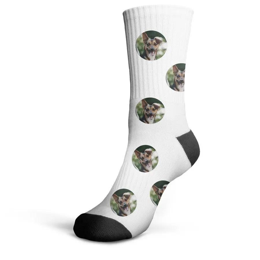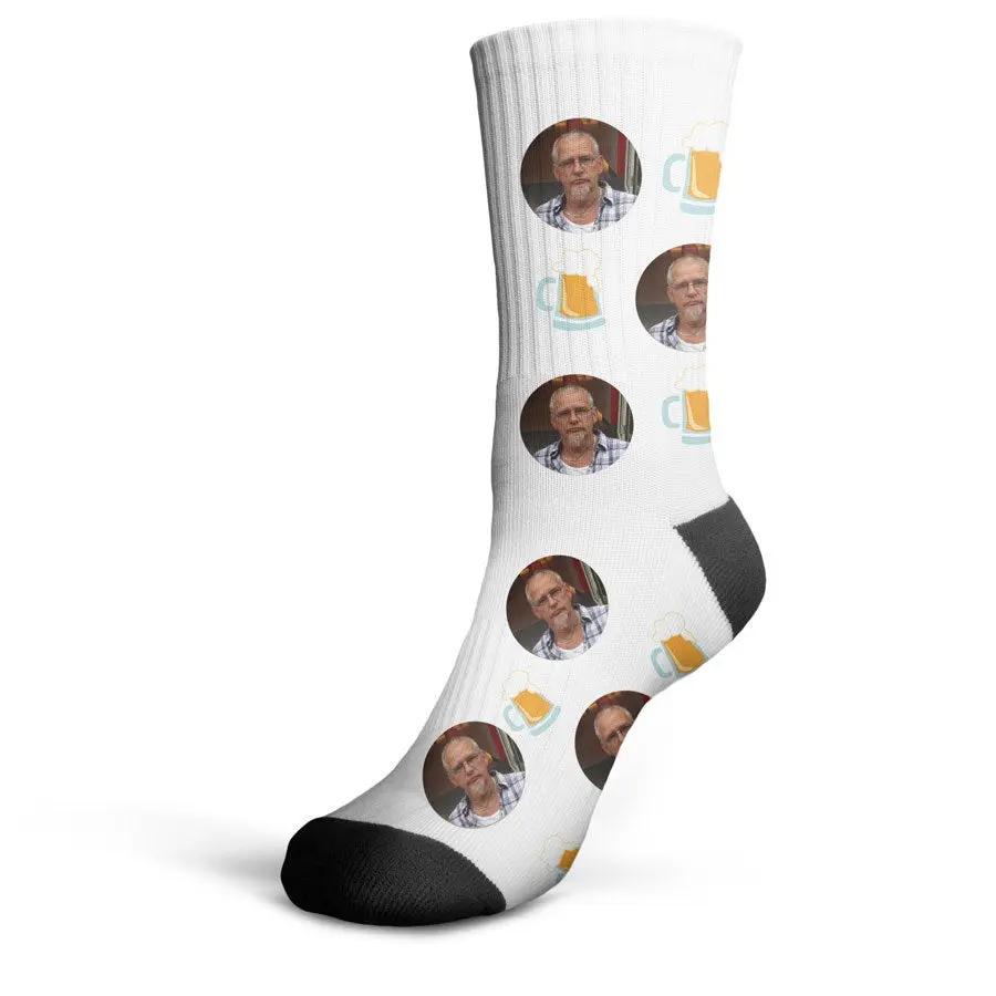 Más información sobre los calcetines impresos:Color: blancoTamaño: EU 43-45 (23.5 cm)Material: 95% poliéster, 5% licraPersonalización: con foto o logoImpresión: foto a color en excelente calidad en los dos calcetinesExtra: lavar los calcetines a 30°C.
