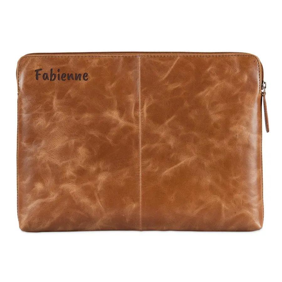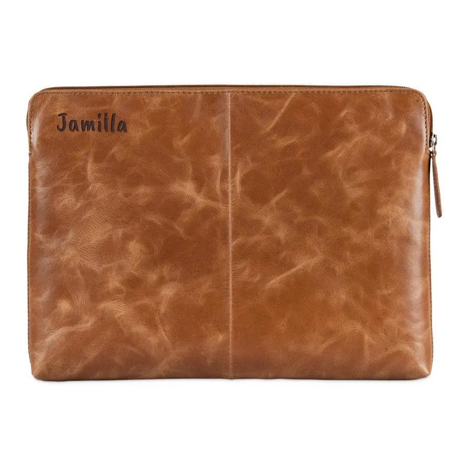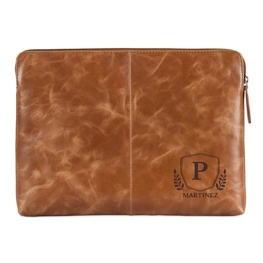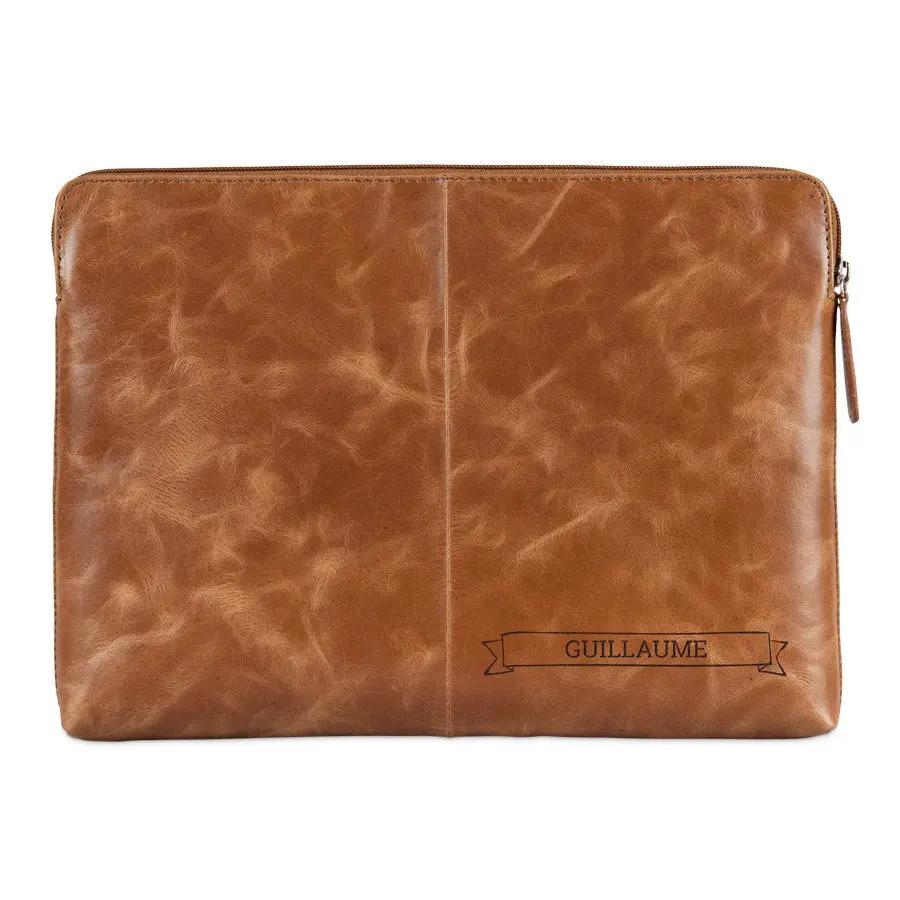 Más información sobre la funda para portátil de piel con nombre grabado: