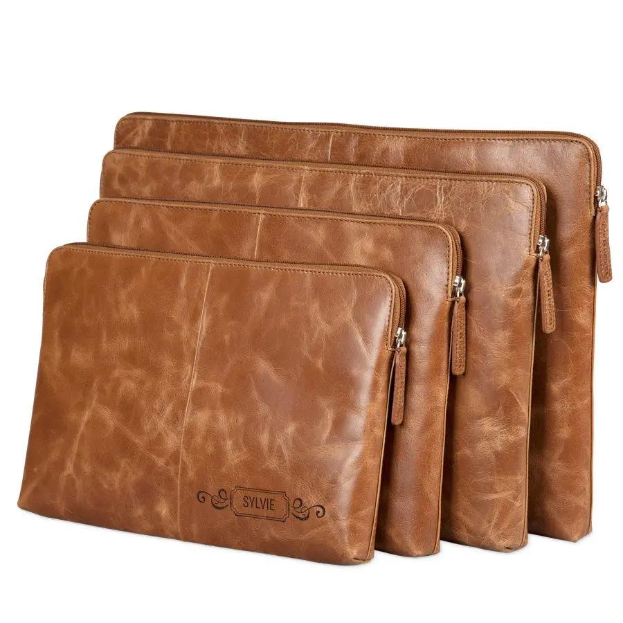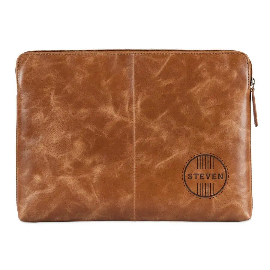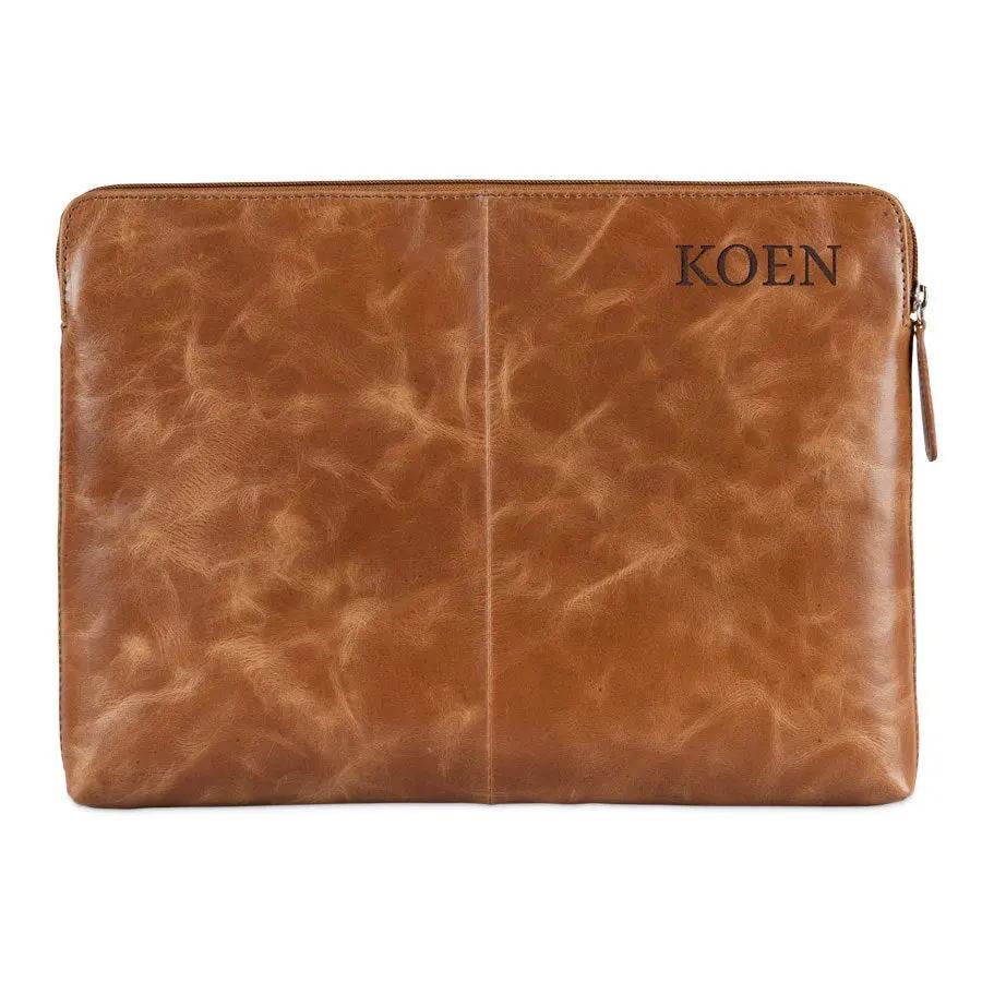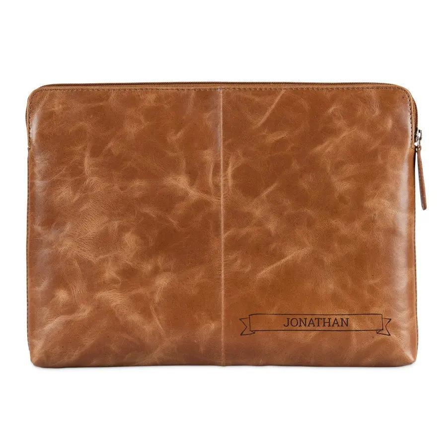 Más información sobre la funda para portátil de piel con nombre grabado:
