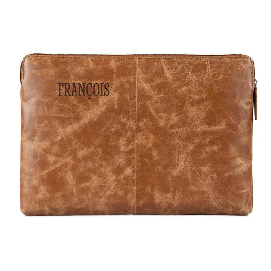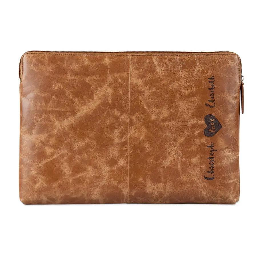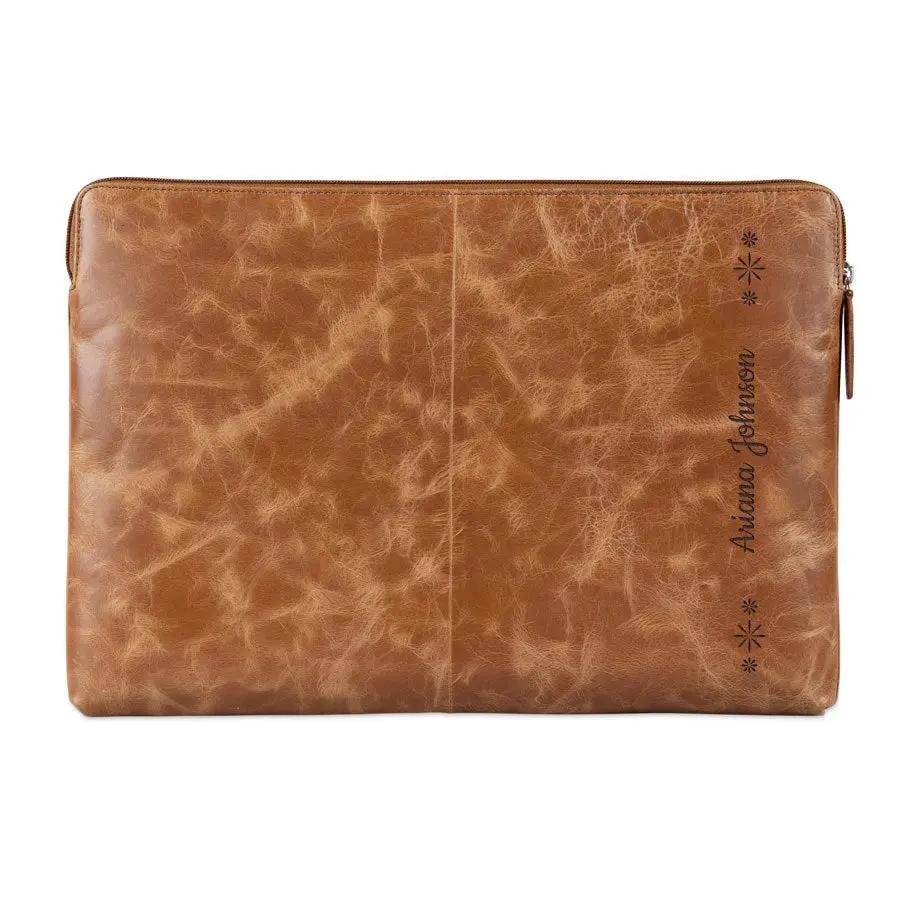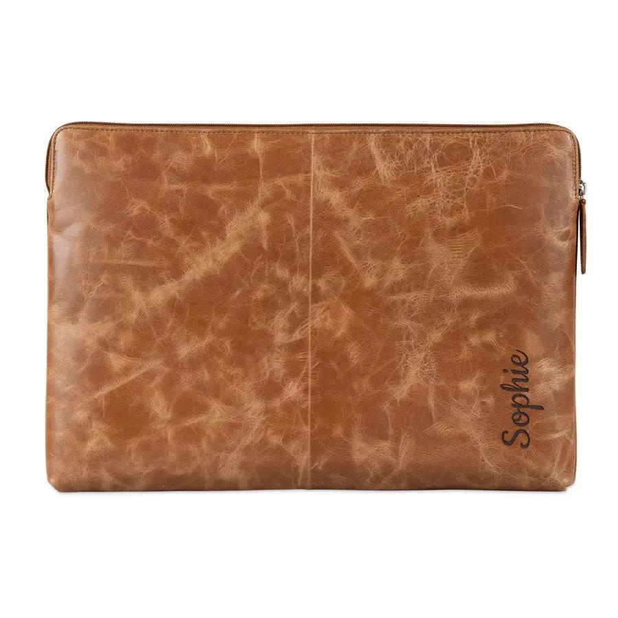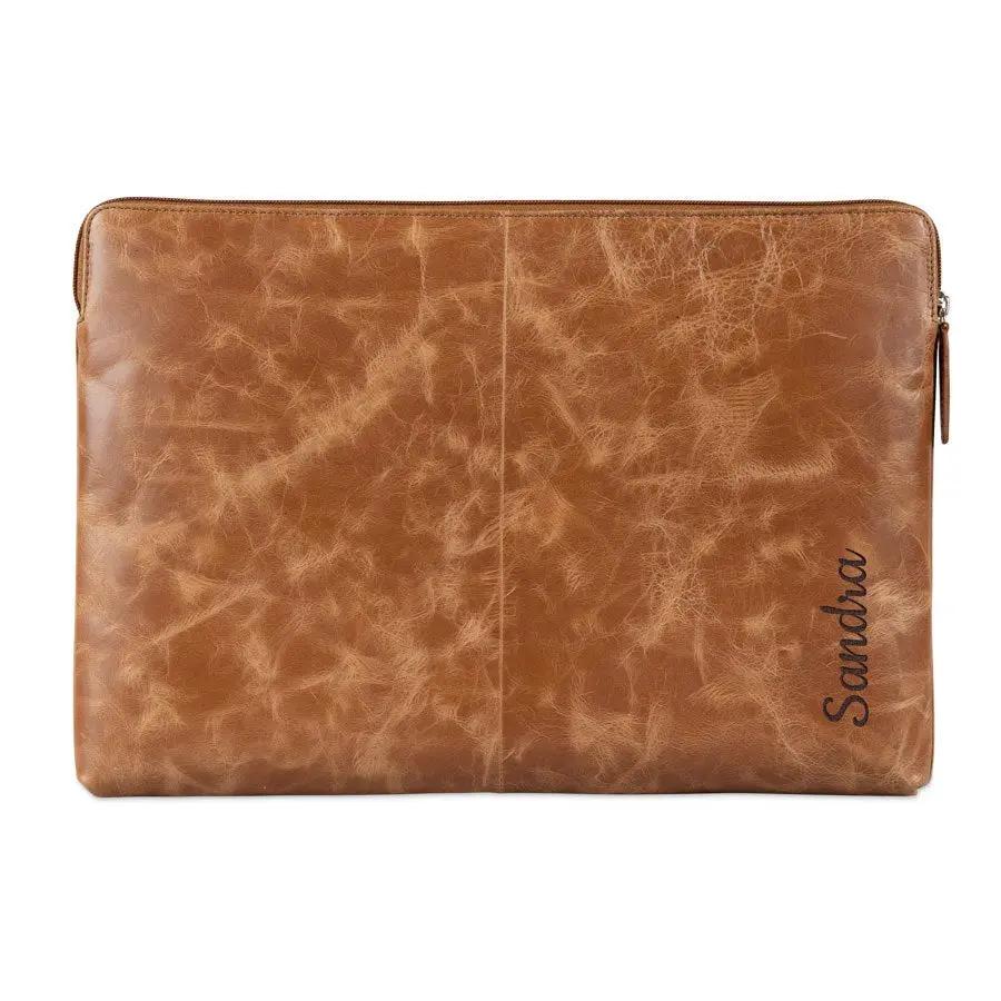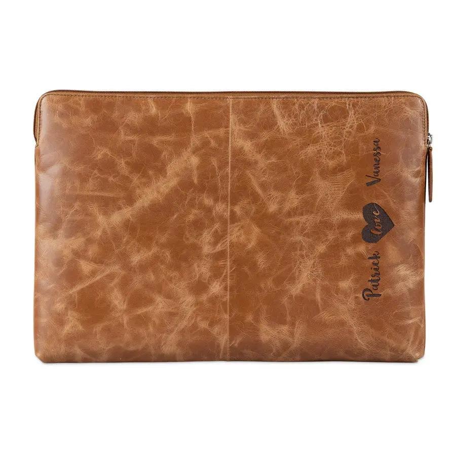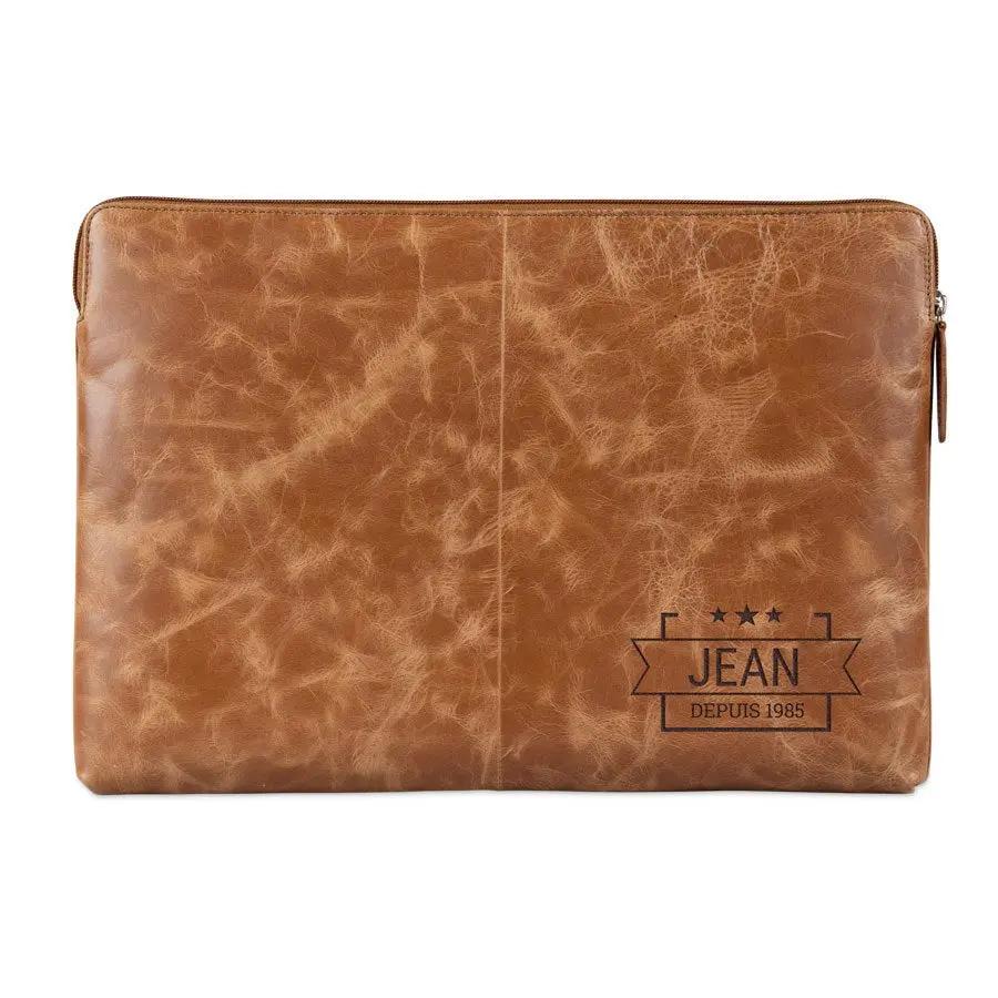 Más información sobre la funda para portátil de piel con nombre grabado: