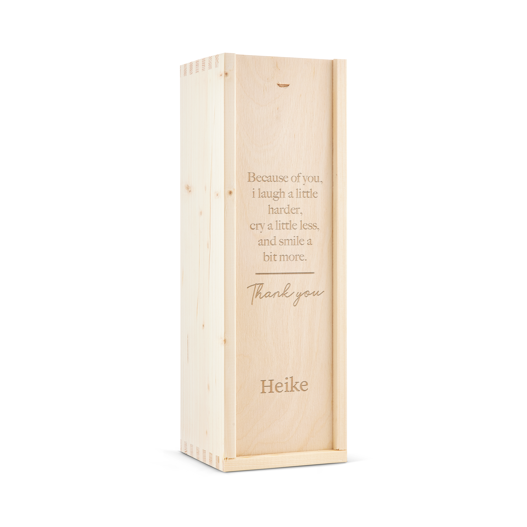 Más información sobre el estuche de madera:Personalización: con nombre y/o textoUbicación de la personalización: en la tapaGrabado: grabado láser de alta calidadDimensiones del estuche: 42,2 x 13,6 x 13,6 cmDimensiones de la tapa: 41,7 x 12,3 x 0,4 cmEl estuche de madera está hecho con madera certificada por el FSC.Más información sobre el licor:Nombre: AperolContenido: 700 ml.País: ItaliaPorcentaje de alcohol: 11%Carácter: Amargo con un toque de naranja.