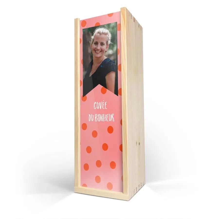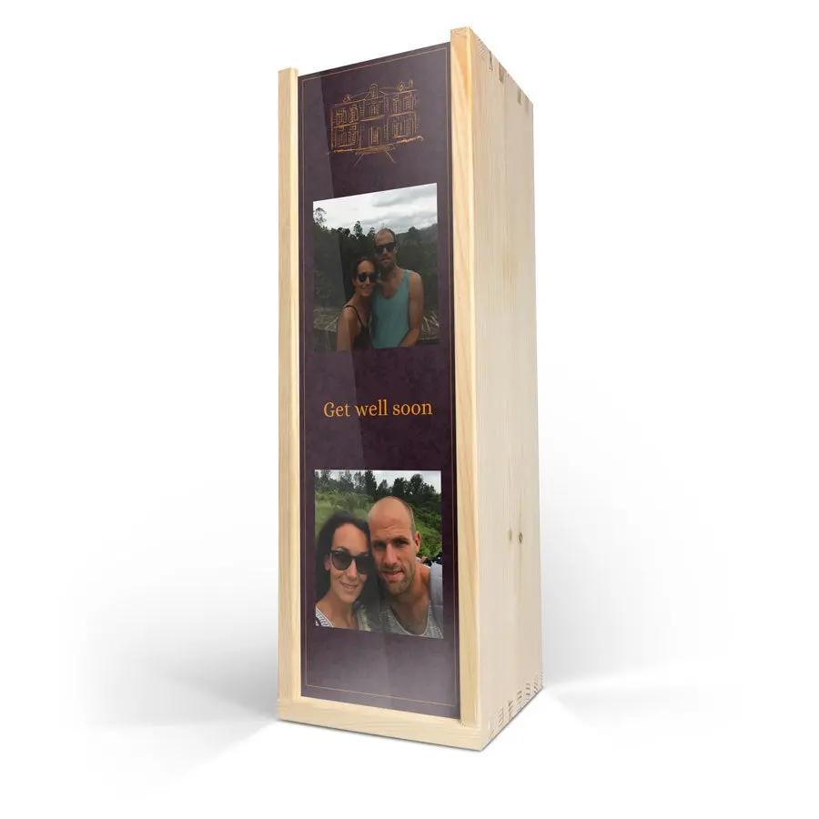 Esta caja de vino promete una presentación única y conmovedora, complementada por tus toques personales. Es ideal para los amantes del vino que desean celebrar momentos especiales con un regalo memorable y personalizado.