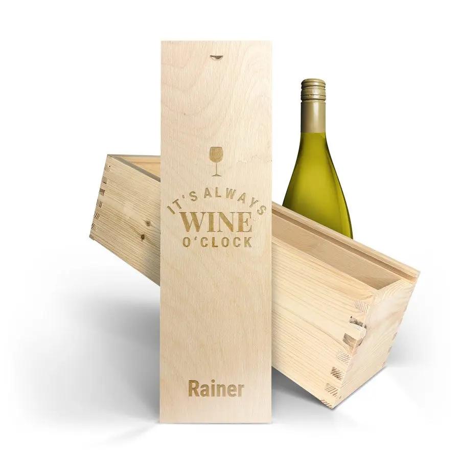 Más información sobre el lujoso estuche de vino: Personalización: con nombre o texto Ubicación de la personalización: en la tapa de la caja de madera Grabado: grabado láser de alta calidad Dimensiones de la caja: 36.5 x 12 x 11 cm Dimensiones de la tapa: 35.6 x 10.2 x 0.3 cm La madera está certificada FSC Más información sobre el vino: Marca: Salentein Chardonnay Tipo: blanco, lleno y jugoso Contenido: 750 ml País de origen: Argentina Uva: Chardonnay Carácter: Salentein Chardonnay tiene aromas de cítricos, miel y frutas tropicales. Combina bien con aves, ternera y cerdo.