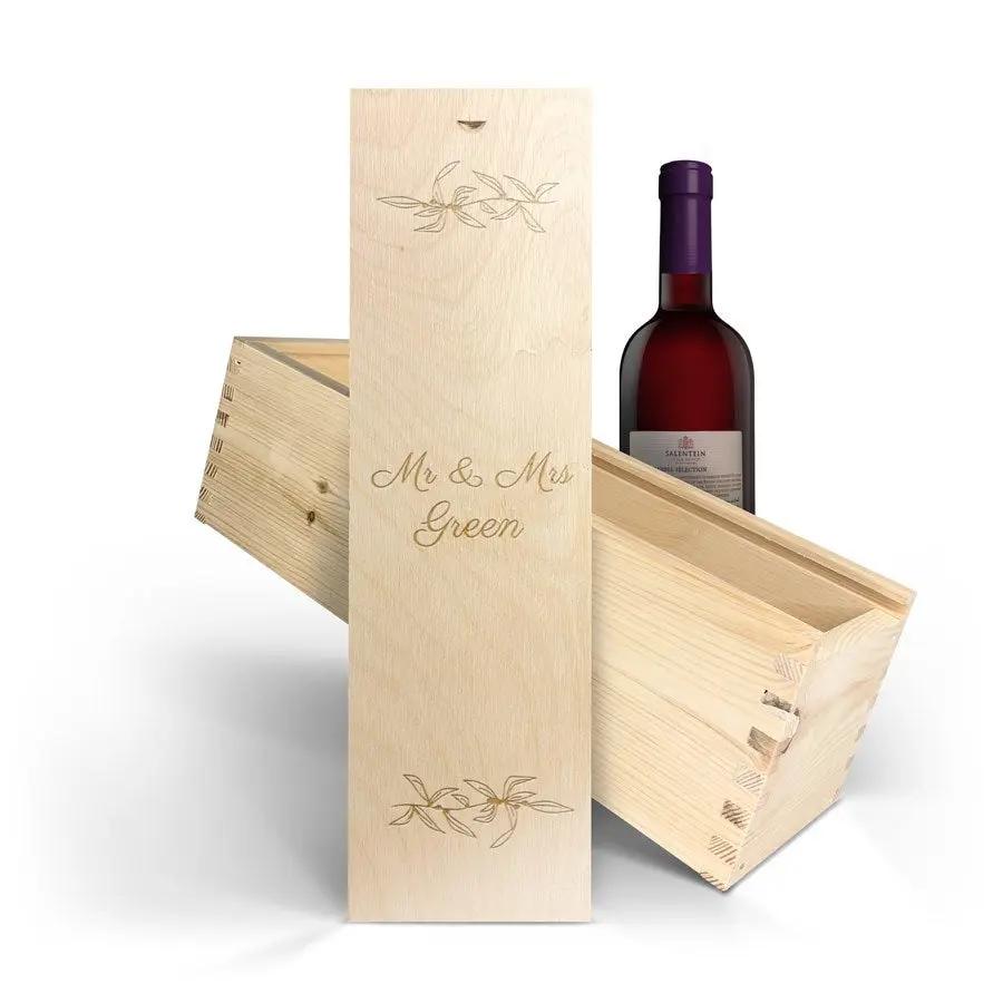 Una deliciosa botella de vino Salentein, verdaderamente personal en una lujosa caja grabada con tu nombre o texto favorito. Grabado con precisión.