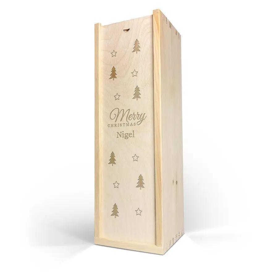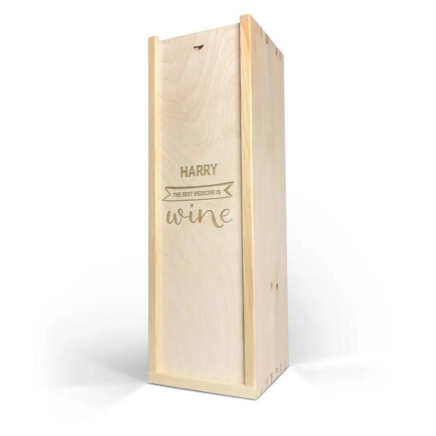 Más información sobre la lujosa caja de vino: Personalización: con nombre o texto Ubicación de la personalización: en la tapa de la caja de madera Grabado: grabado láser de alta calidad Dimensiones de la caja: 36.5 x 12 x 11 cm Dimensiones de la tapa: 35.6 x 10.2 x 0.3 cm La madera está certificada por el FSC Más información sobre el vino: Marca: Salentein Pinot Noir Tipo: tinto, potente y robusto Contenido: 750 ml País de origen: Argentina Uva: Pinot Noir Características: Salentein Pinot Noir es un vino suave con especias, canela y vainilla. Combina bien con aves y pastas cremosas.