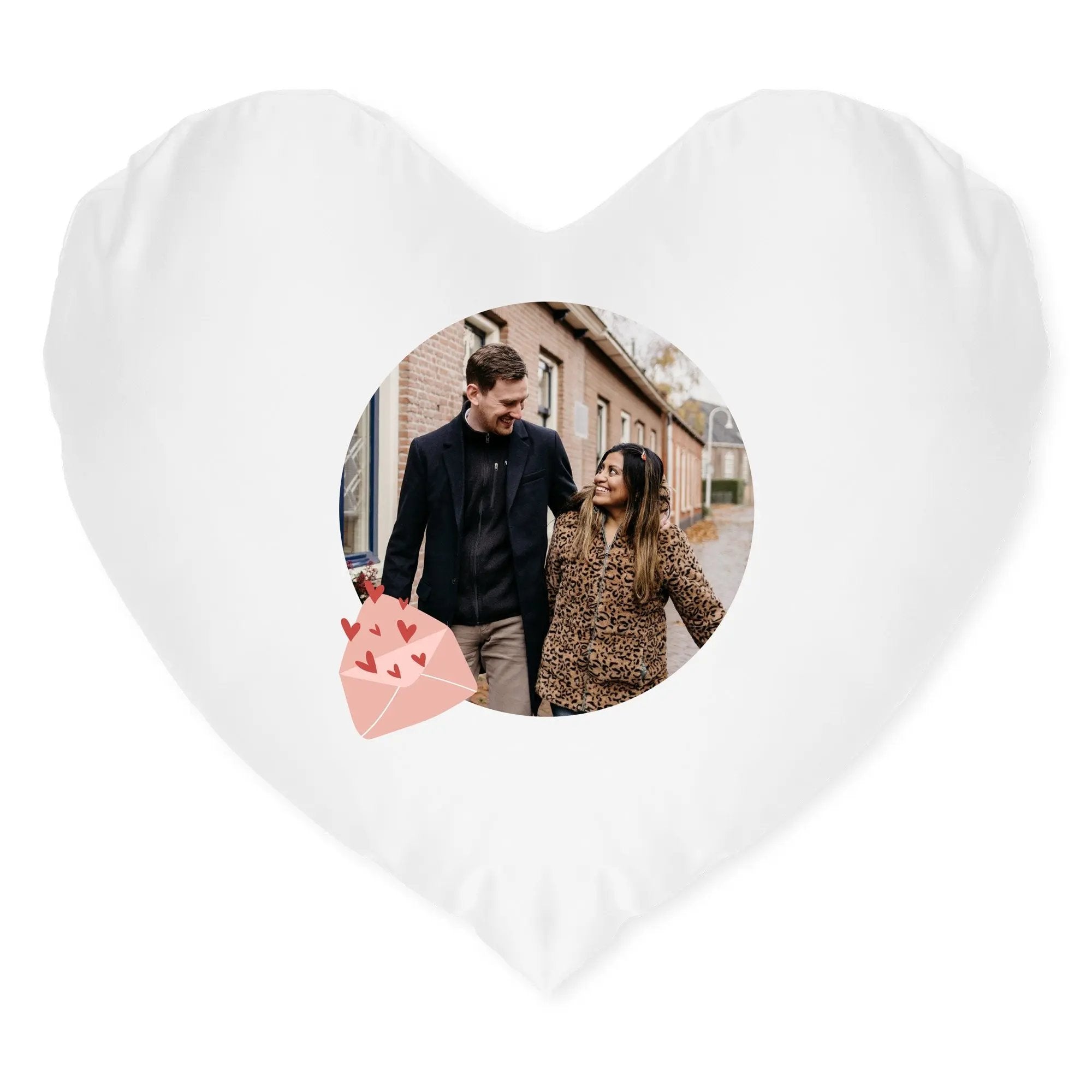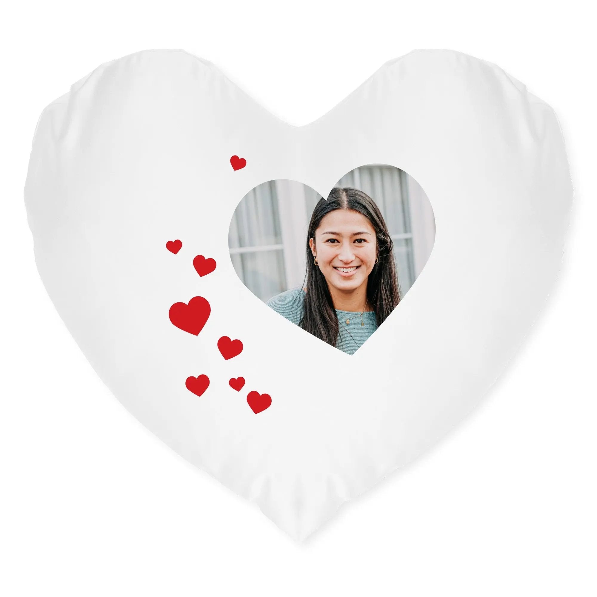 ¡Un hermoso cojín en forma de corazón con tu mejor foto y texto!