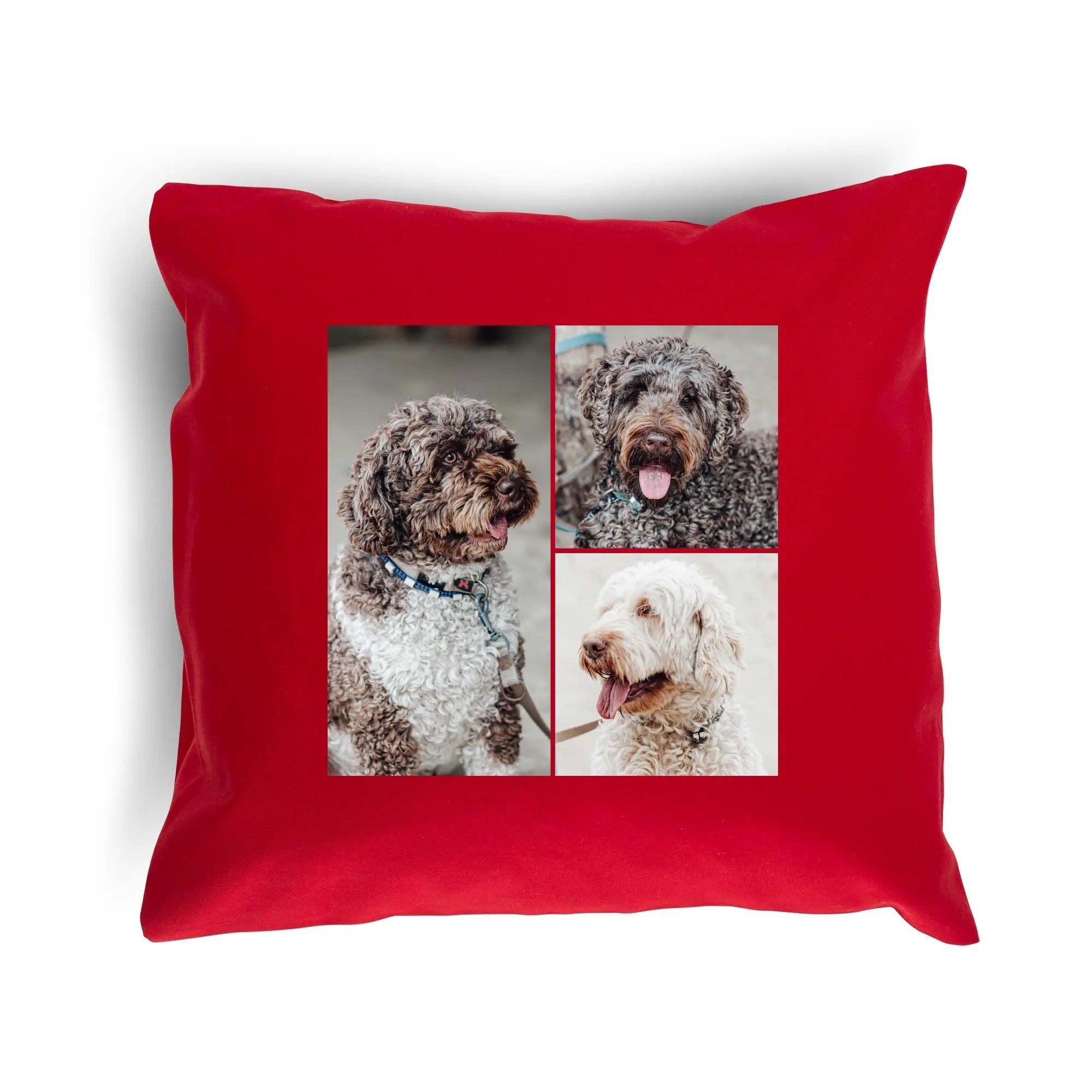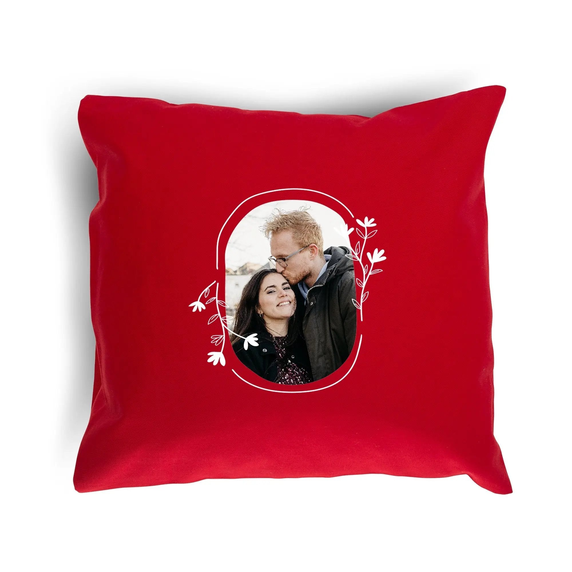 Una almohada con tu foto favorita. Disponible en una selección de diferentes colores y diseños.