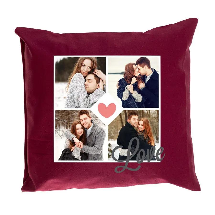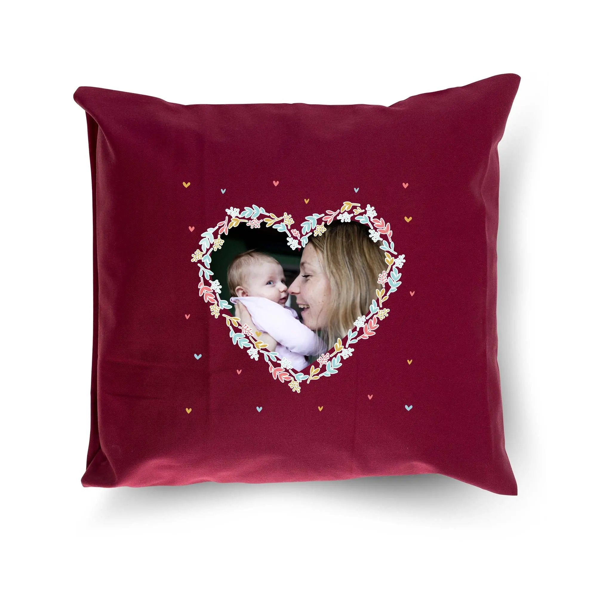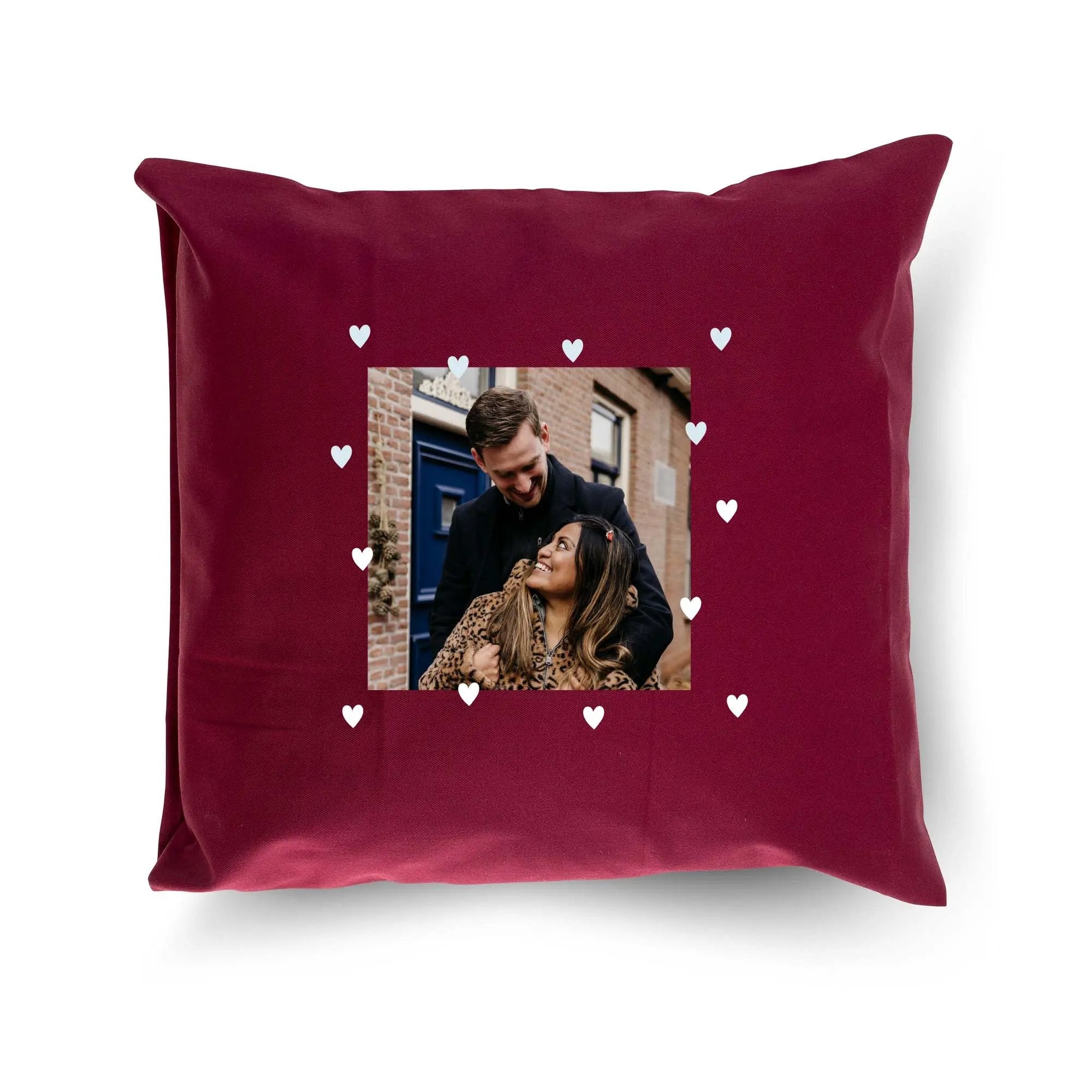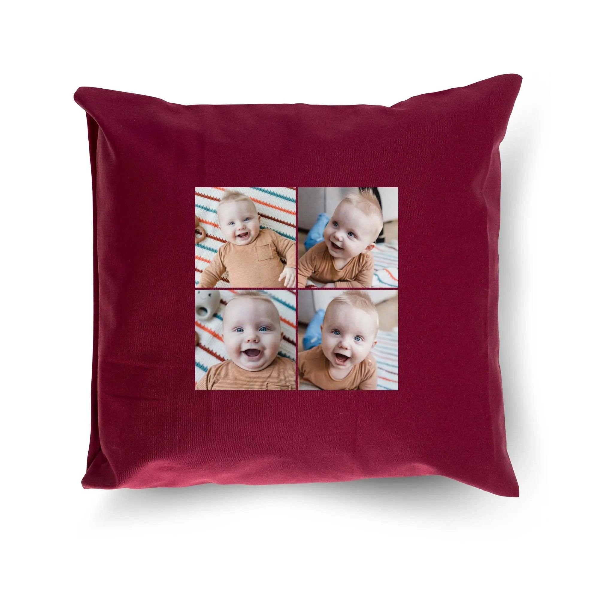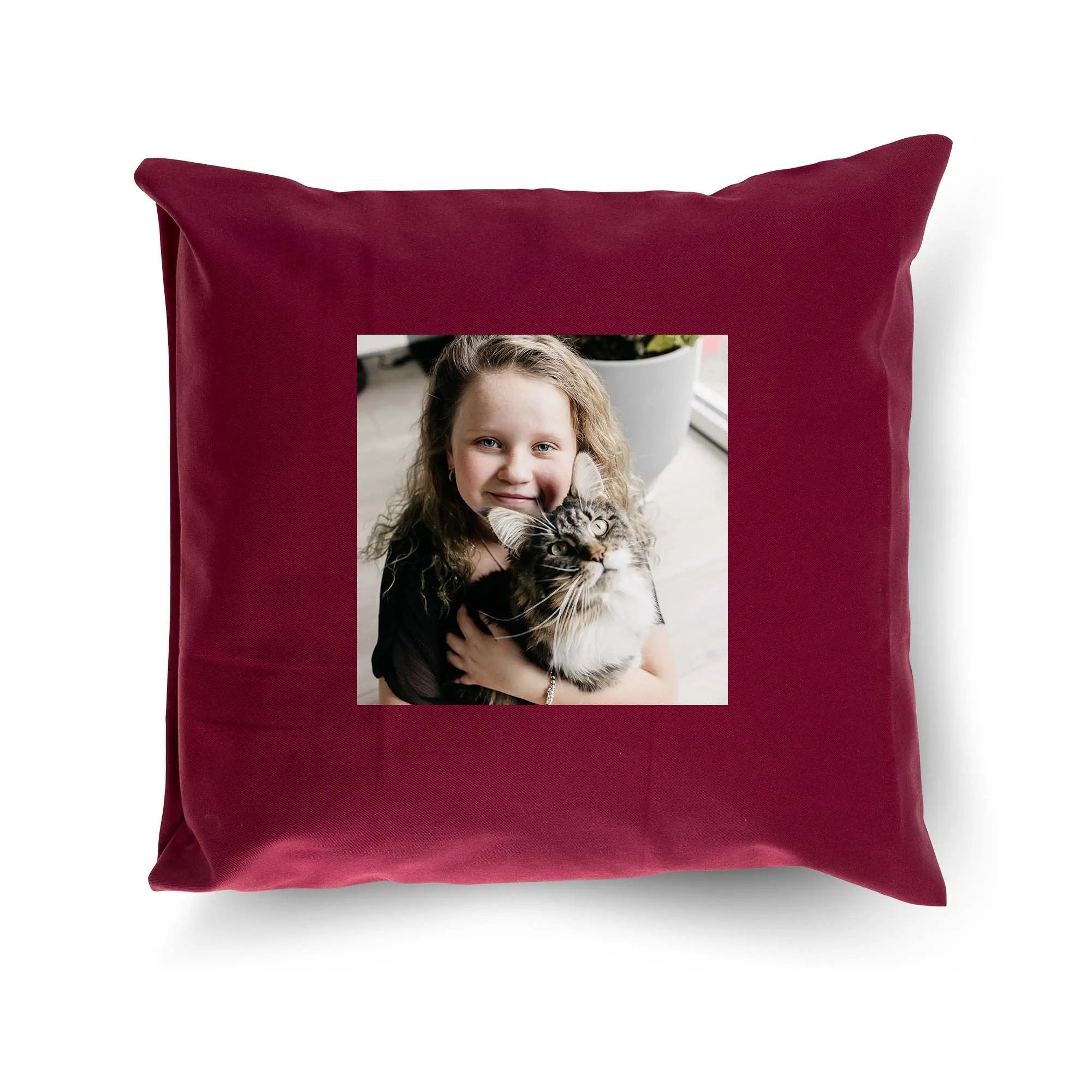 Un cojín impreso con tu foto favorita. Disponible en una selección de diferentes colores y diseños.
