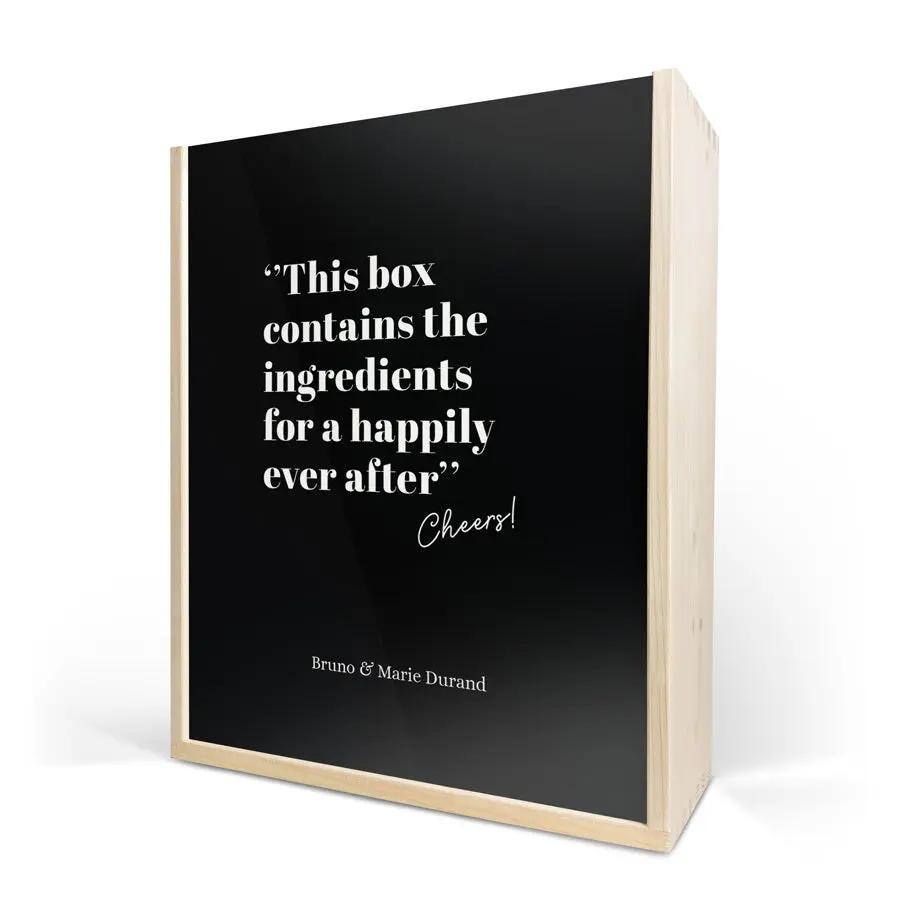 El Estuche: Conserva el estuche de madera personalizado como un recuerdo especial de la ocasión.