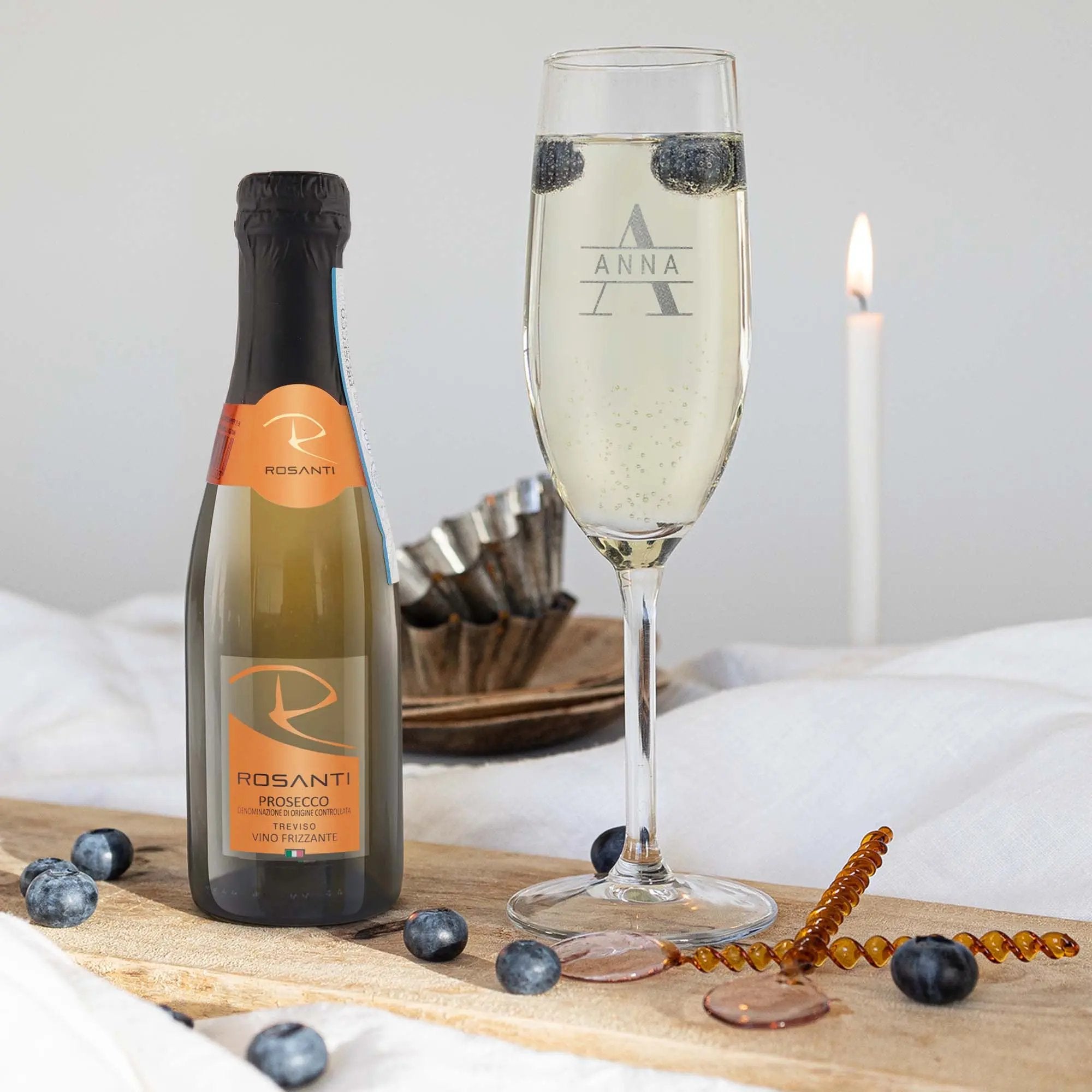 Conjunto de regalo de mini prosecco con copa grabada - Rosanti - Vino Frizzante