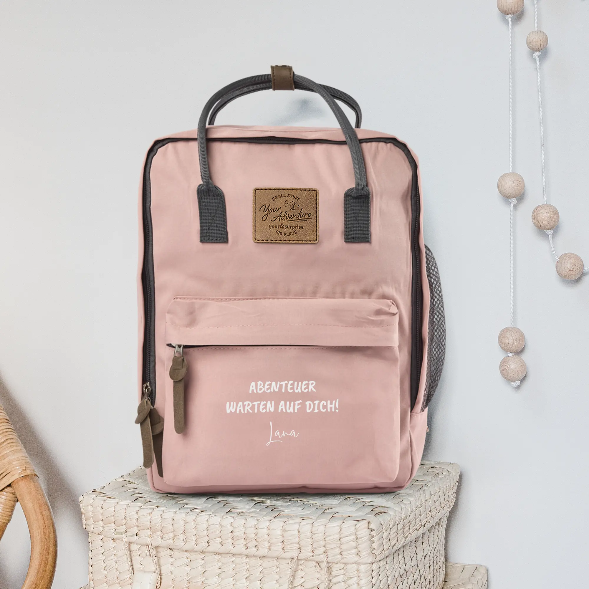 Una mochila infantil super cool personalizada, impresa con nombre o texto. Con dos compartimentos prácticos y cremalleras. Tiras ajustables, en dos colores!