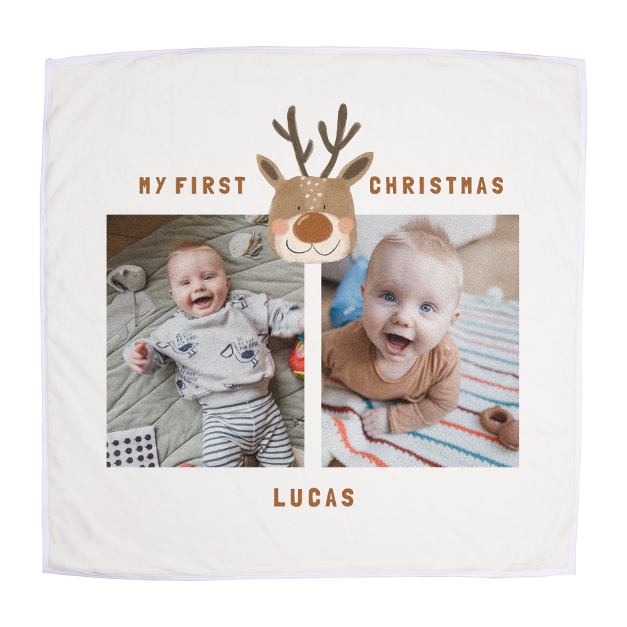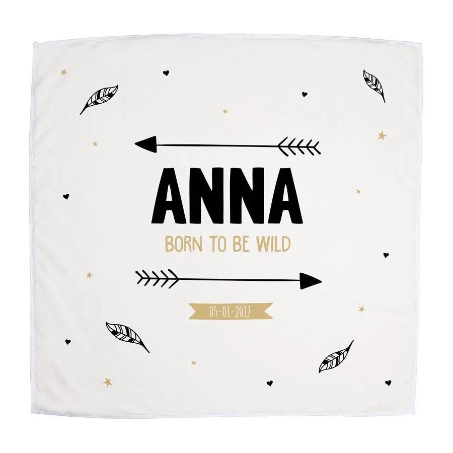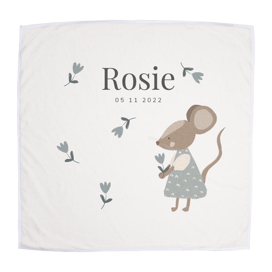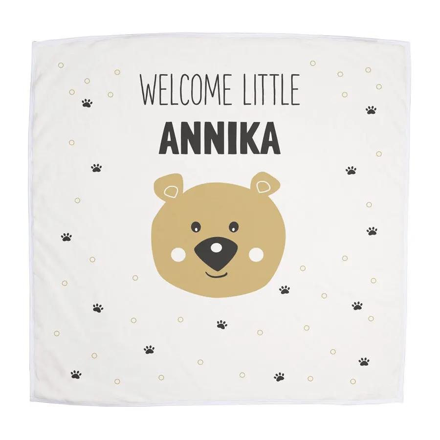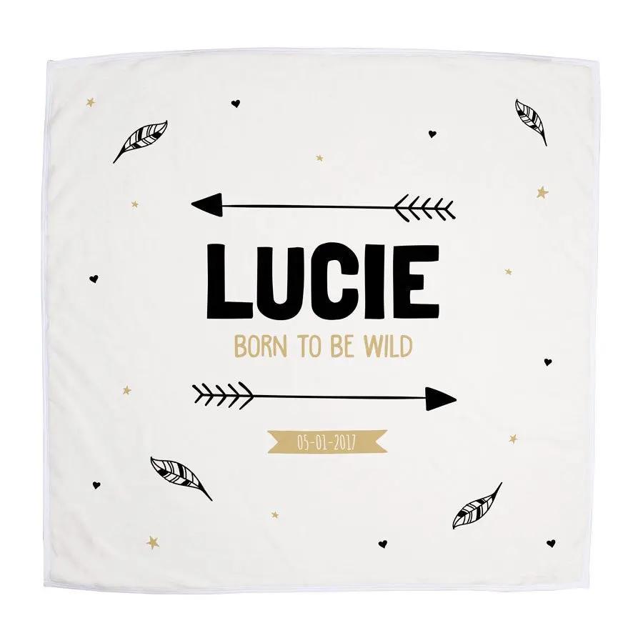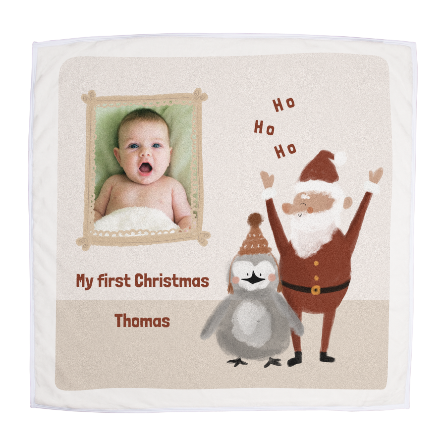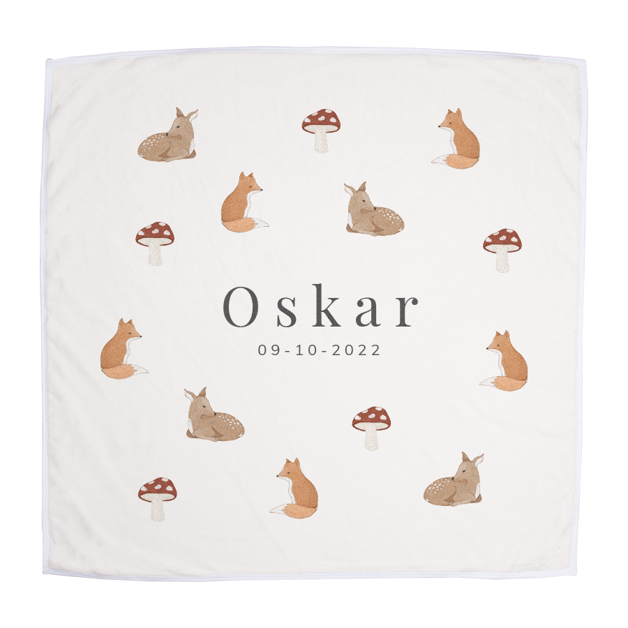 Una manta de poliéster suave y decorada con motivos animales. ¡Perfecta para un bebé feliz! Personalízala con el nombre y la imagen que tú quieras.