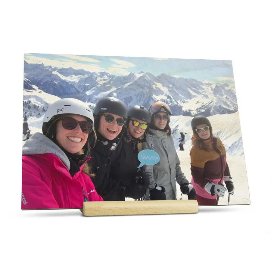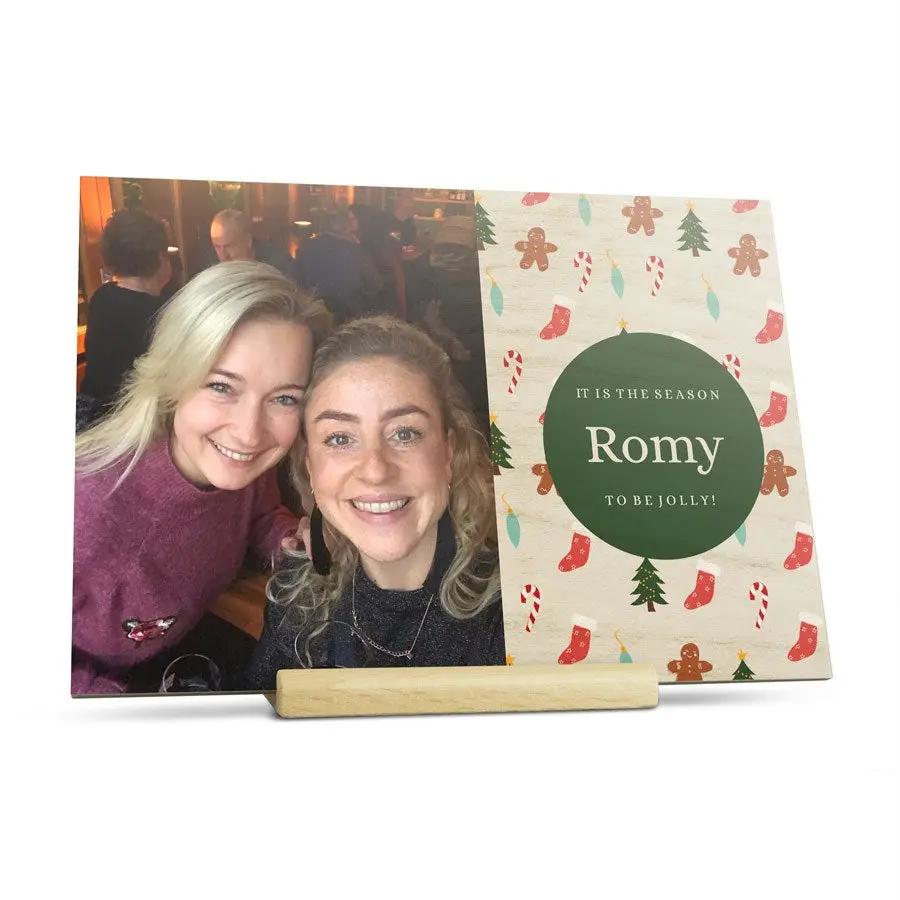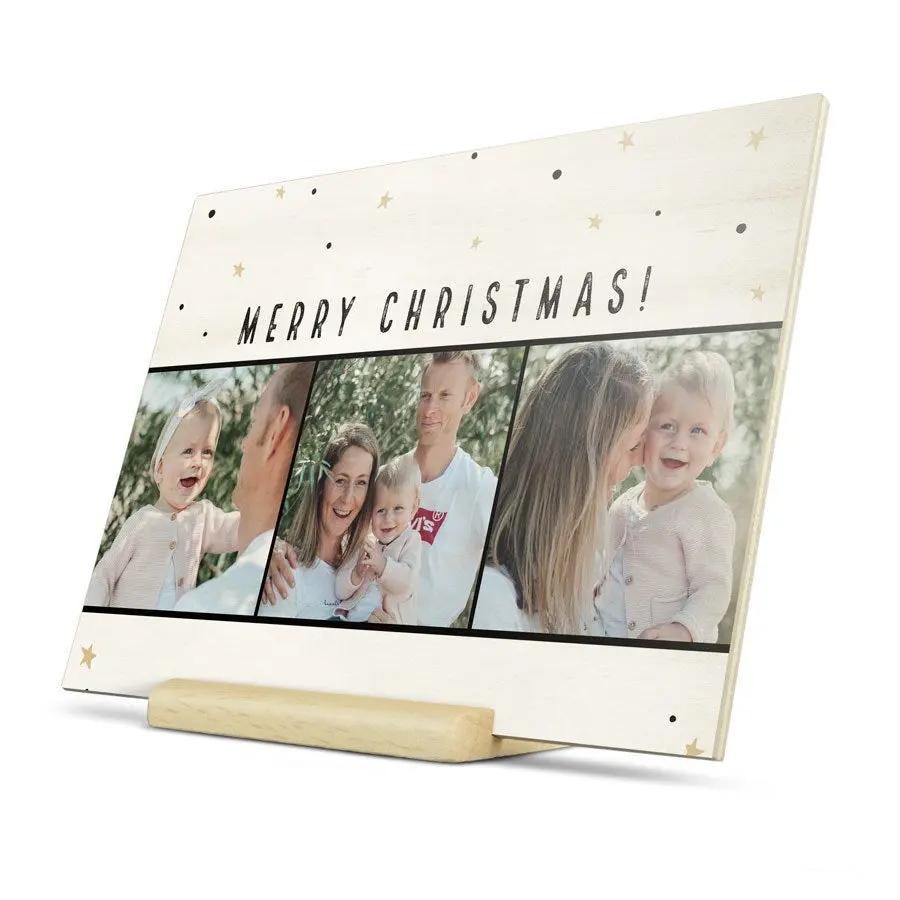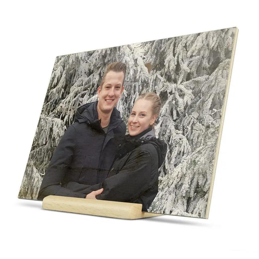 Una tarjeta de madera para plasmar un mensaje de felicitación. Impresión con diseño propio, foto o texto.