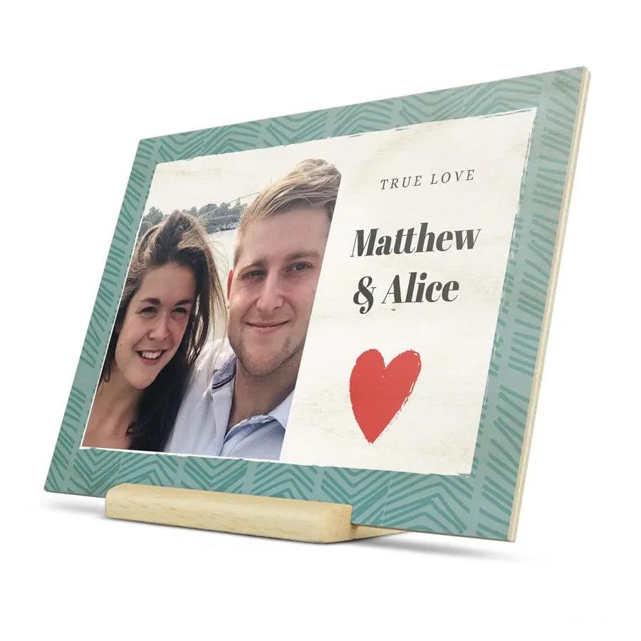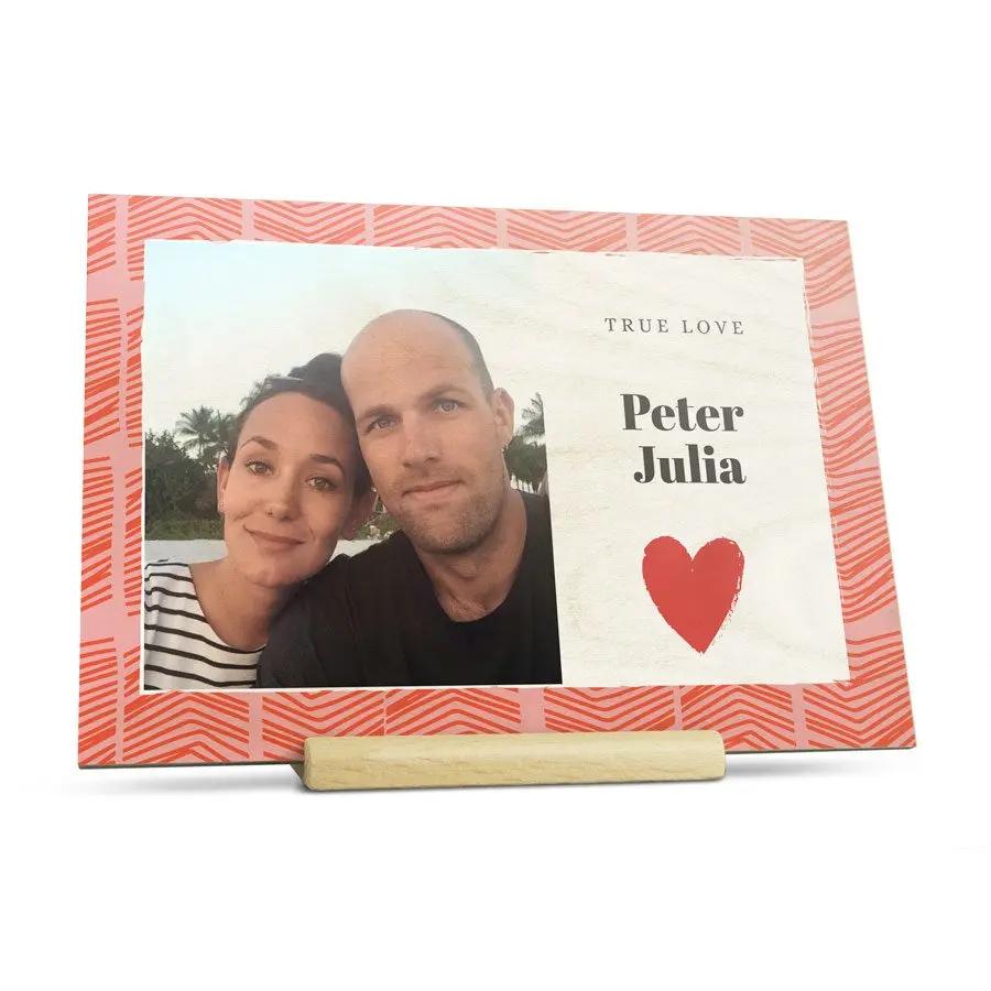 MMás información sobre la tarjeta de madera: Material: madera con acabado de lujo Medidas: 16,7 x 12 cm Impresión: nítida y a todo color Personalización: con nombre, foto y/o texto Extra: incluye soporte Información importante: La madera es un producto natural, por lo tanto la impresión puede tener relieves propios de la madera.