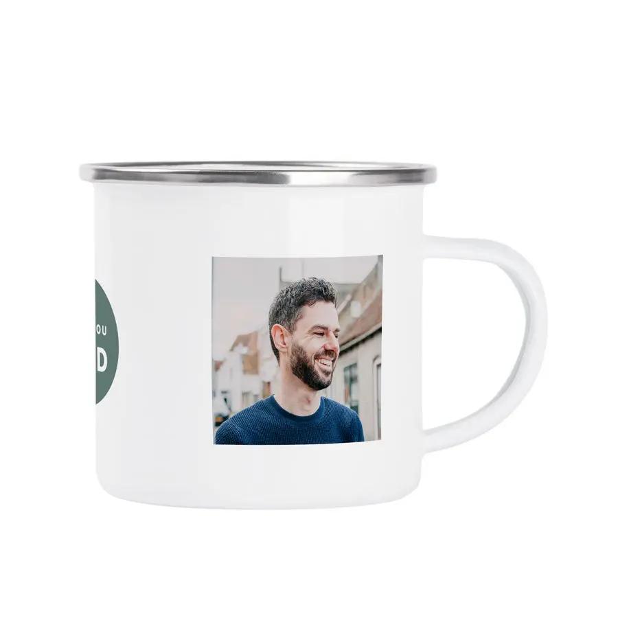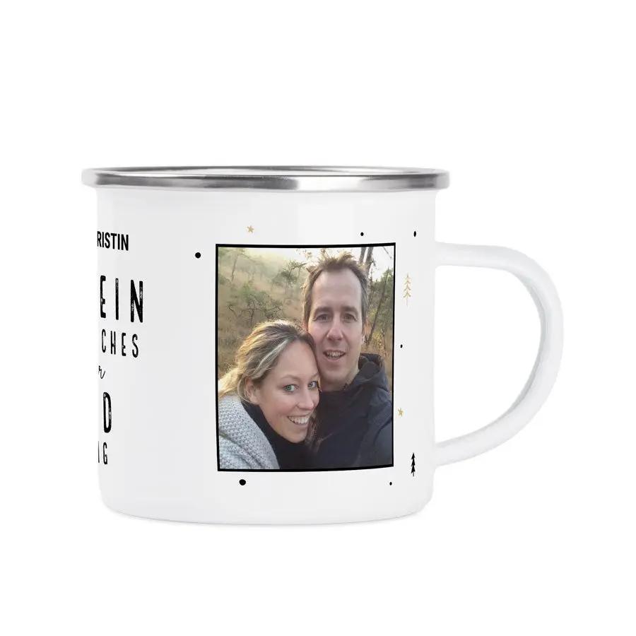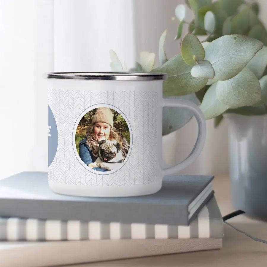 Esta taza de esmalte super bonita es la sorpresa definitiva para tu San Valentín. Personalizarla con nombre, foto y/o texto, es super fácil.