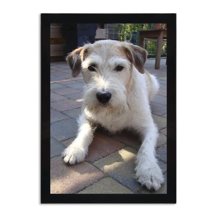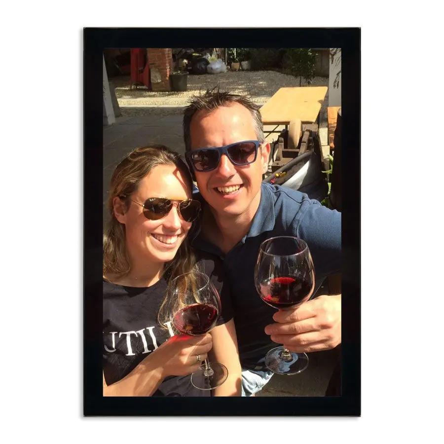 Más información sobre los marcos de fotos de vidrio con una foto: Material: vidrio premium con marco negroDimensiones: 21 x 30 cm Grosor: 7 mm Impresión: impresión fotográfica a todo color perfectaSistema de montaje: bloque de montaje sintético intercambiable Extra: puedes limpiar fácilmente tu marco de fotos con un paño seco y limpiador de vidrio