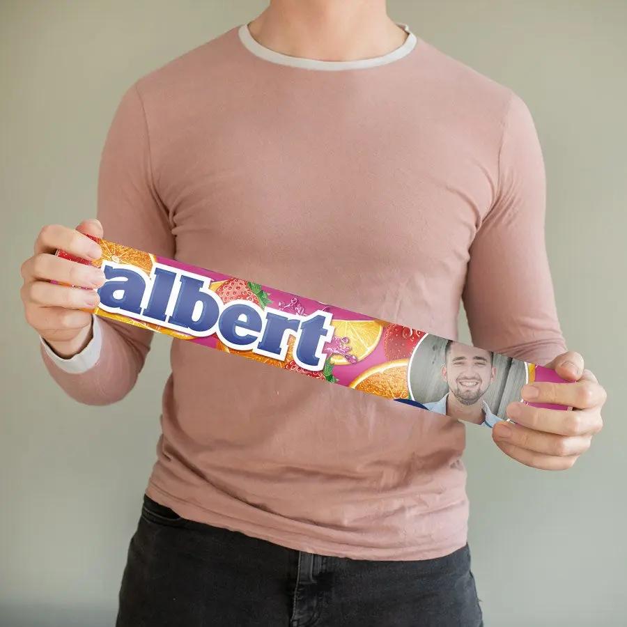Tu propio rollo de Mentos XXL personalizado. Con 21 rollos de Mentos Frutales ¡Personalizado con foto, nombre y / o texto de tu elección!