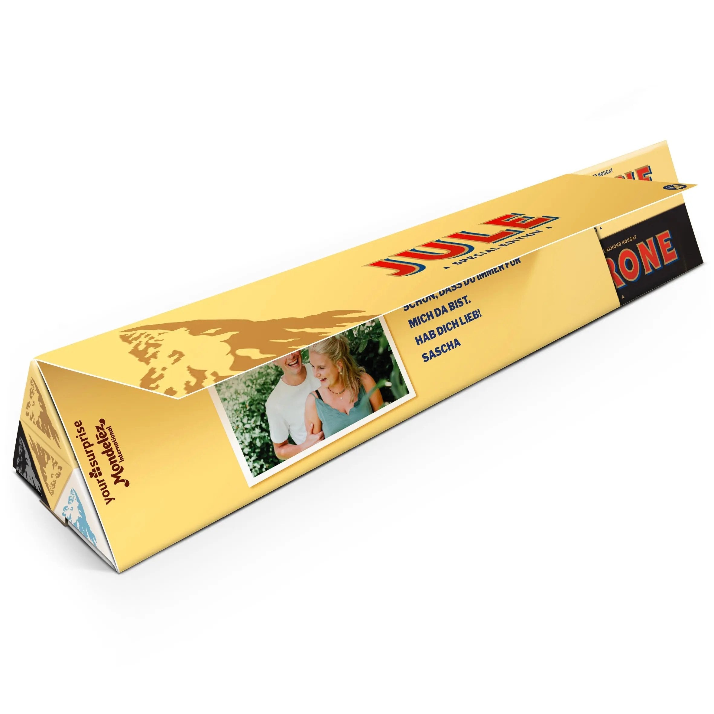 Esta barra de Selección Toblerone incluye 8 barras de chocolate Toblerone en 3 sabores diferentes. ¡Verdaderamente personal, con tu foto, nombre y mensaje personal a elección!