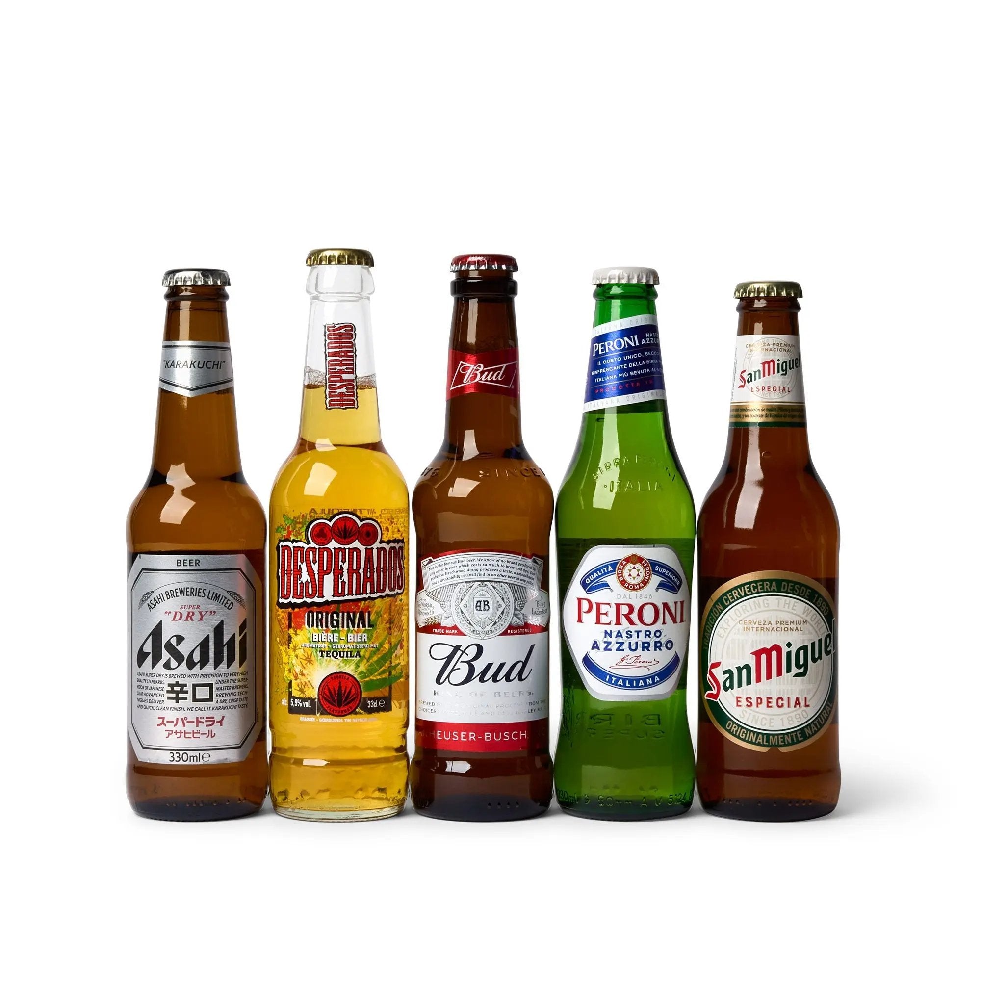 Explora el mundo de la cerveza con nuestra Selección Internacional de Cervezas con tu propia foto y texto. Esta exclusiva colección presenta cinco marcas renombradas, cada una ofreciendo un perfil de sabor único que refleja su país de origen. Ideal tanto para conocedores de cerveza como para aquellos nuevos en los sabores internacionales, esta selección promete un emocionante viaje de degustación. Ya sea que estés organizando una fiesta, disfrutando de una noche relajante o buscando el regalo perfecto, estas cervezas seguro impresionarán. Cada botella es cuidadosamente elegida para proporcionar una variedad equilibrada de sabores, desde el refrescante sabor de Asahi hasta las ricas notas de Budweiser. Con opciones que incluyen el toque picante de Desperados y el sabor suave de Peroni, hay algo para cada paladar. Además, la icónica San Miguel añade un toque de estilo español. Eleva tu experiencia de bebida y saborea la artesanía de estas cervezas globales. Consume responsablemente y asegúrate de cumplir con los requisitos de edad legal al comprar.
