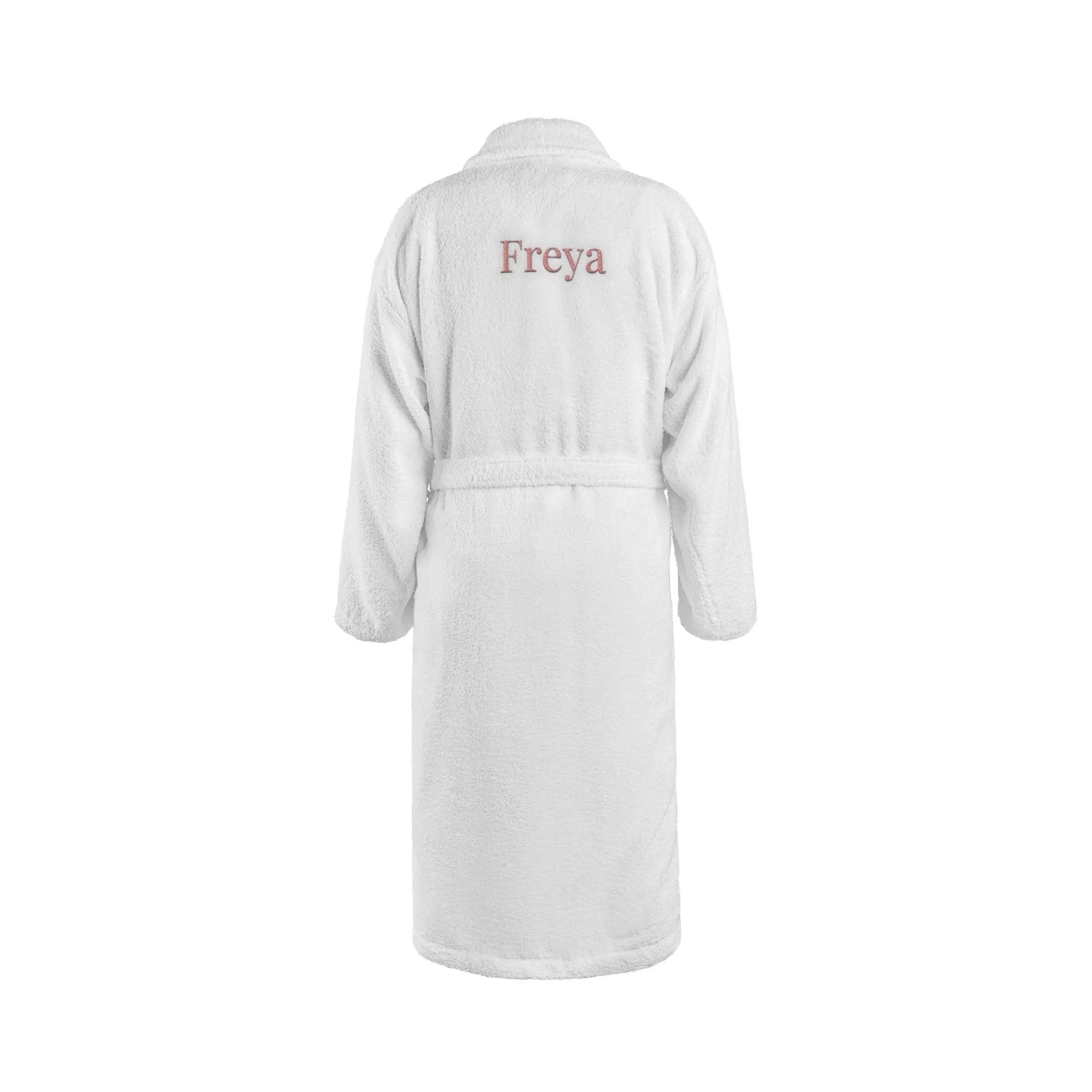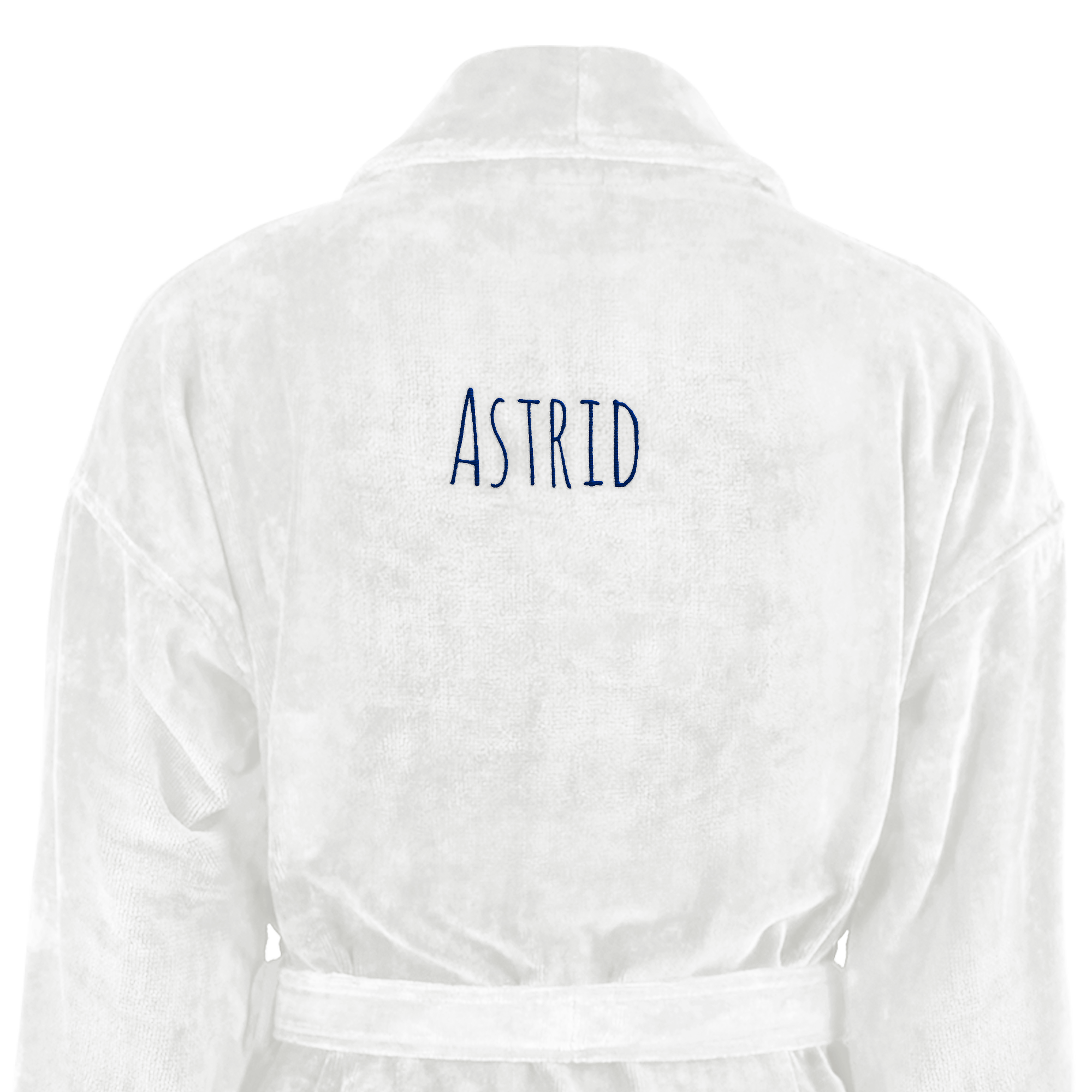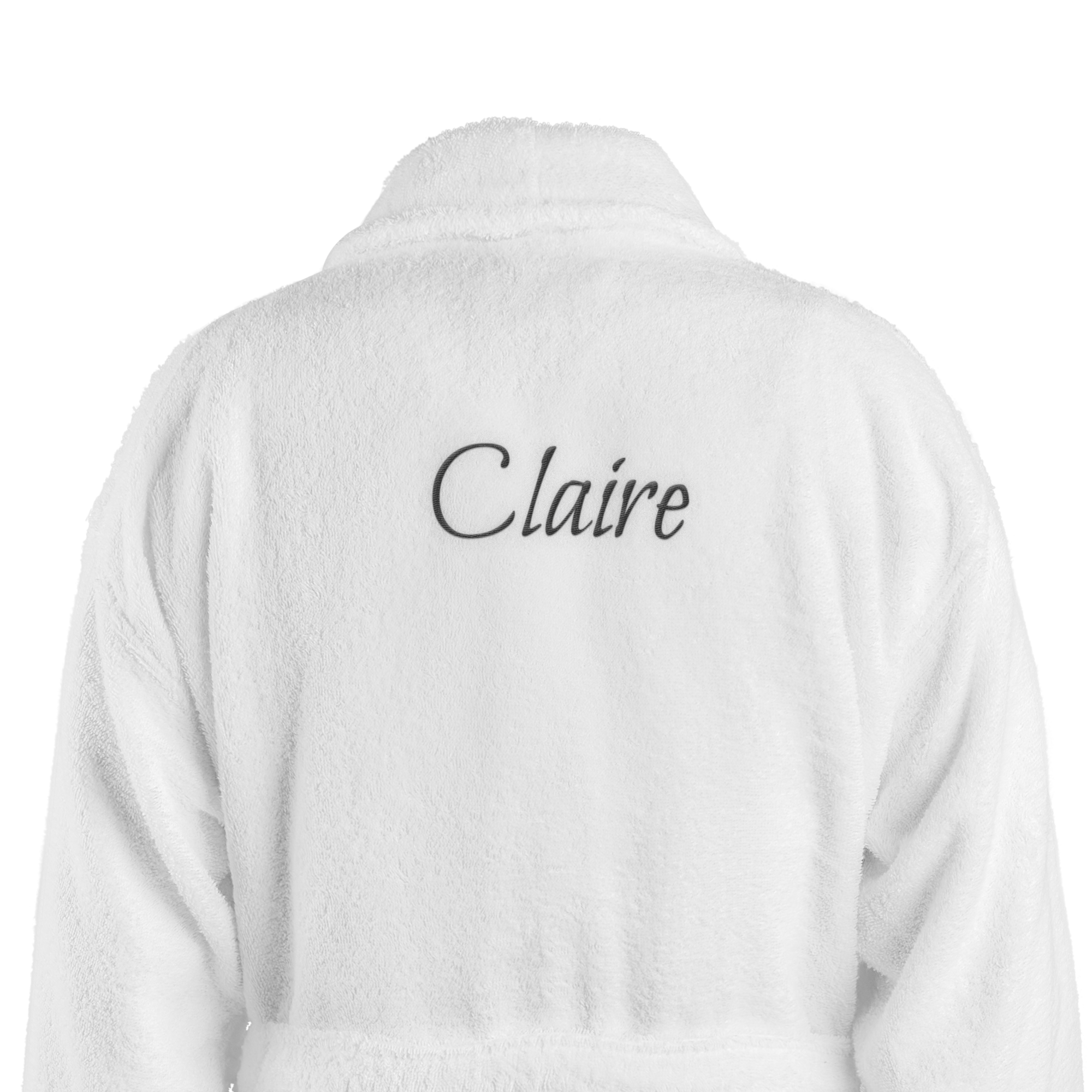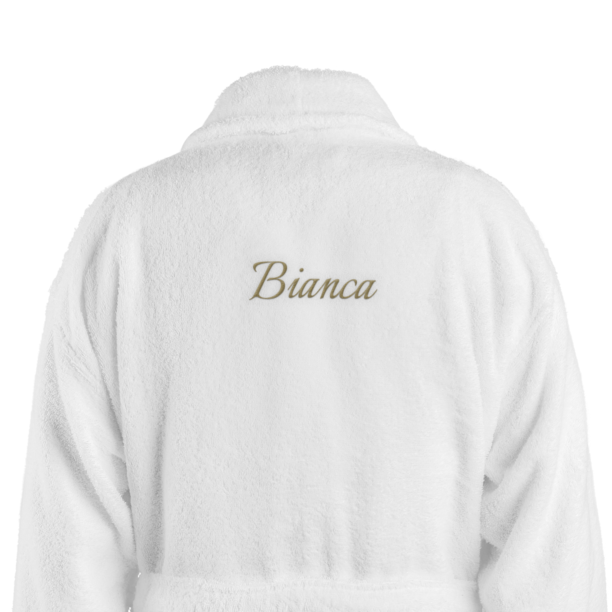 ¡Un albornoz original con su propio texto o nombre bordado! Una bata de baño clásica para mujer hecha de 100% algodón .