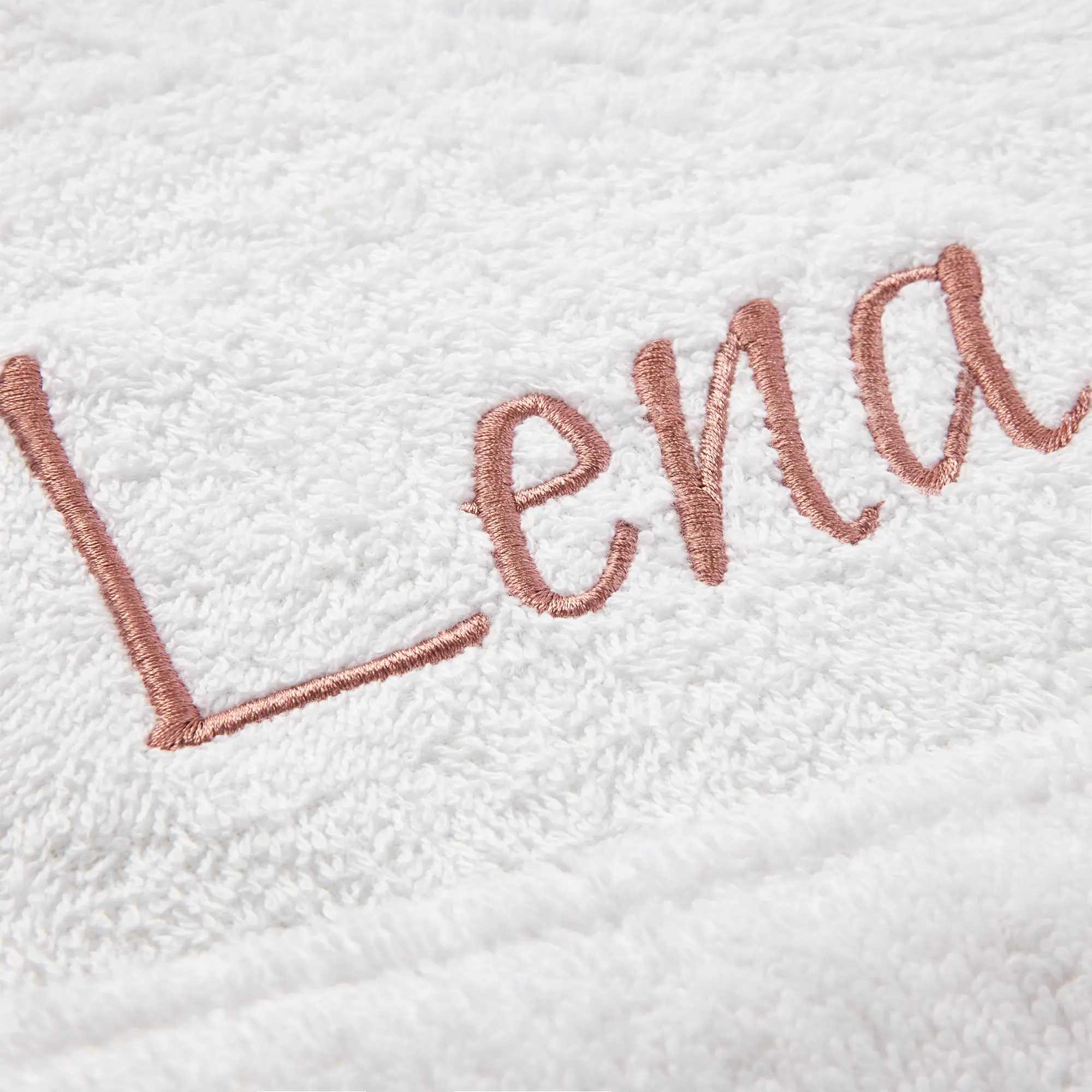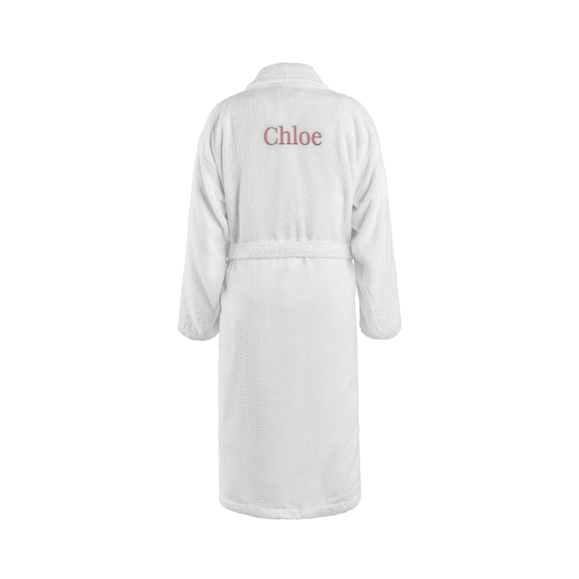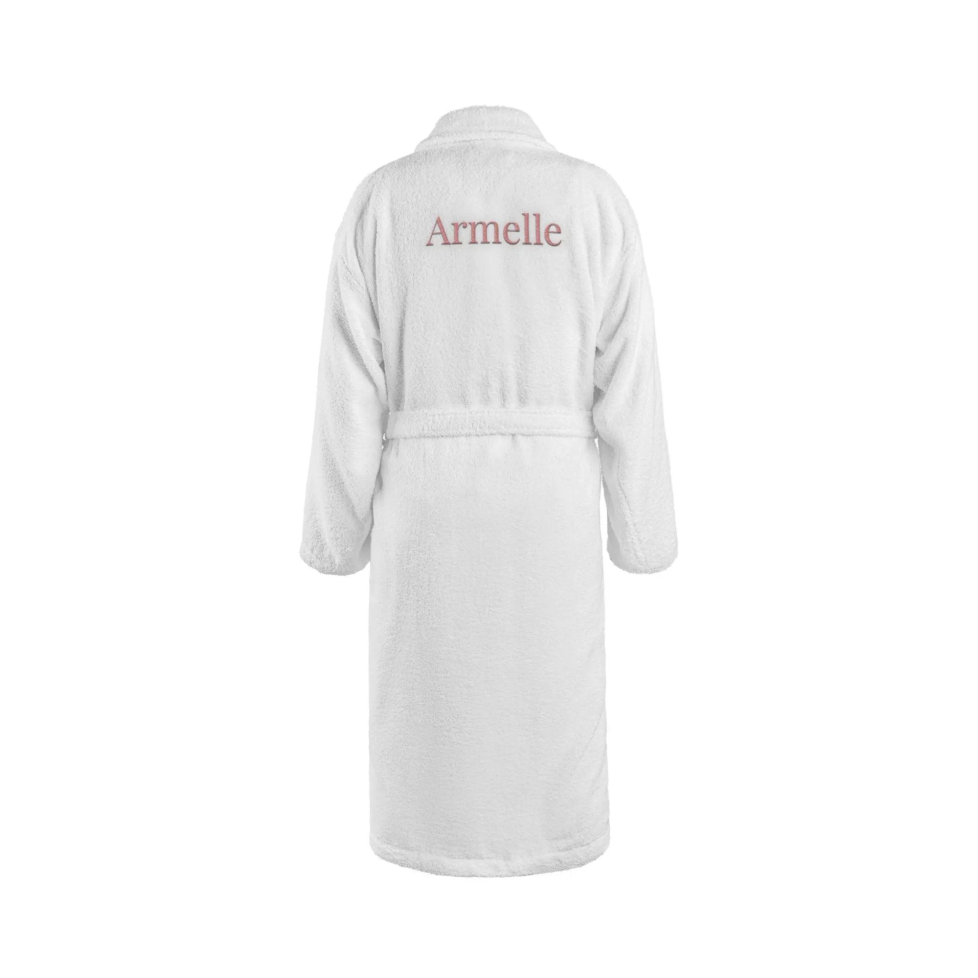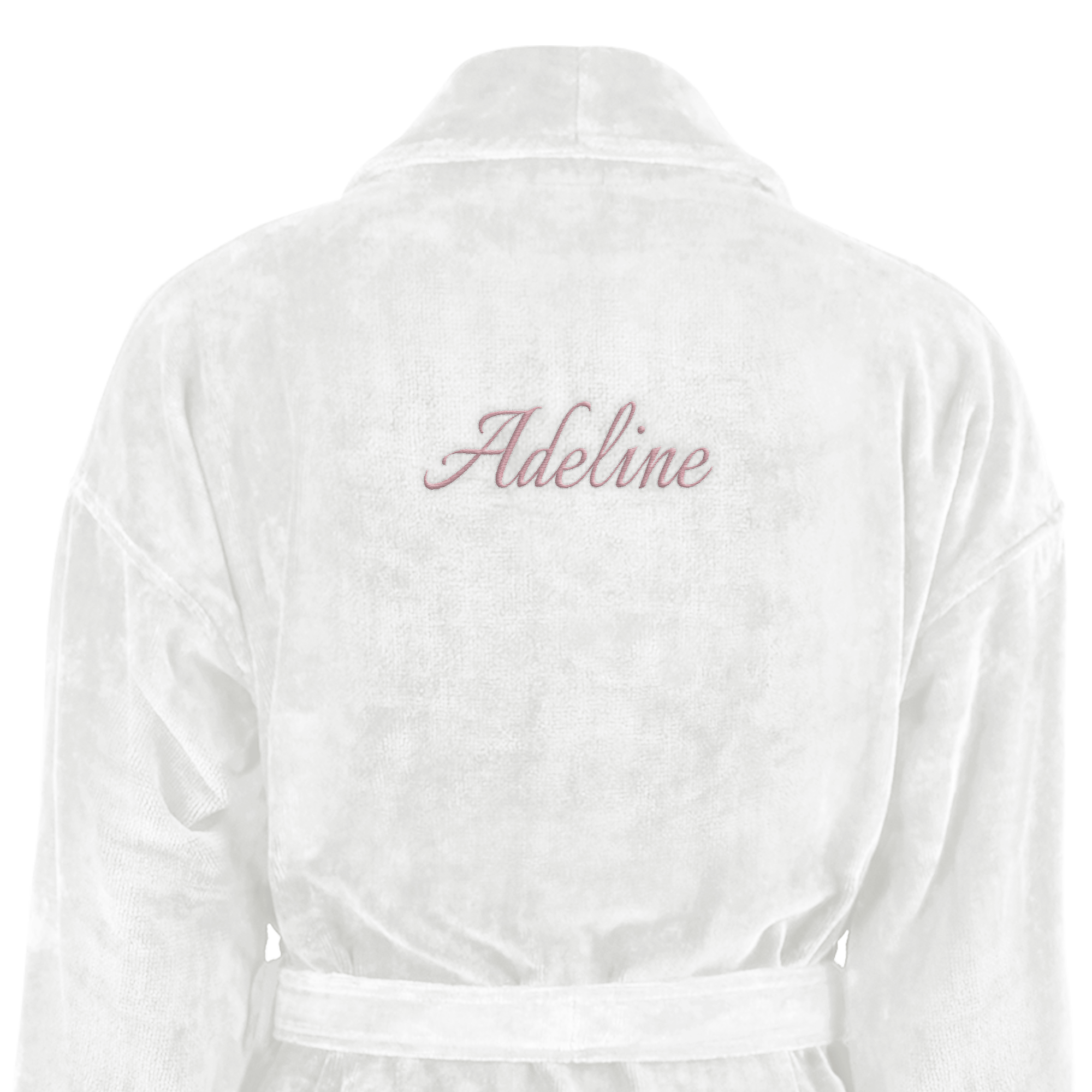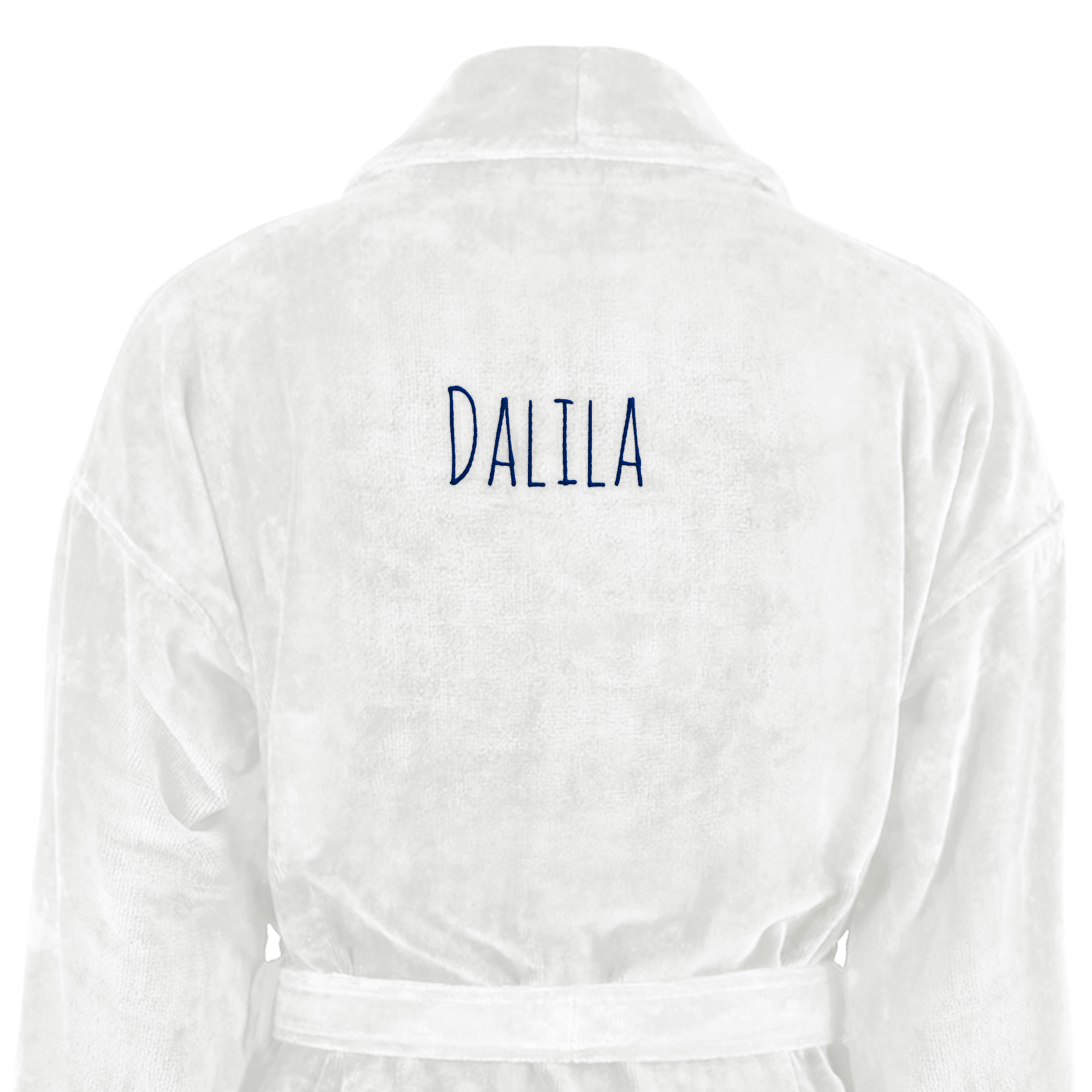 ¡Un albornoz original con su propio texto o nombre bordado! Una bata de baño clásica para mujer hecha de 100% algodón .