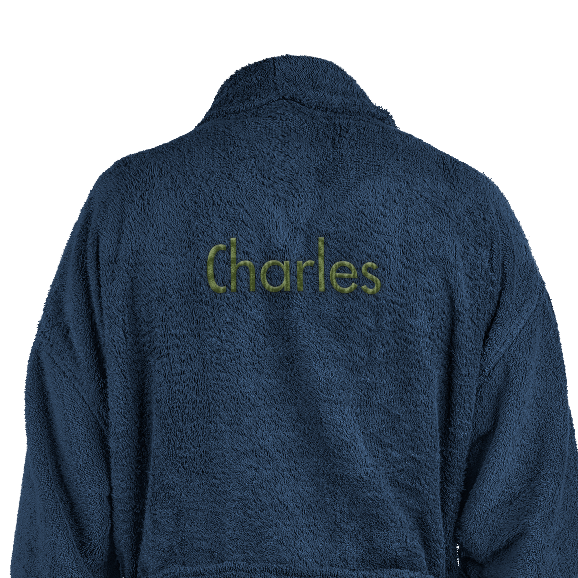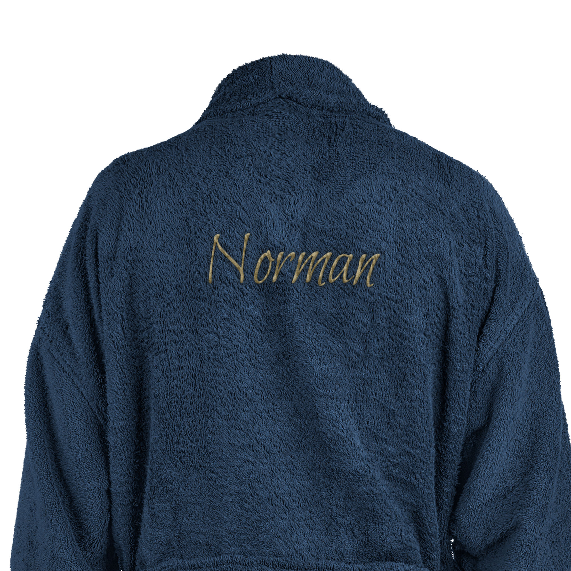 ¡Un albornoz original con su propio texto o nombre bordado! Una bata de baño clásica para hombre hecha de 100% algodón .