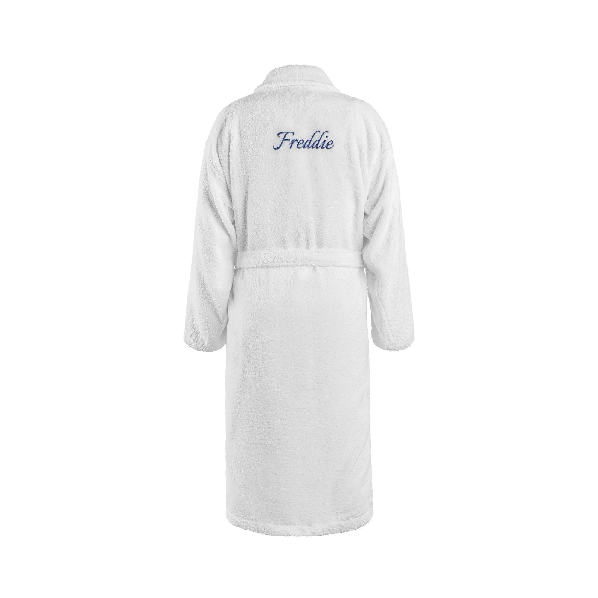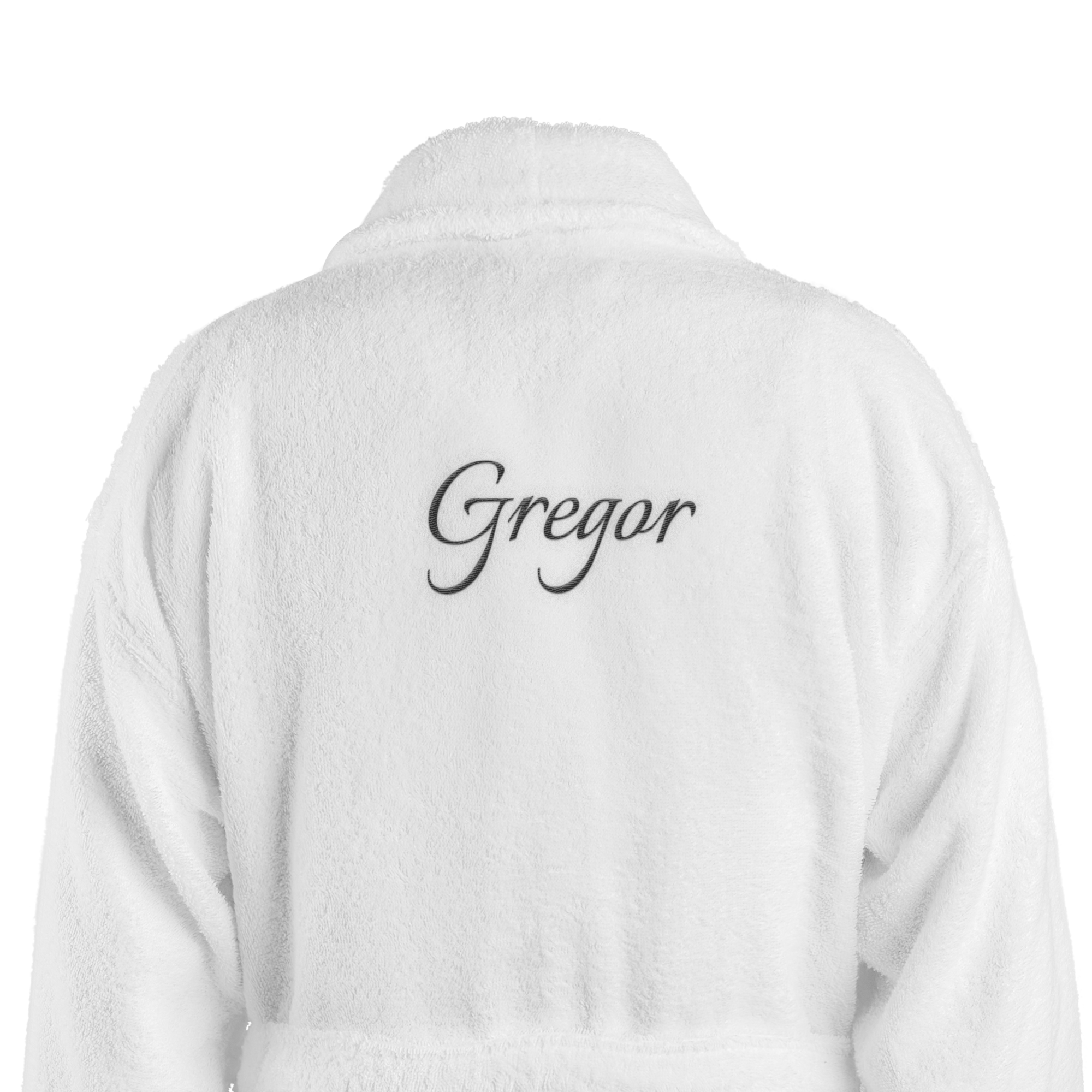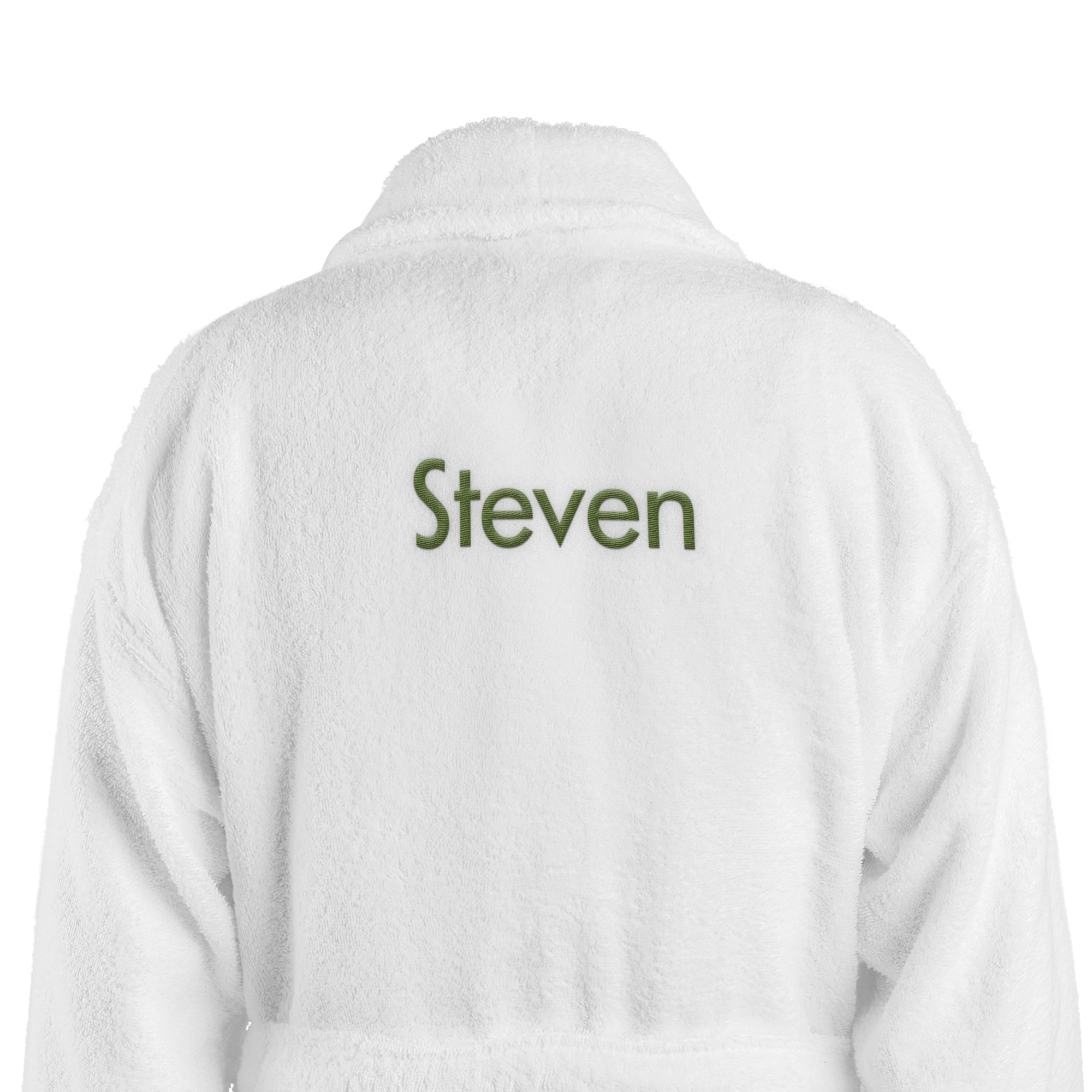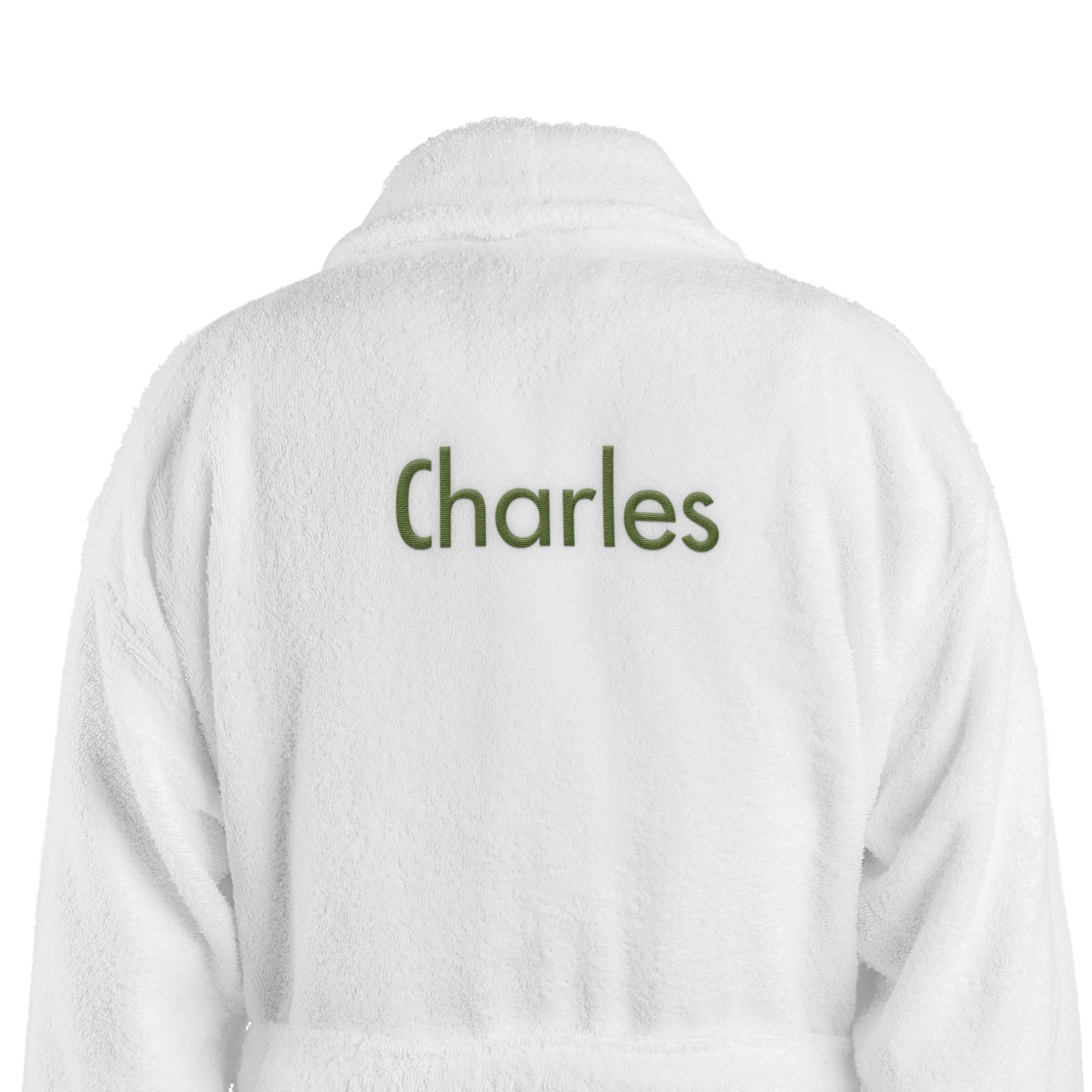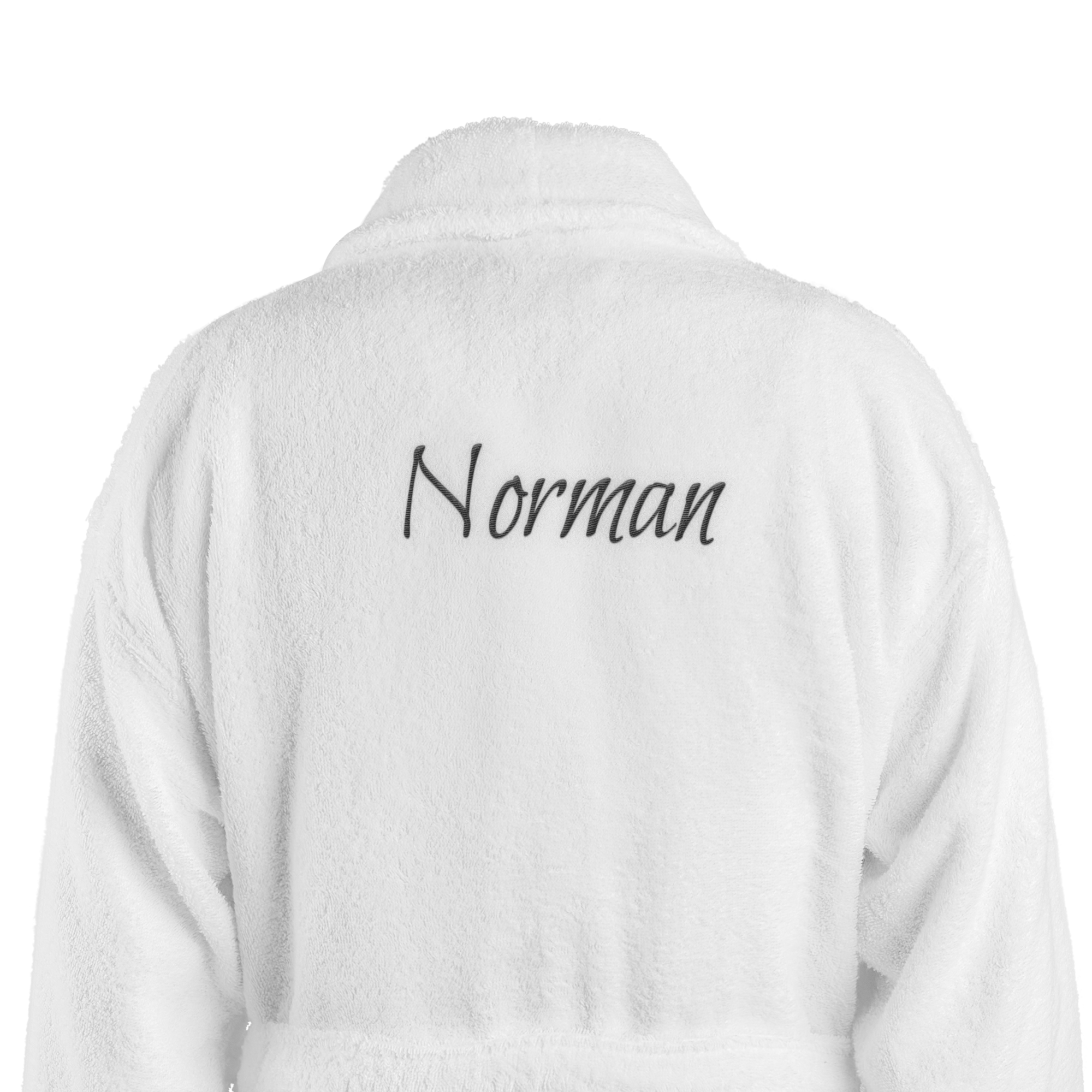¡Un albornoz original con su propio texto o nombre bordado! Una bata de baño clásica para hombre hecha de 100% algodón .