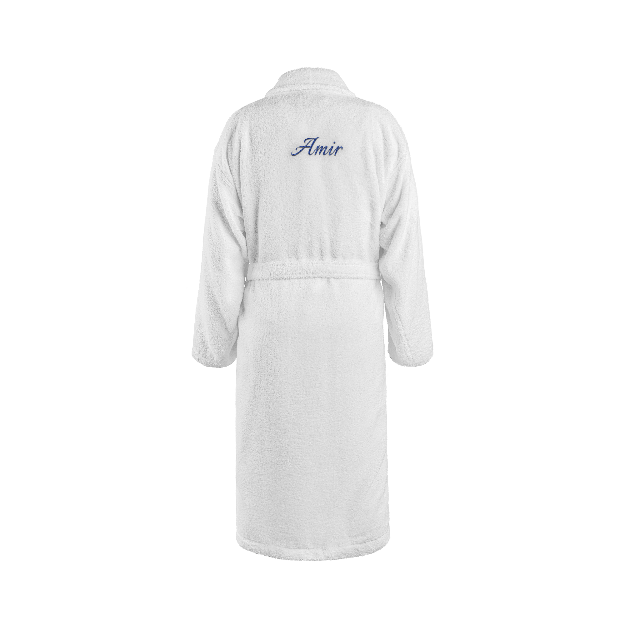 ¡Un albornoz original con su propio texto o nombre bordado! Una bata de baño clásica para hombre hecha de 100% algodón .