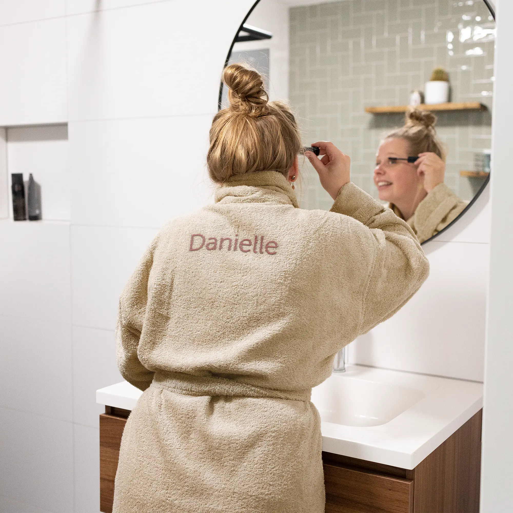 Albornoz personalizado para mujeres, bordado con el nombre o texto de tu elección. ¡Crea el tuyo ahora!