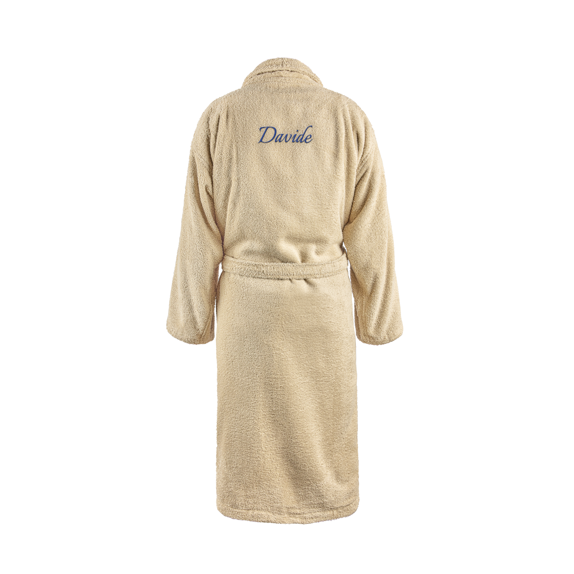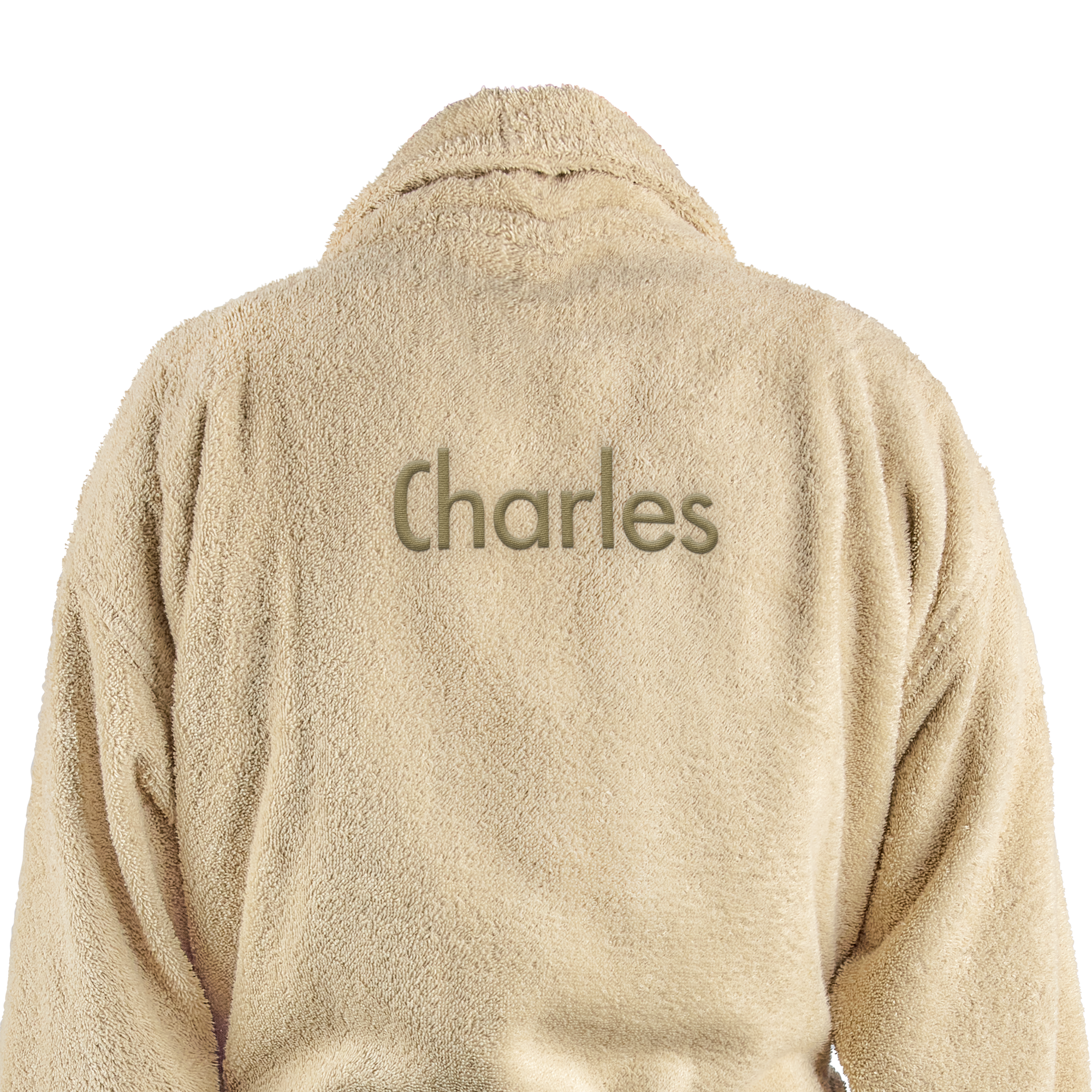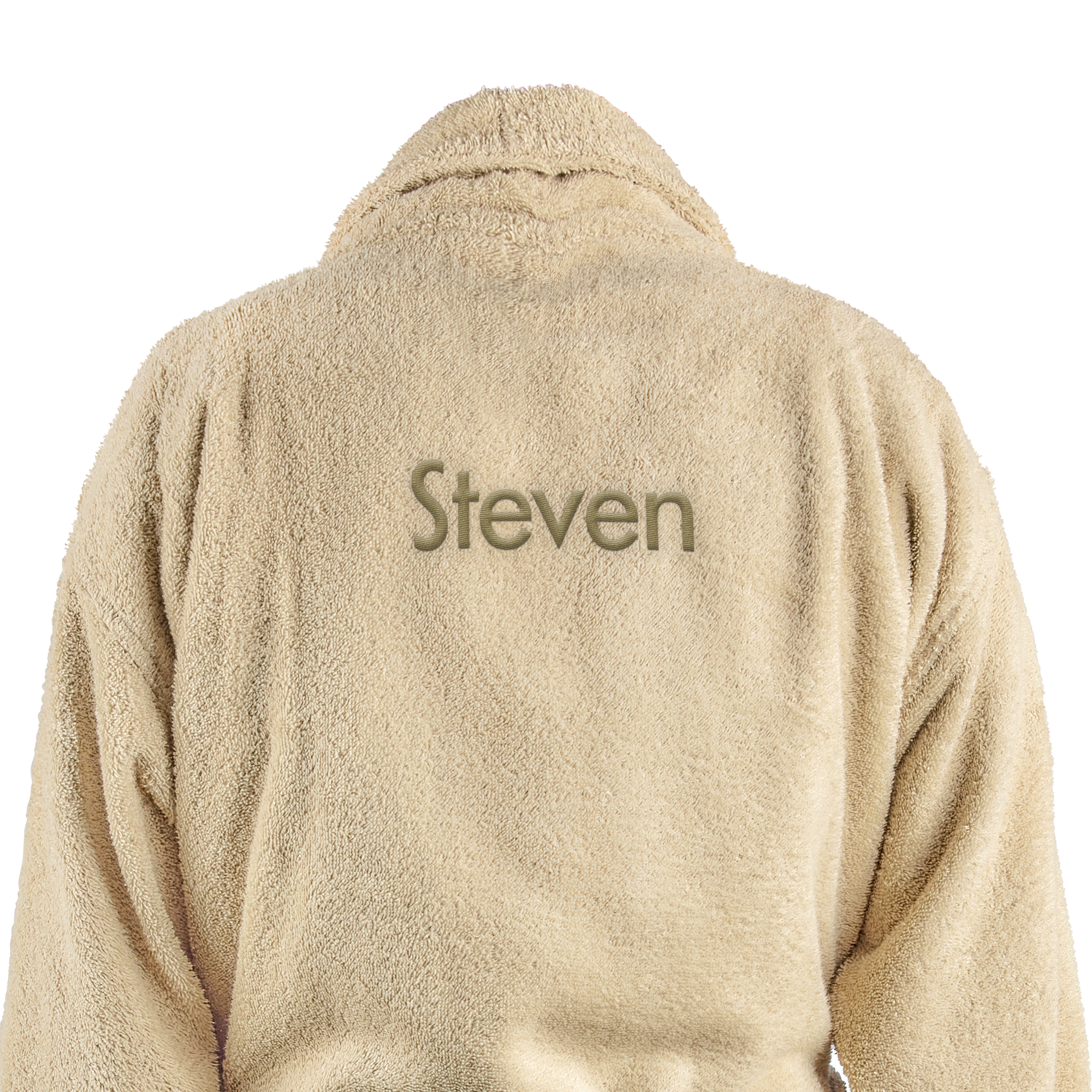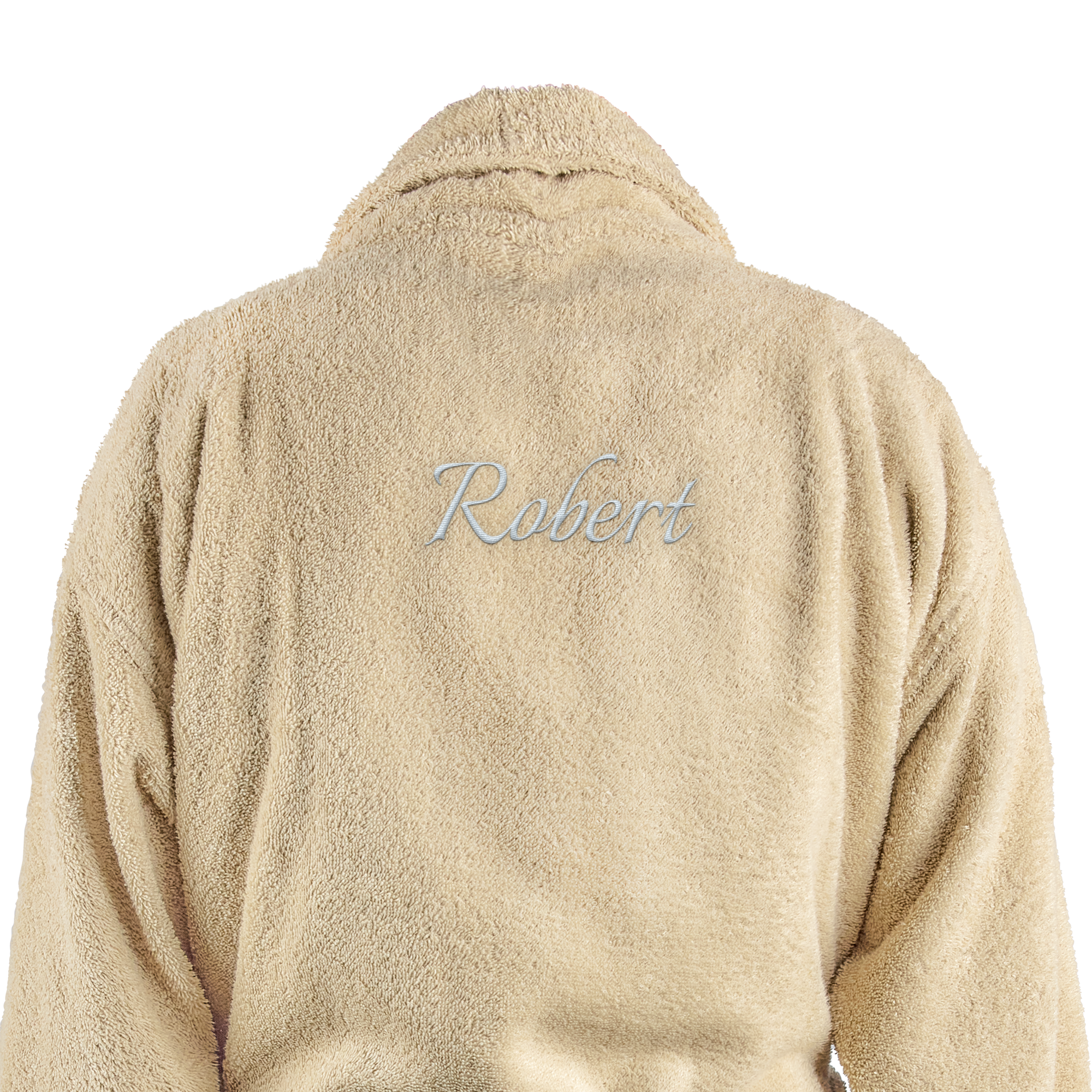¡Un albornoz original con su propio texto o nombre bordado! Una bata de baño clásica para hombre hecha de 100% algodón .